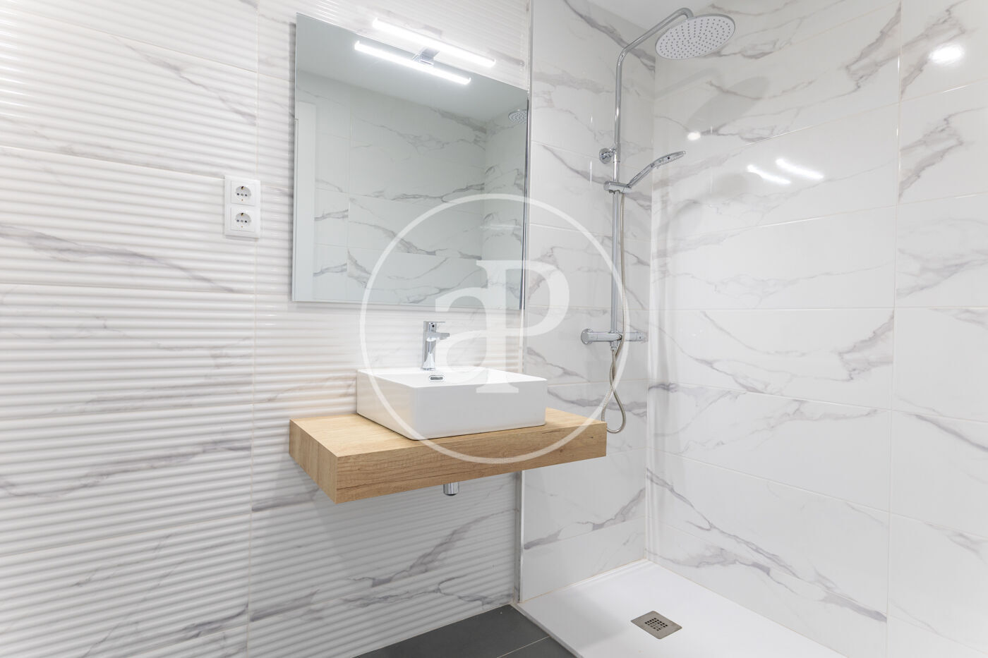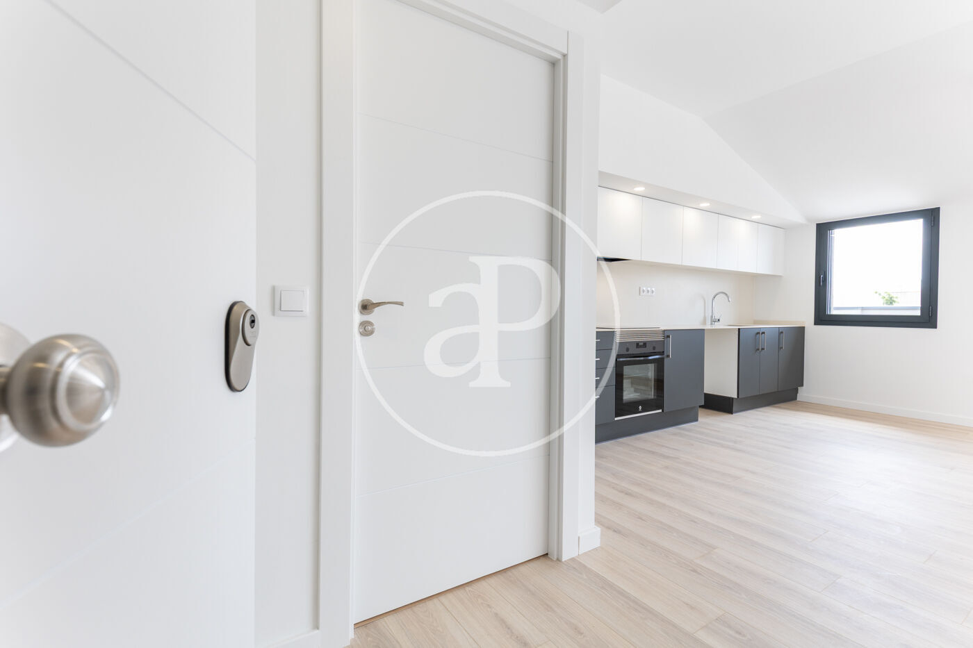 La cuina ve equipada amb placa d'inducció, forn i campana extractora oculta de la marca Balay. En aquest àtic trobem acabats d'alta qualitat tant en paviments i revestiments. Portes de pas lacades color blanc amb tancaments hermètics insonorizantes. Baños completament equipats amb mobiliari, i aixeteries termostàtiques.