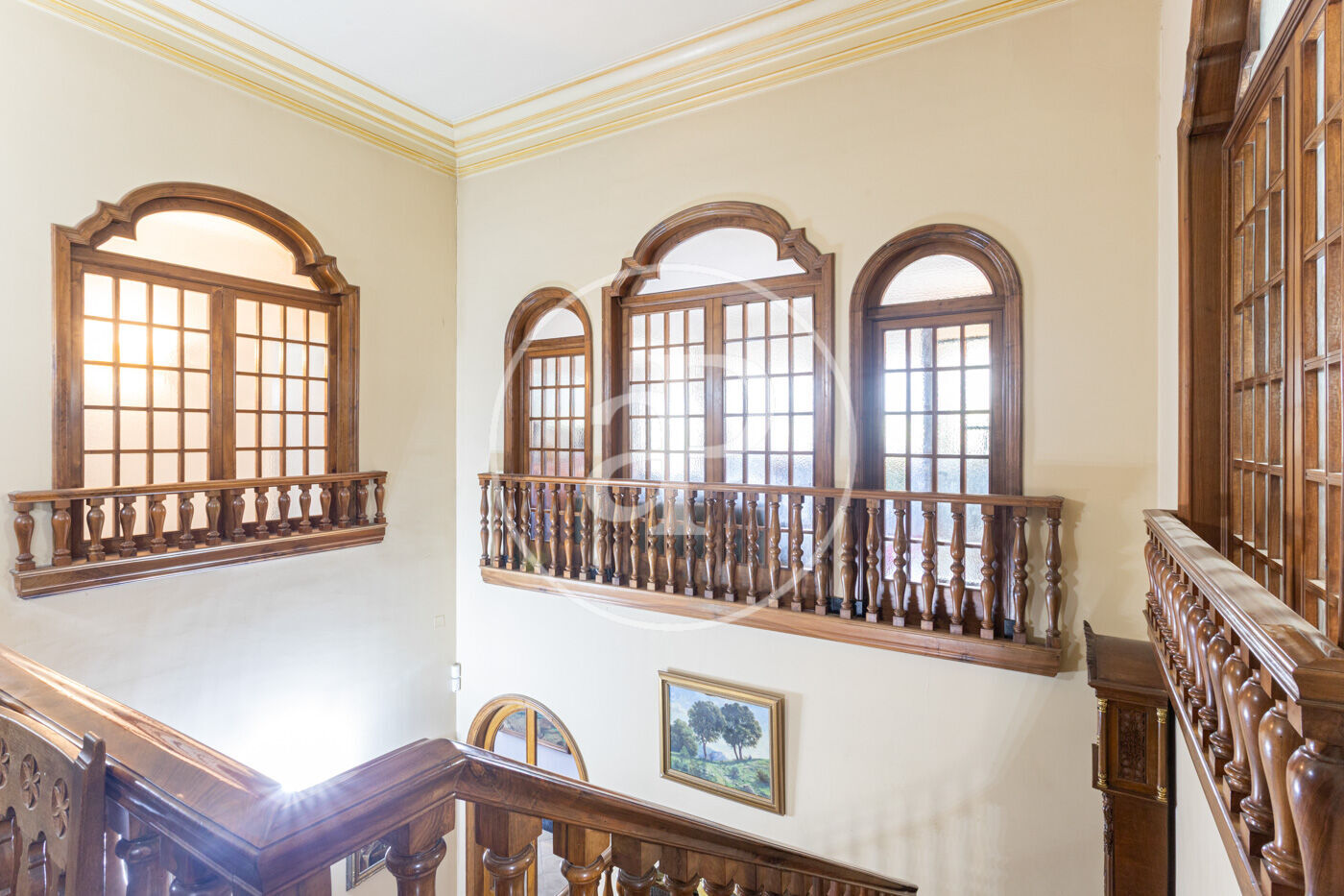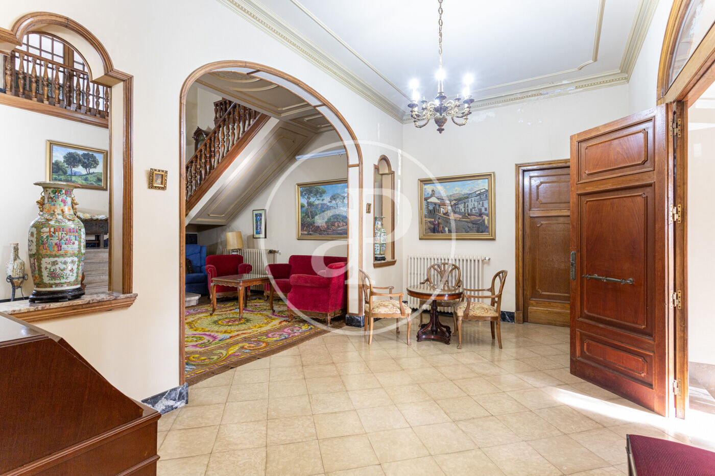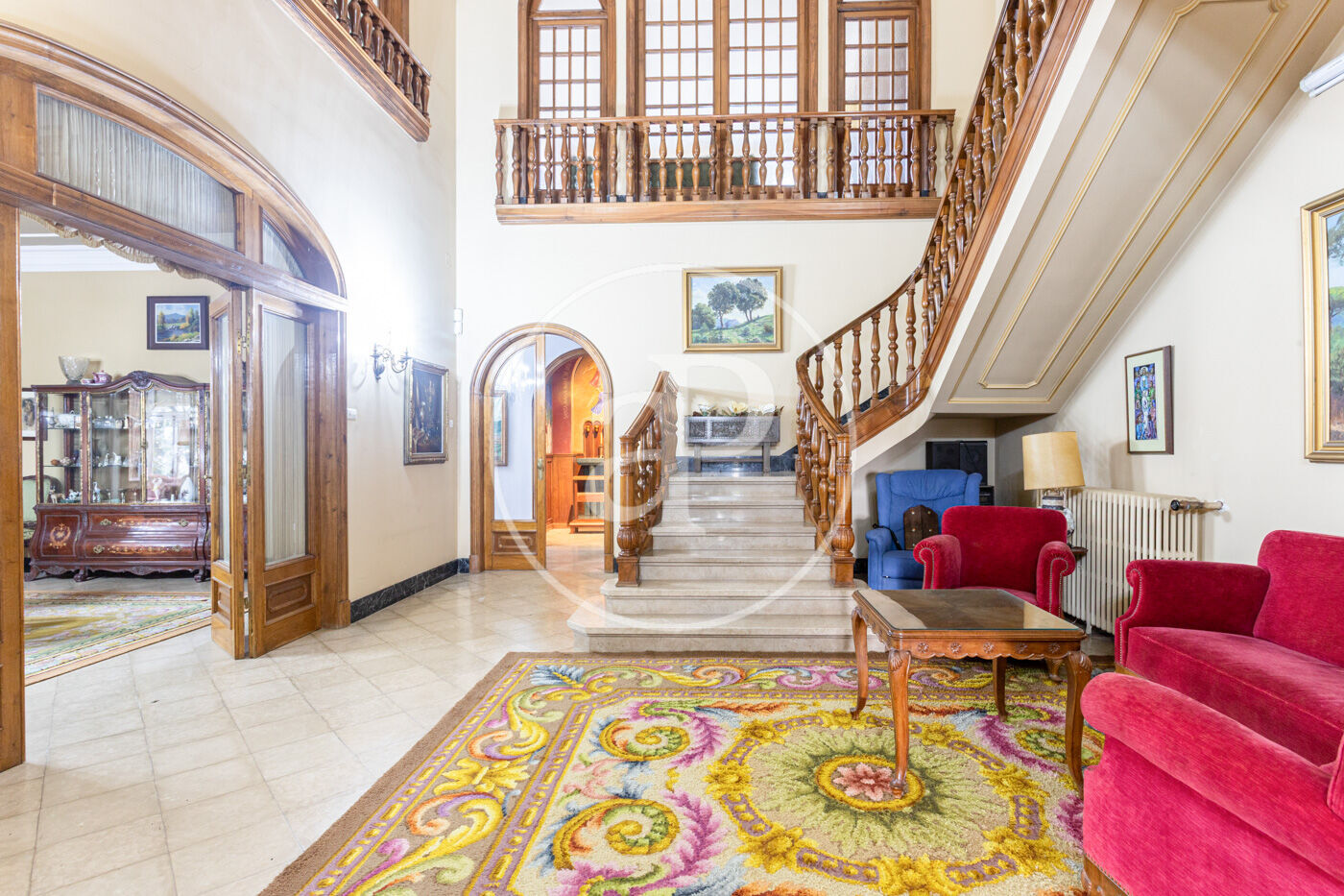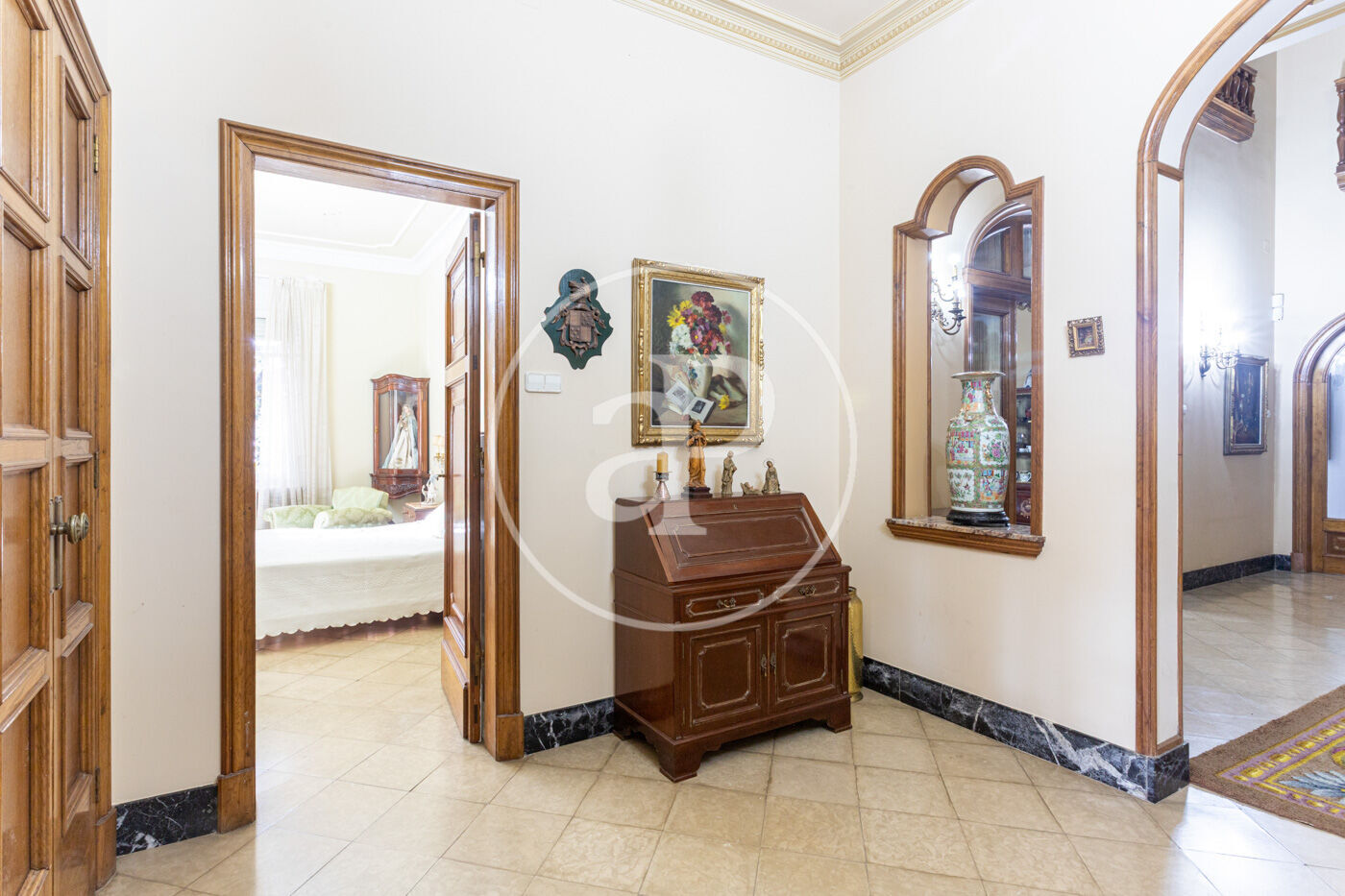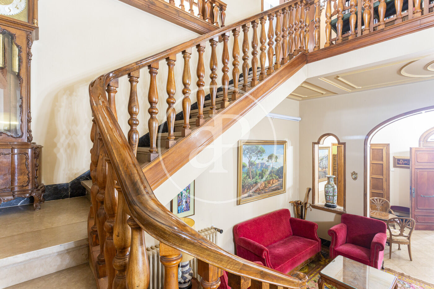 L’habitatge destaca per una harmoniosa i elegant disposició de les seves estances, organitzades al voltant d’una majestuosa sala central amb escala: