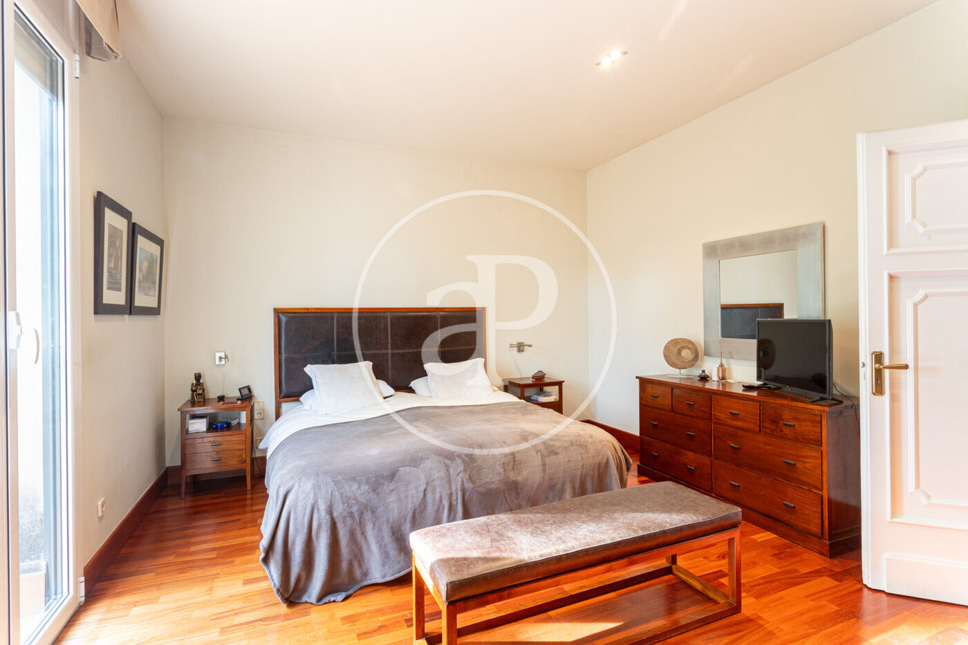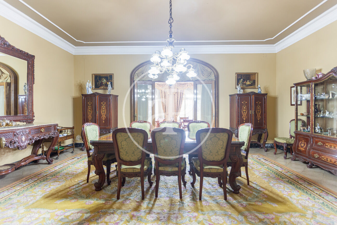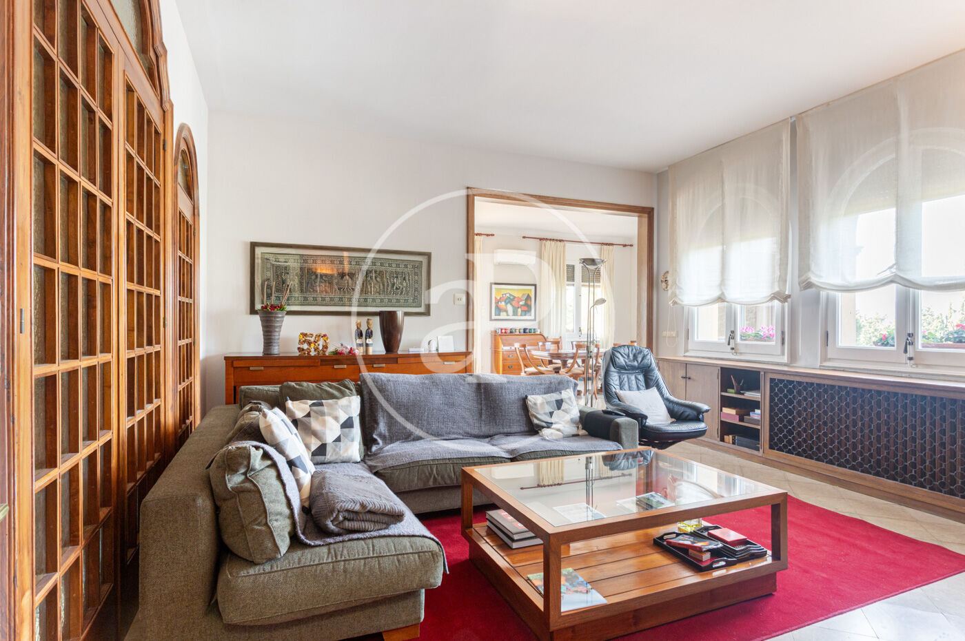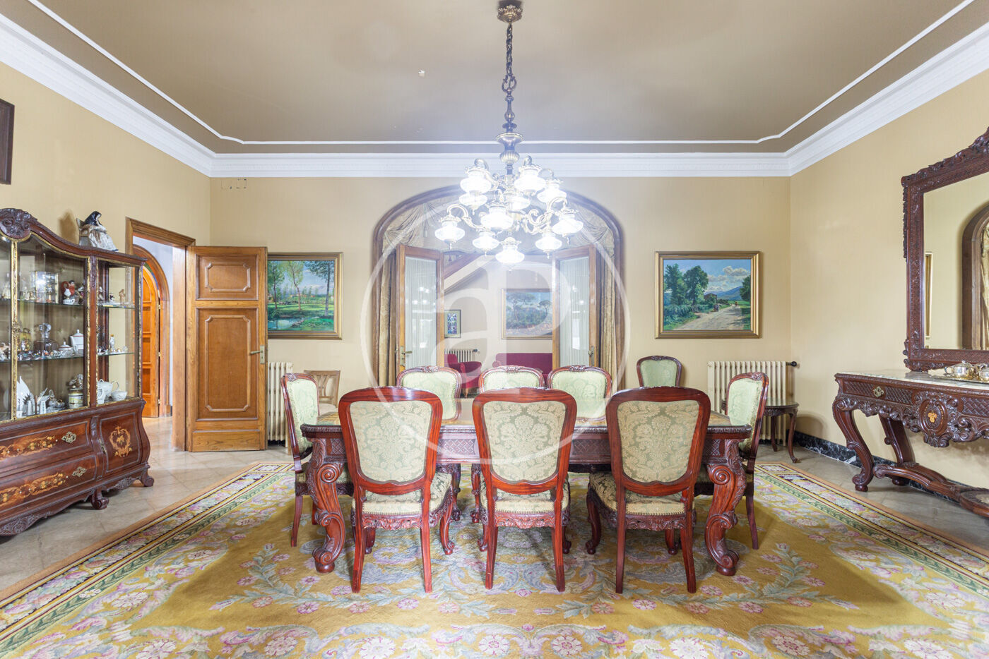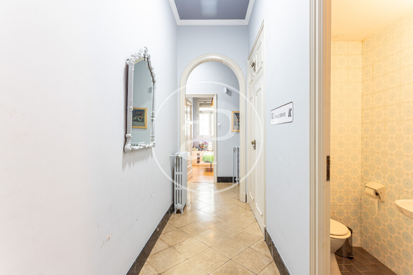 L’habitatge destaca per una harmoniosa i elegant disposició de les seves estances, organitzades al voltant d’una majestuosa sala central amb escala: