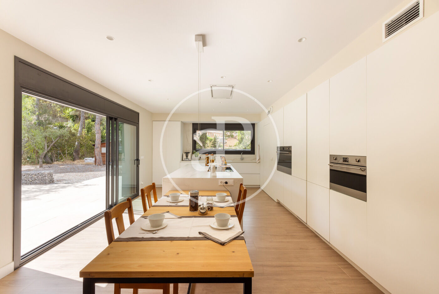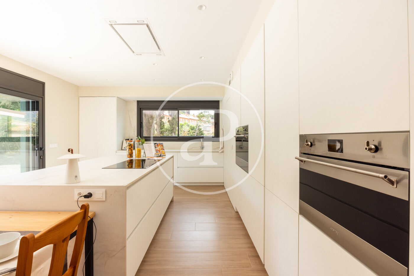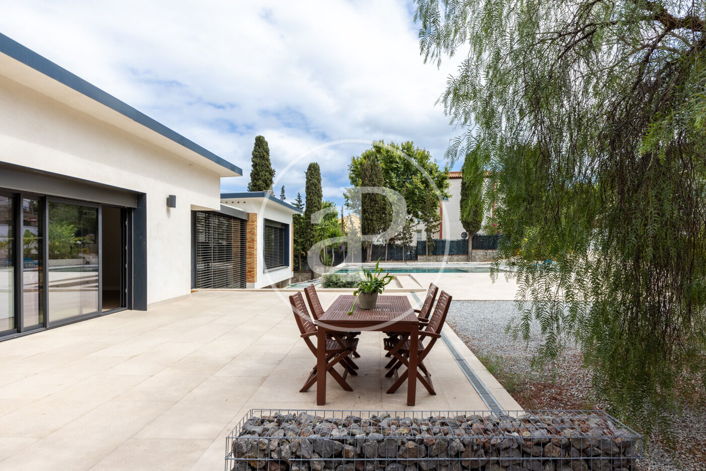 Imagina despertar cada matí a Tiana, envoltat d’una atmosfera de calma i disseny, a només 15 minuts de Barcelona, on l’elegància i l’eficiència conviuen en perfecta harmonia. Aquest habitatge, originalment construït a finals dels anys 60 i completament renovat el 2023 amb materials de primera qualitat, ocupa una àmplia parcel·la de 1.700 m² i compta amb 433 m² construïts, distribuïts en 4 dormitoris i 5 banys que redefineixen el confort modern.