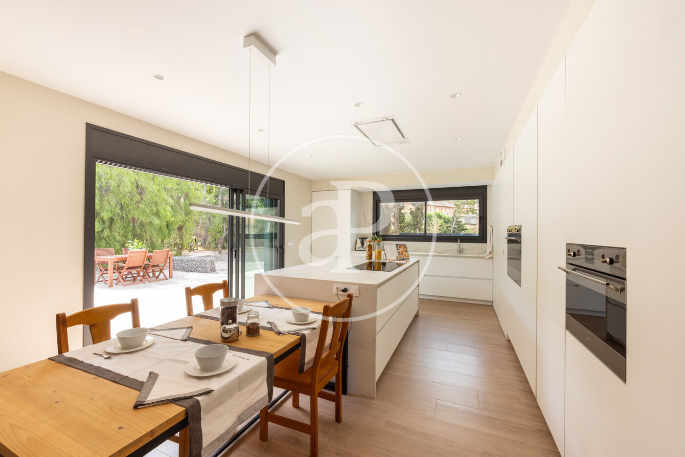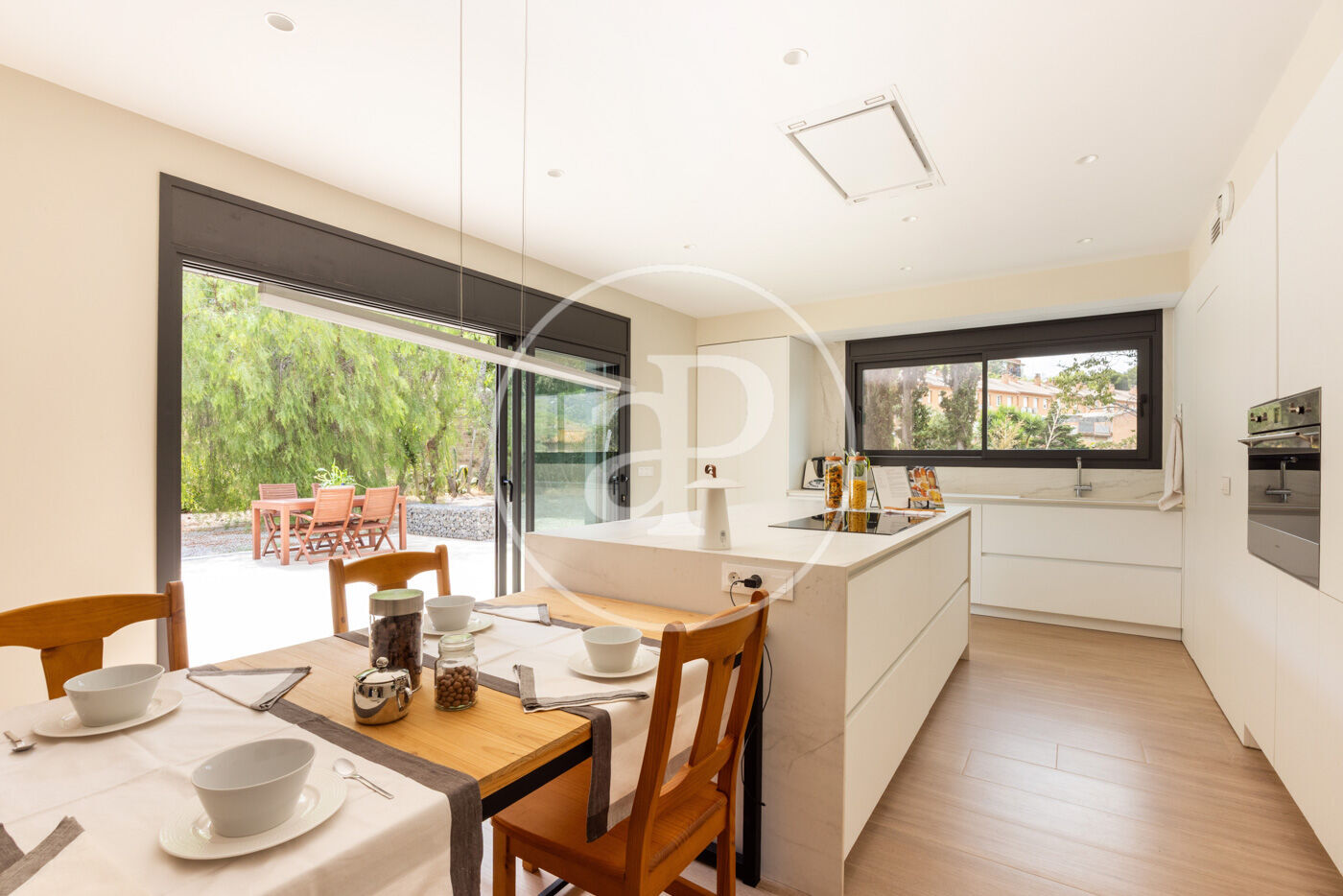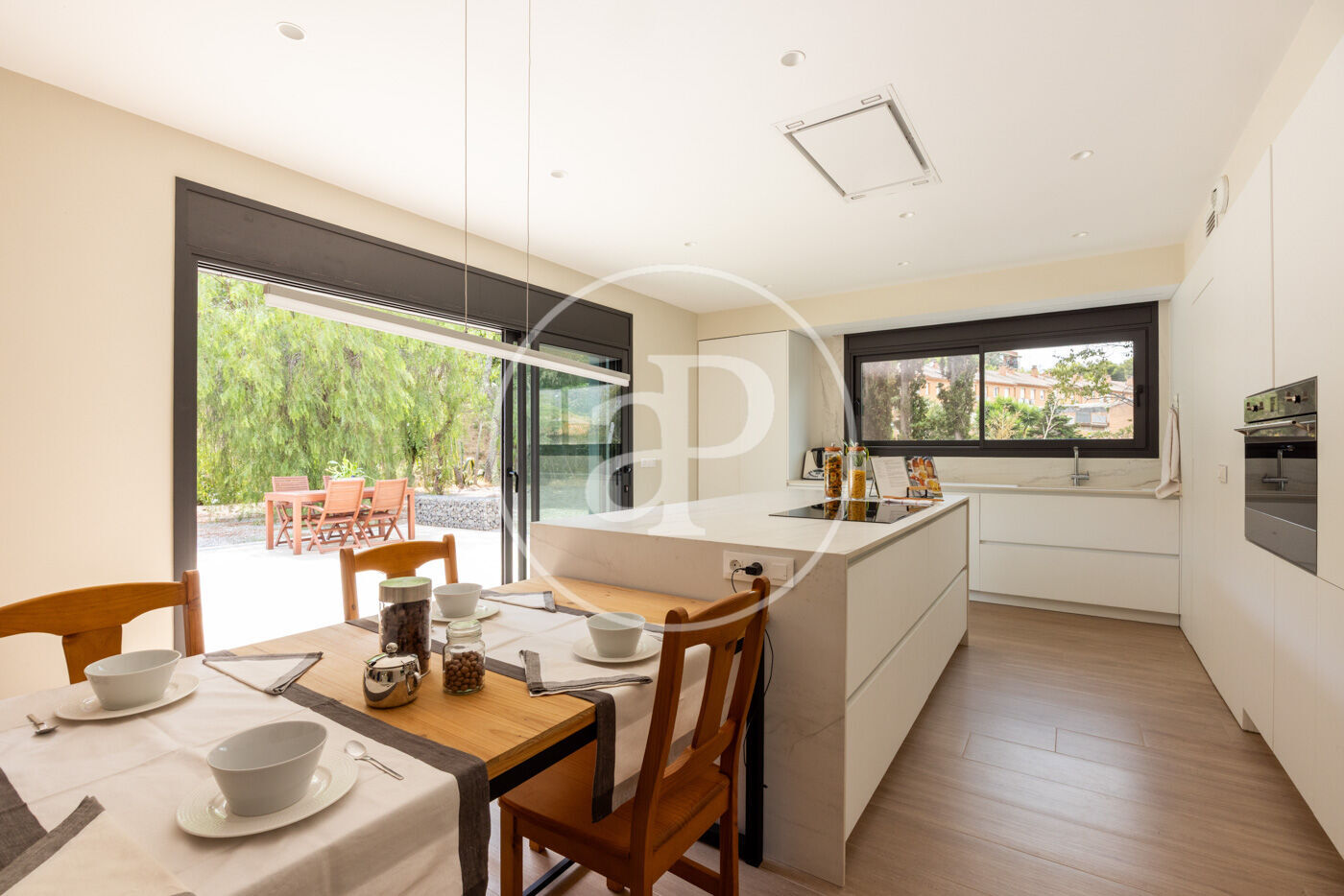 Imagina despertar cada matí a Tiana, envoltat d’una atmosfera de calma i disseny, a només 15 minuts de Barcelona, on l’elegància i l’eficiència conviuen en perfecta harmonia. Aquest habitatge, originalment construït a finals dels anys 60 i completament renovat el 2023 amb materials de primera qualitat, ocupa una àmplia parcel·la de 1.700 m² i compta amb 433 m² construïts, distribuïts en 4 dormitoris i 5 banys que redefineixen el confort modern.