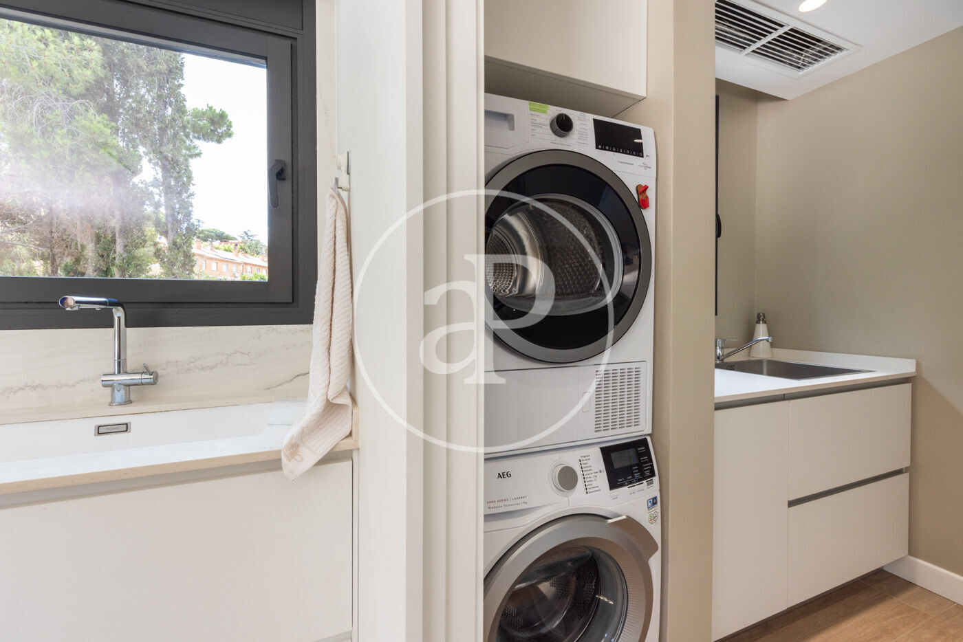Els banys, revestits amb porcellànics d’alta qualitat, estan equipats amb dutxes efecte pluja i terres antilliscants, creant espais que combinen estètica i seguretat. Les finestres amb vidre Sun Protect i tancaments Climalit ofereixen aïllament i control de la lluminositat, mentre que les persianes motoritzades reclinables aporten comoditat tecnològica. La seguretat està reforçada amb alarma perimetral, videoporter i porta d’accés motoritzada.