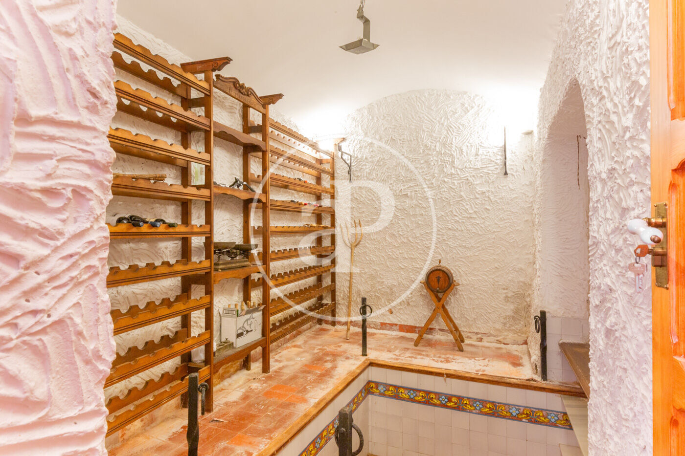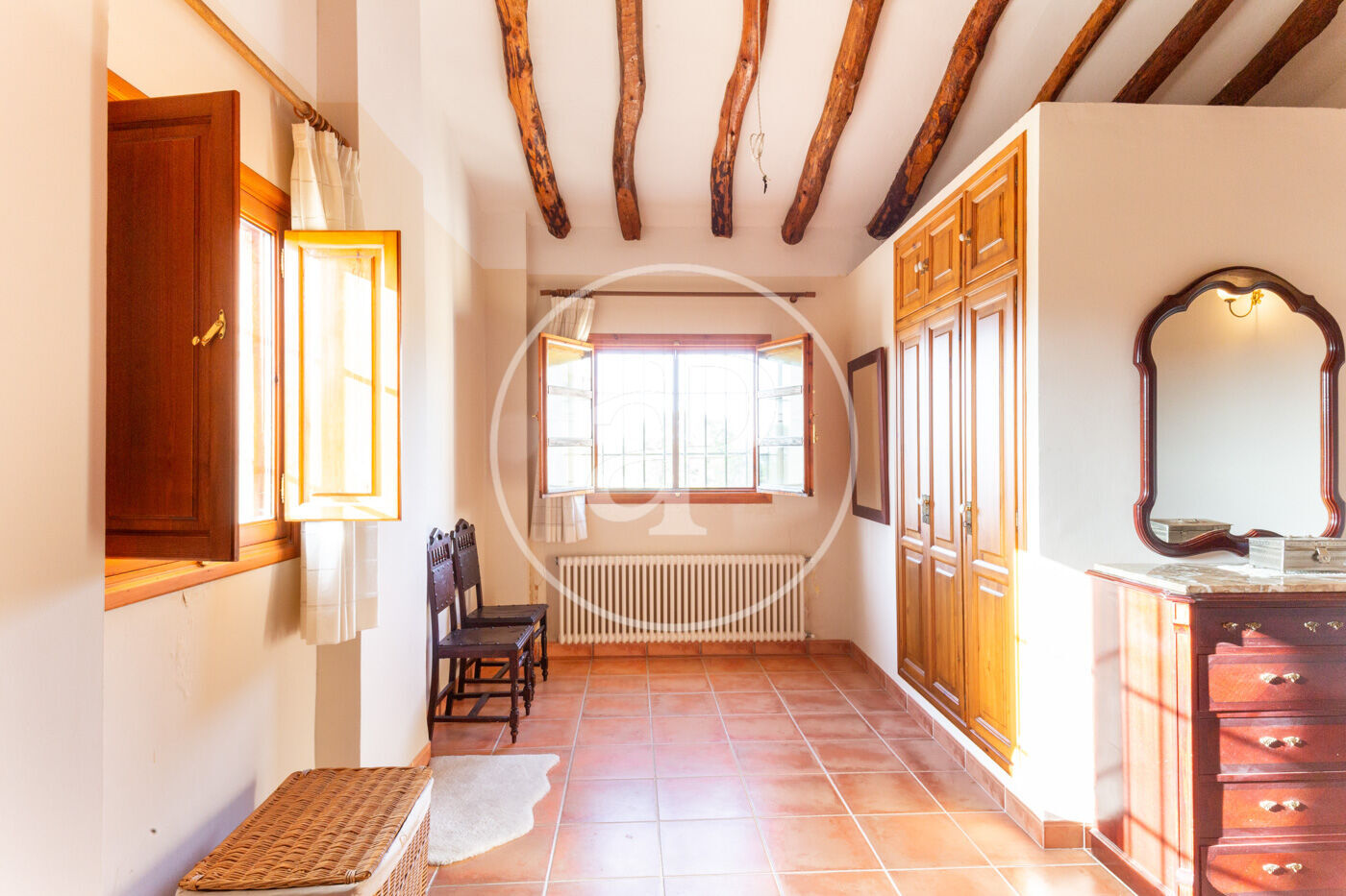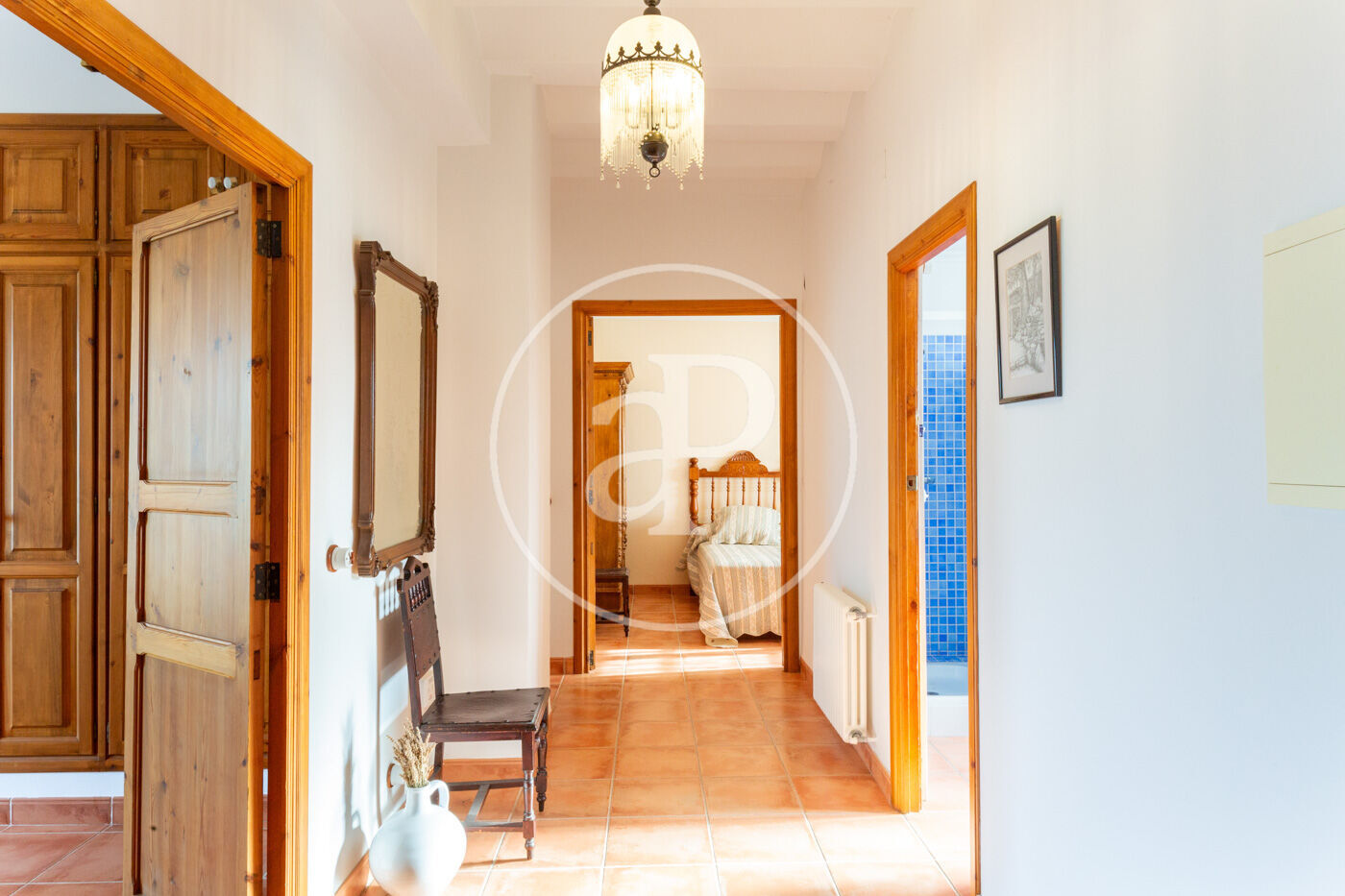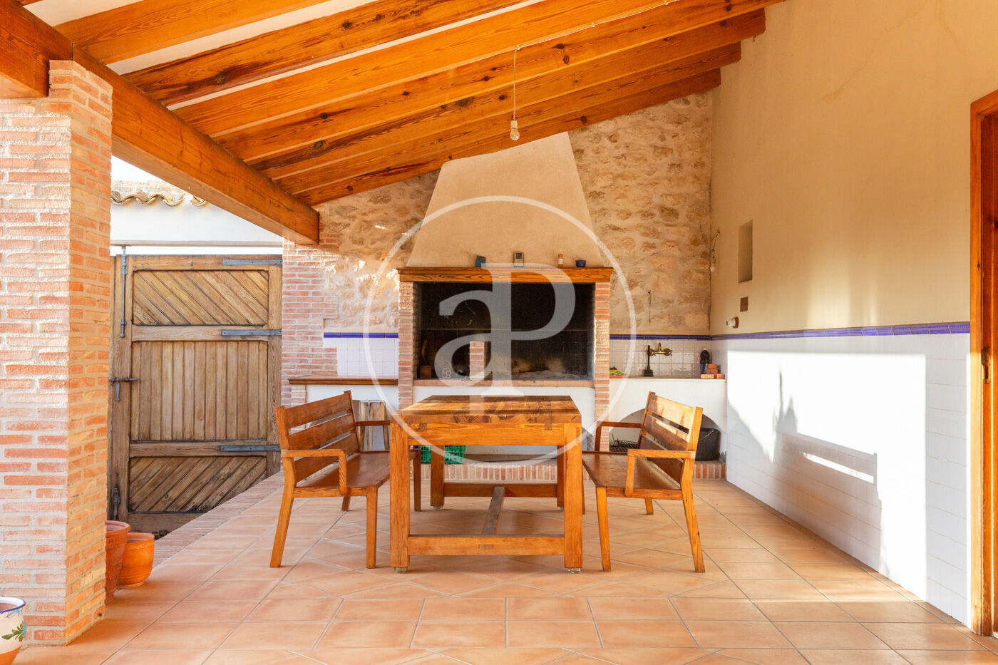 El patio interior constituye uno de los rincones más especiales de la propiedad, con una atmósfera mágica y serena gracias a su jardín mediterráneo con árboles frutales y una cuidada selección de plantas. Un amplio porche cubierto con una larga mesa de madera invita a disfrutar de reuniones inolvidables con familiares y amigos. Esta zona exterior cuenta además con paellero y barbacoa, perfectamente integrados para ofrecer servicio a este encantador espacio social. Como elemento singular, la finca dispone de una alberca tradicional construida con muros de piedra de mampostería y equipada con sistema de depuración, ideal para refrescarse durante los días calurosos de verano.