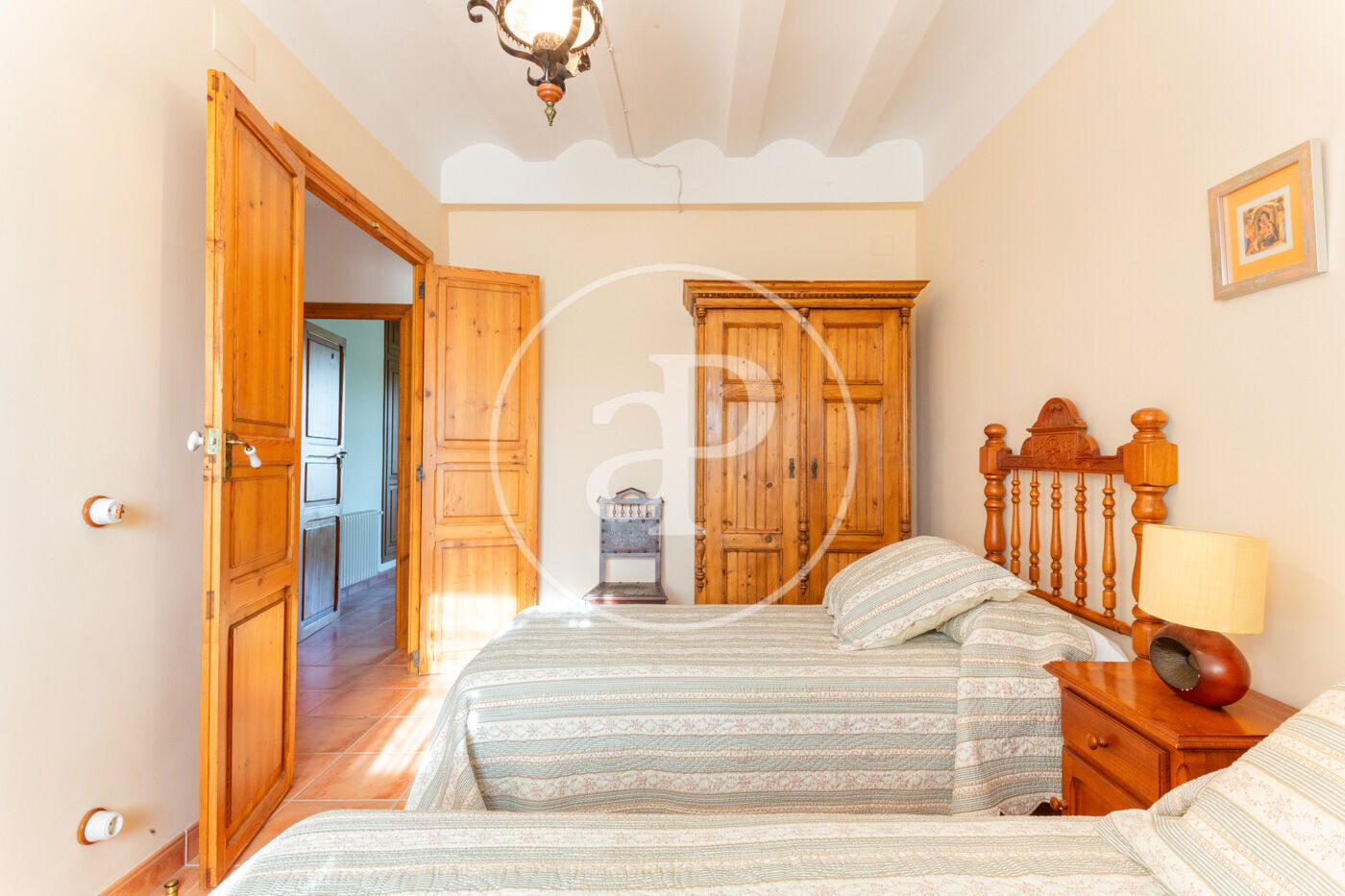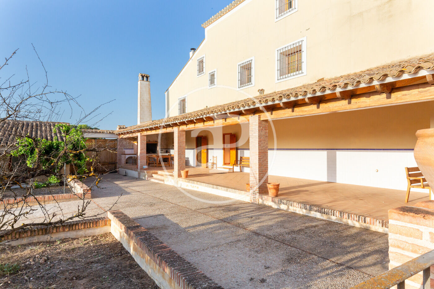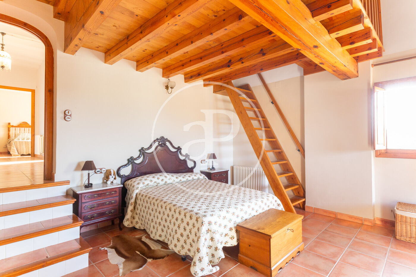 El patio interior constituye uno de los rincones más especiales de la propiedad, con una atmósfera mágica y serena gracias a su jardín mediterráneo con árboles frutales y una cuidada selección de plantas. Un amplio porche cubierto con una larga mesa de madera invita a disfrutar de reuniones inolvidables con familiares y amigos. Esta zona exterior cuenta además con paellero y barbacoa, perfectamente integrados para ofrecer servicio a este encantador espacio social. Como elemento singular, la finca dispone de una alberca tradicional construida con muros de piedra de mampostería y equipada con sistema de depuración, ideal para refrescarse durante los días calurosos de verano.
