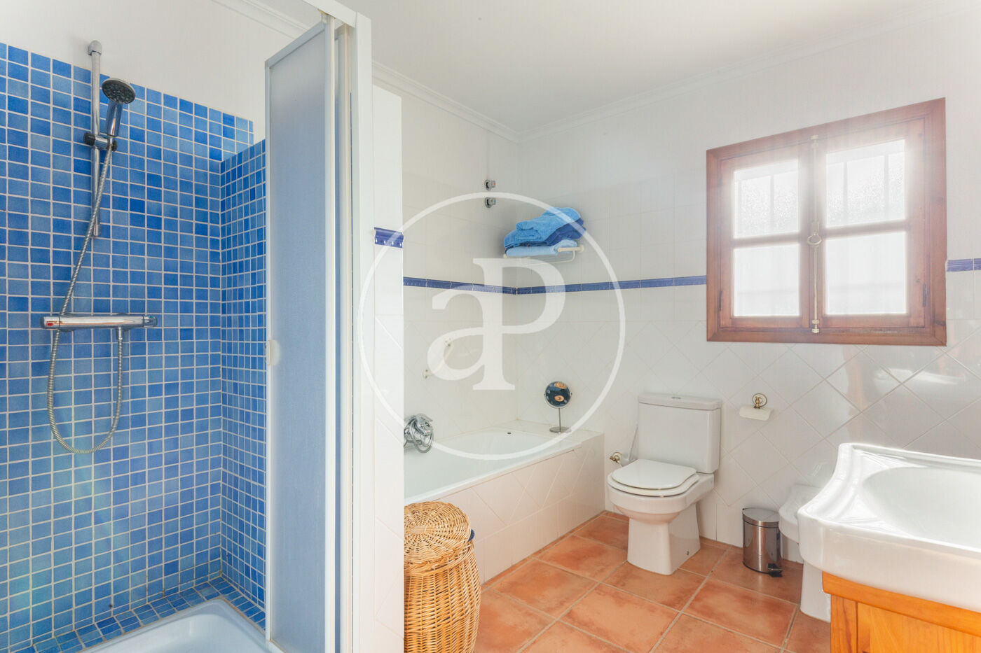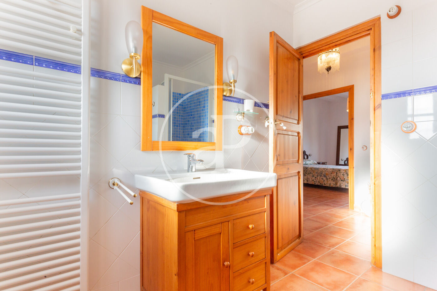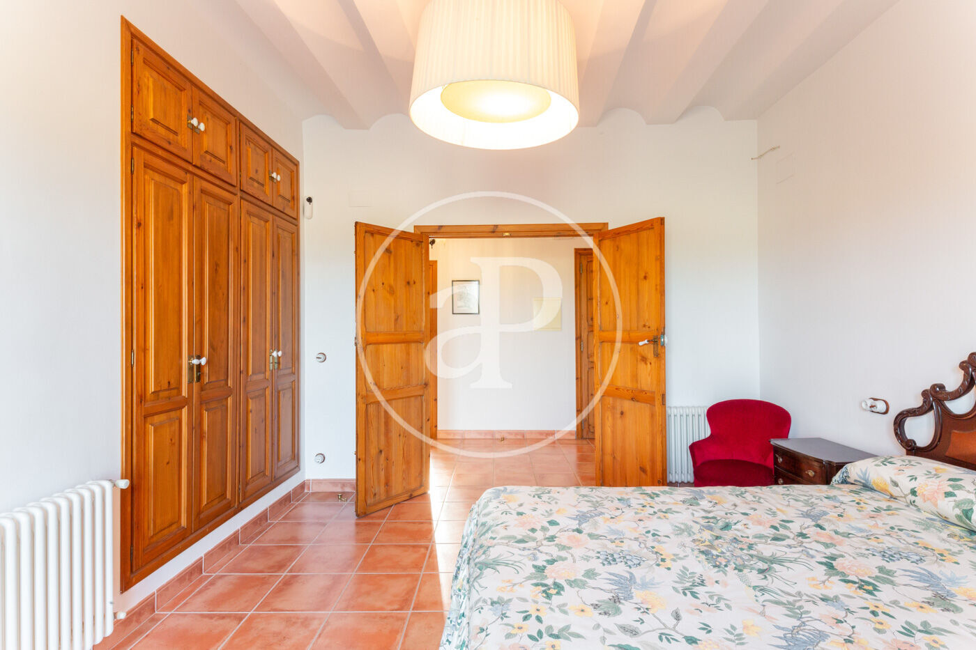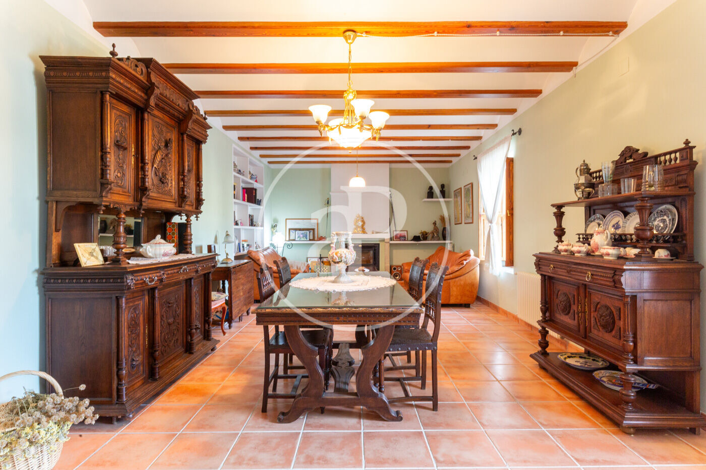 El patio interior constituye uno de los rincones más especiales de la propiedad, con una atmósfera mágica y serena gracias a su jardín mediterráneo con árboles frutales y una cuidada selección de plantas. Un amplio porche cubierto con una larga mesa de madera invita a disfrutar de reuniones inolvidables con familiares y amigos. Esta zona exterior cuenta además con paellero y barbacoa, perfectamente integrados para ofrecer servicio a este encantador espacio social. Como elemento singular, la finca dispone de una alberca tradicional construida con muros de piedra de mampostería y equipada con sistema de depuración, ideal para refrescarse durante los días calurosos de verano.