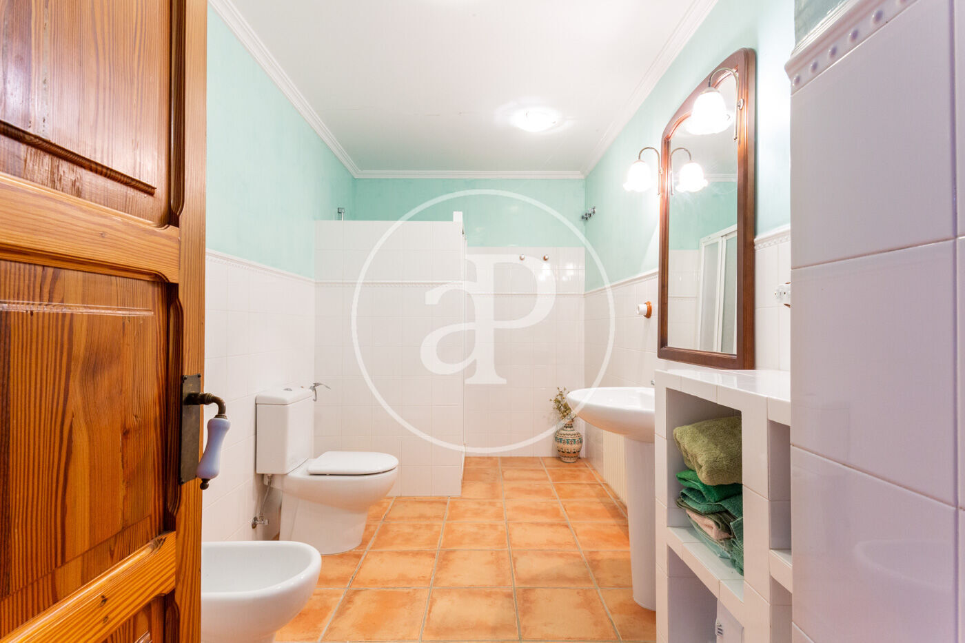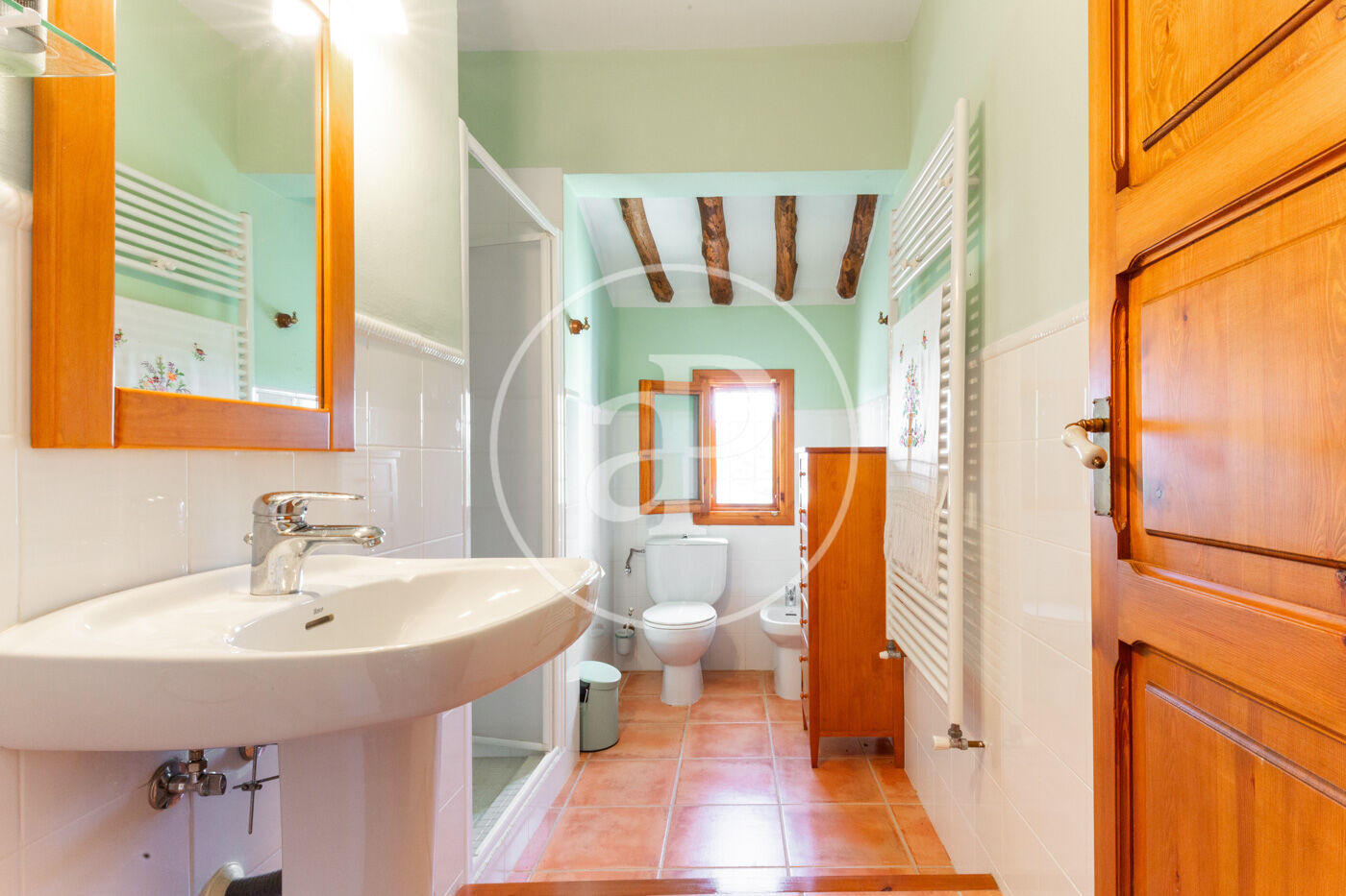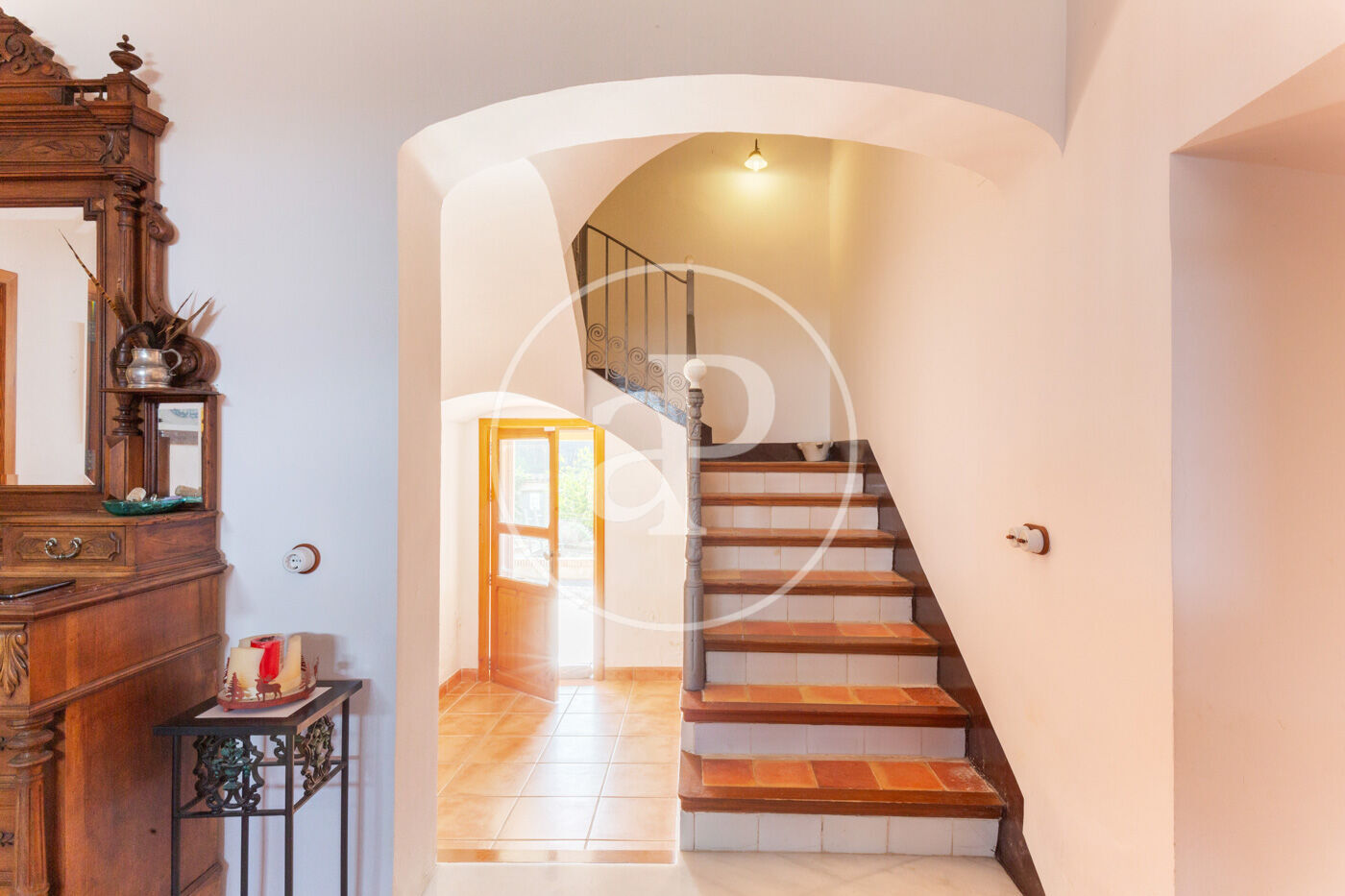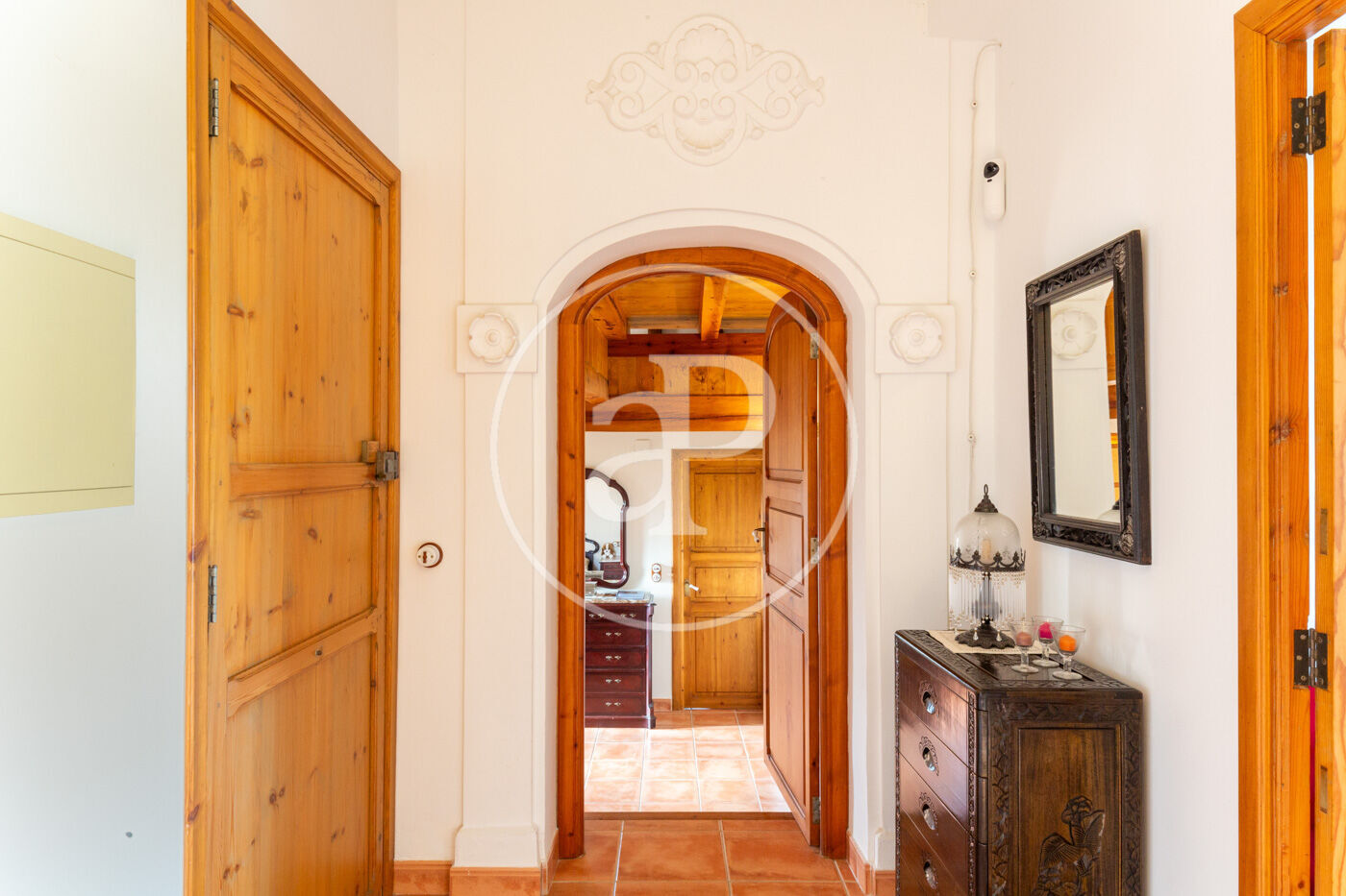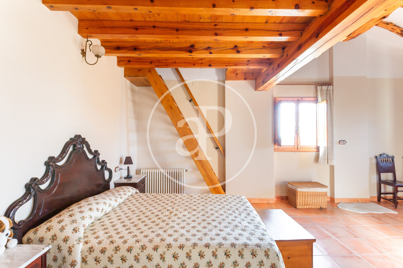 El acceso a la casa se realiza a través de una majestuosa puerta doble restaurada que conduce a un amplio y elegante recibidor. En la planta baja encontramos un gran salón, una acogedora zona de estar, un baño completo, una cocina espaciosa y funcional decorada con esmero, una bodega original con gran valor histórico y dos accesos al extenso patio exterior, que conecta la vivienda con la naturaleza que la rodea. Al subir a la primera planta, se accede a la zona de descanso, compuesta por cuatro dormitorios dobles, todos exteriores y con grandes ventanales que permiten la entrada de luz natural, así como tres baños completos. El último nivel, la planta ático, es un espacio totalmente diáfano y sorprendentemente luminoso, donde destacan las vigas de troncos de madera maciza, perfectamente tratadas y conservadas, que otorgan carácter y autenticidad al espacio.