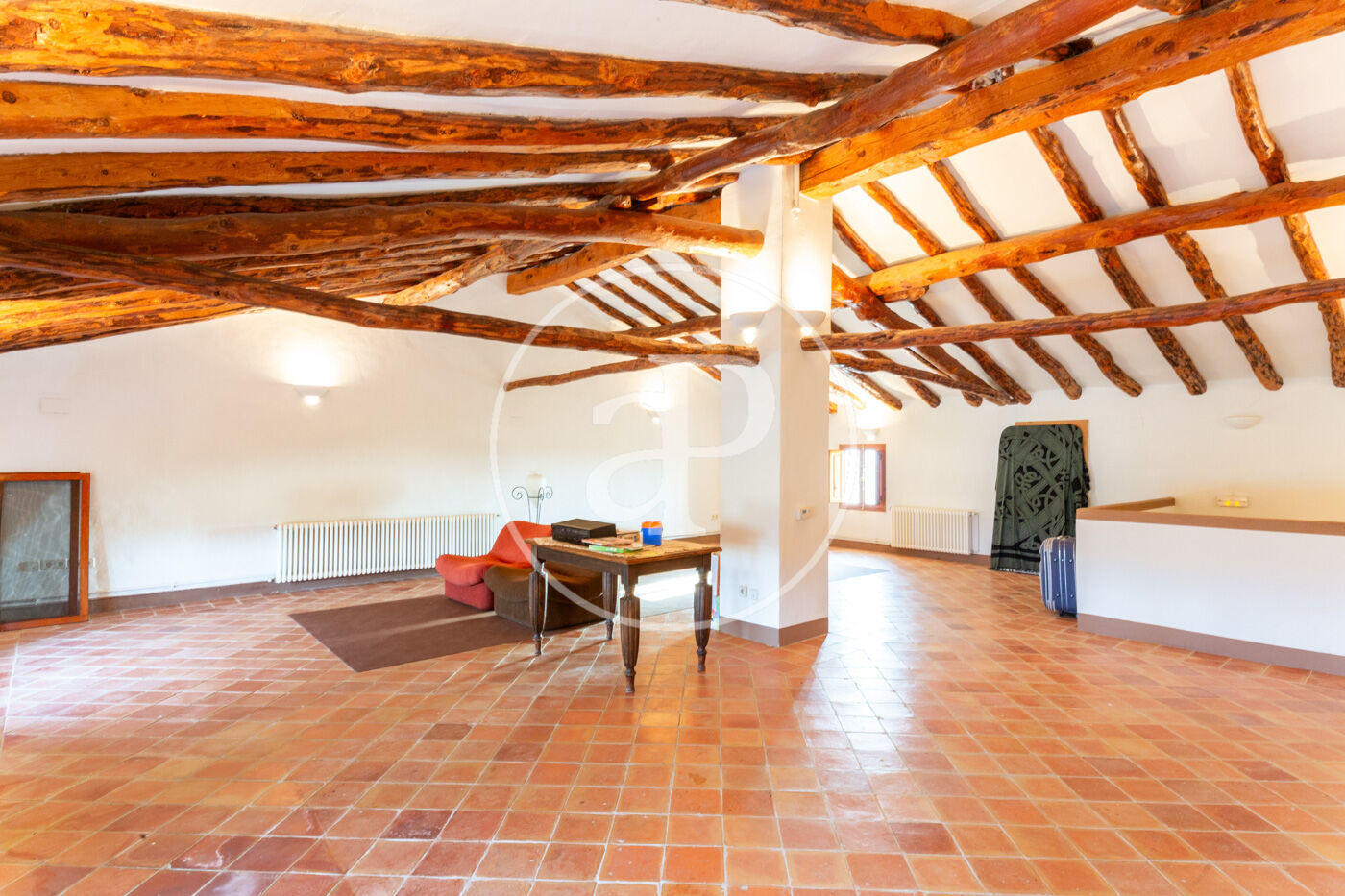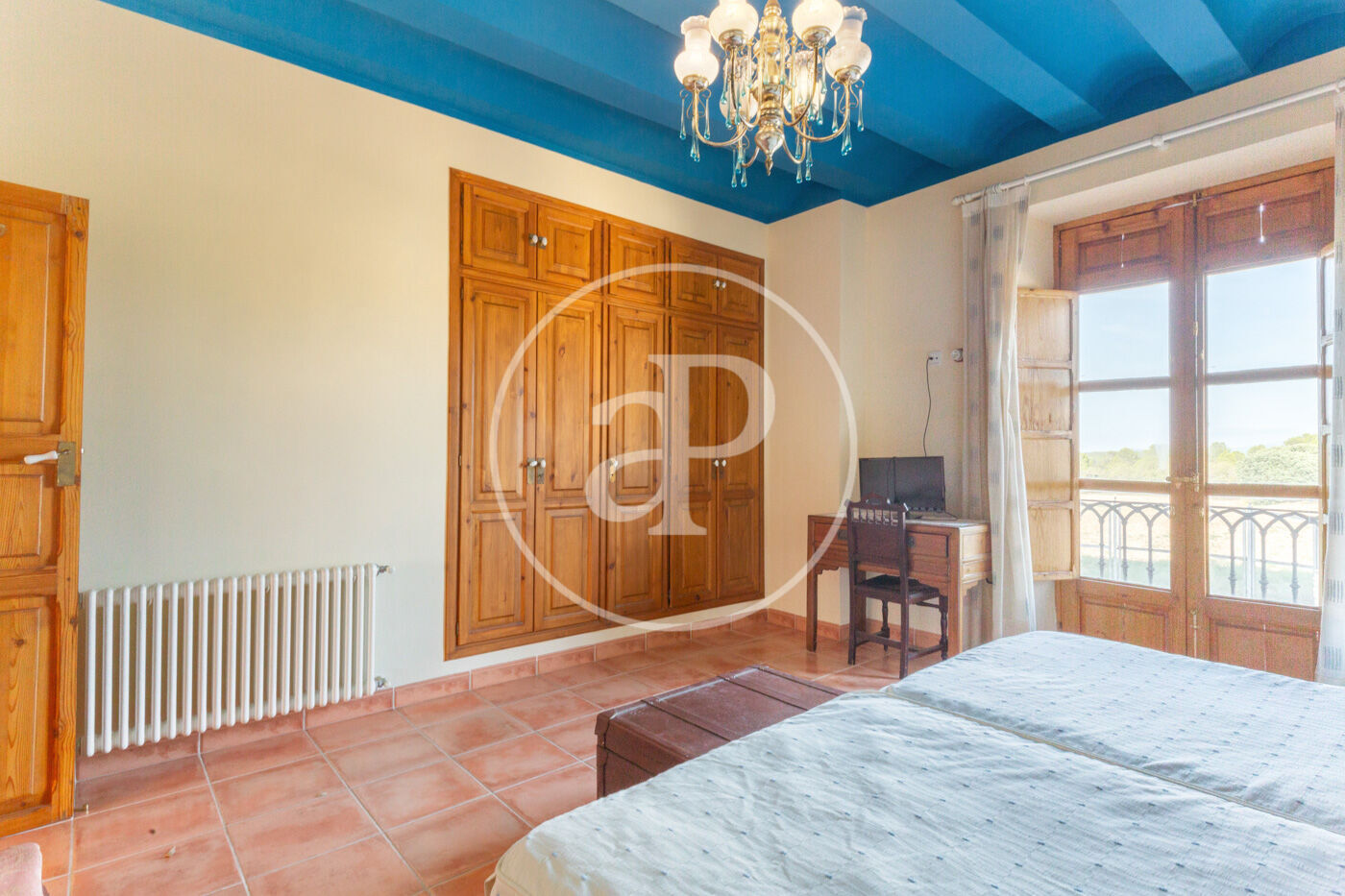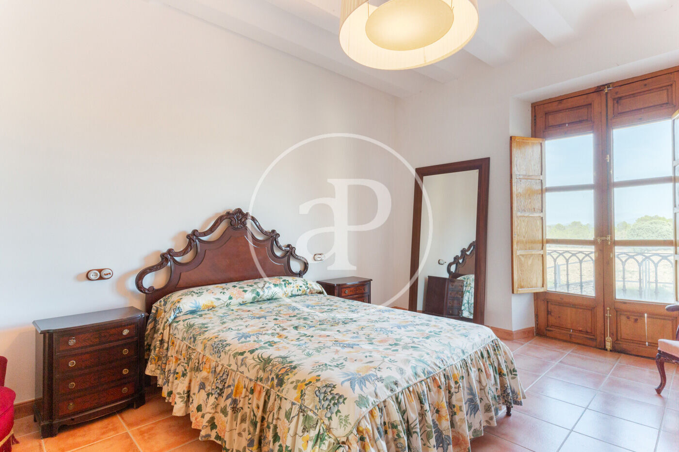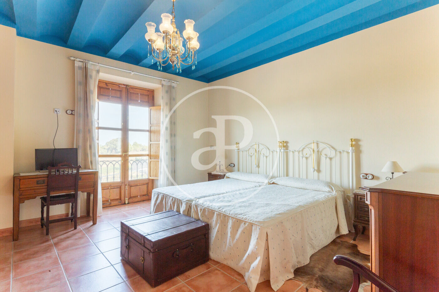 La villa, cuya construcción original data del siglo XVIII, fue cuidadosamente restaurada en el año 2002, conservando su carácter histórico y arquitectónico con una atención meticulosa al detalle. La vivienda principal cuenta con una superficie de 561 m² distribuidos en tres plantas, asentada sobre un terreno urbanizado de 4.500 m². La finca en su totalidad alcanza las 380 hectáreas, incluyendo amplias zonas de cultivo que enriquecen su valor.