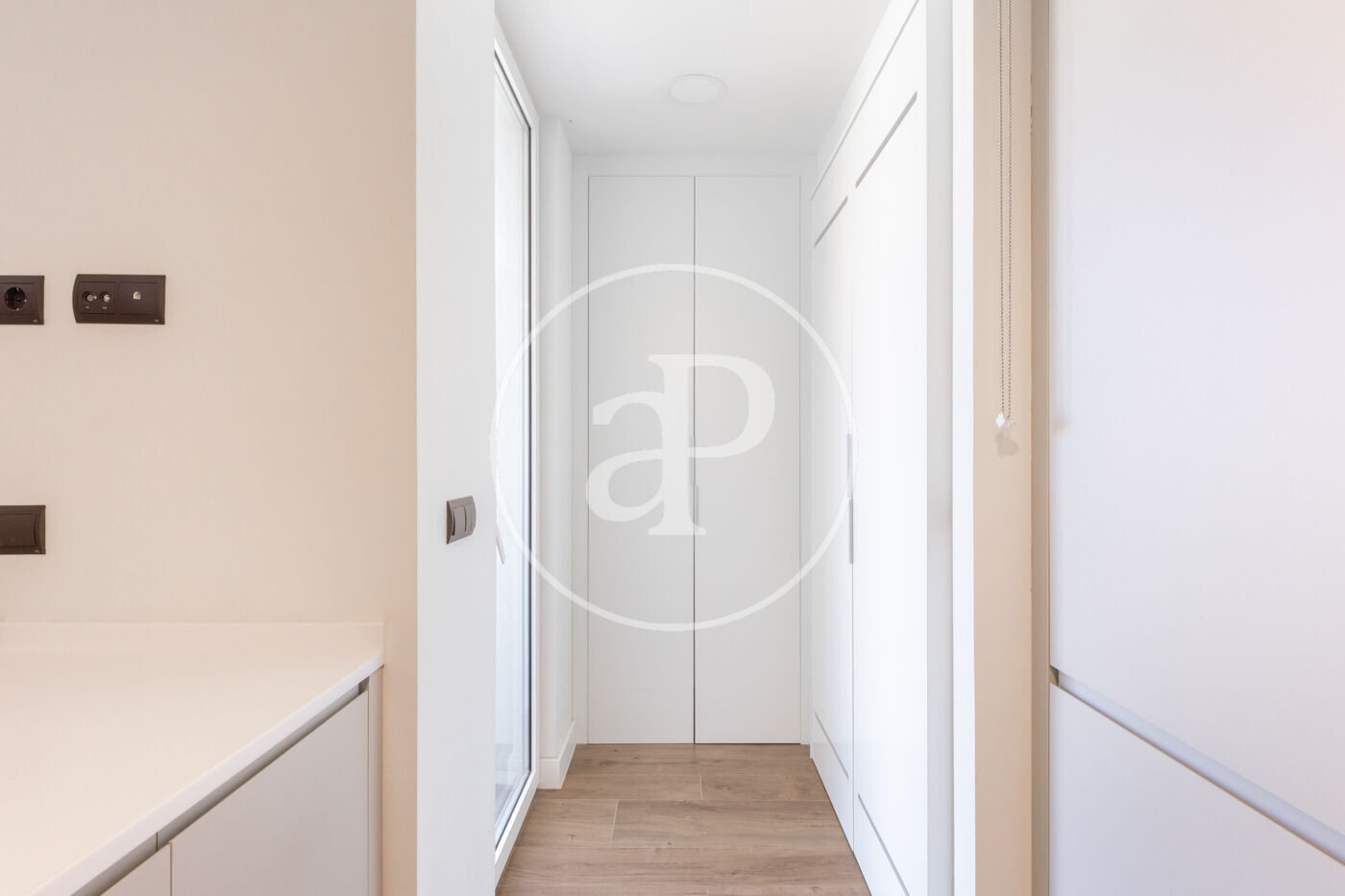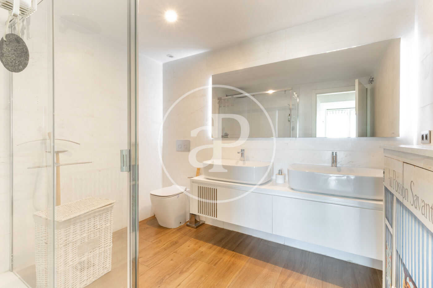 És un dels pisos més amplis de l’edifici, amb acabats d’alta qualitat, moblament nou i un disseny cuidat en tons neutres que transmeten harmonia i confort.