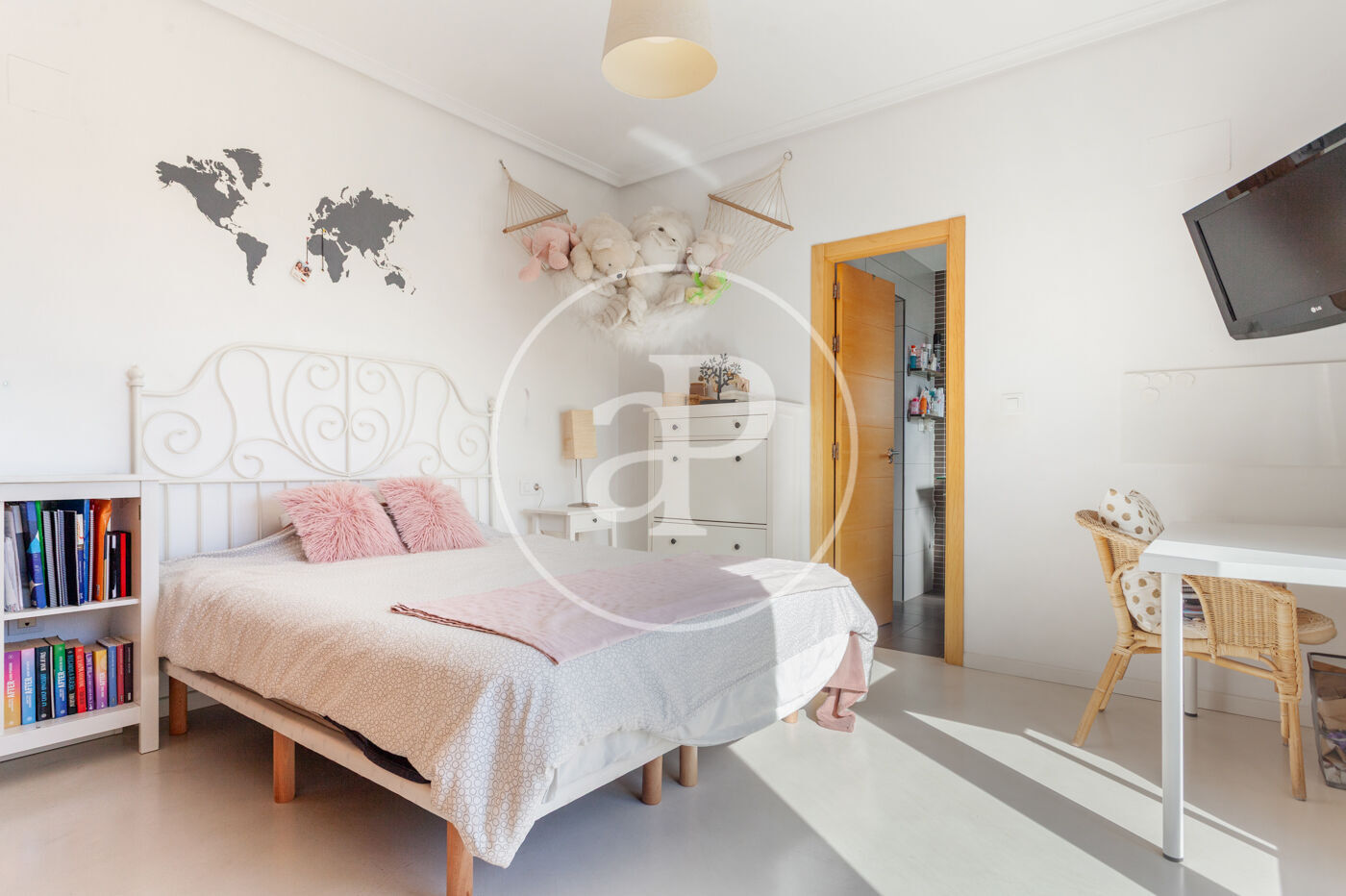 L’habitatge disposa, a més, de dues àmplies places de garatge i un traster. La urbanització en què es troba oferix dues piscines, servei de consergeria i àmplies zones comunes que completen una experiència residencial única.