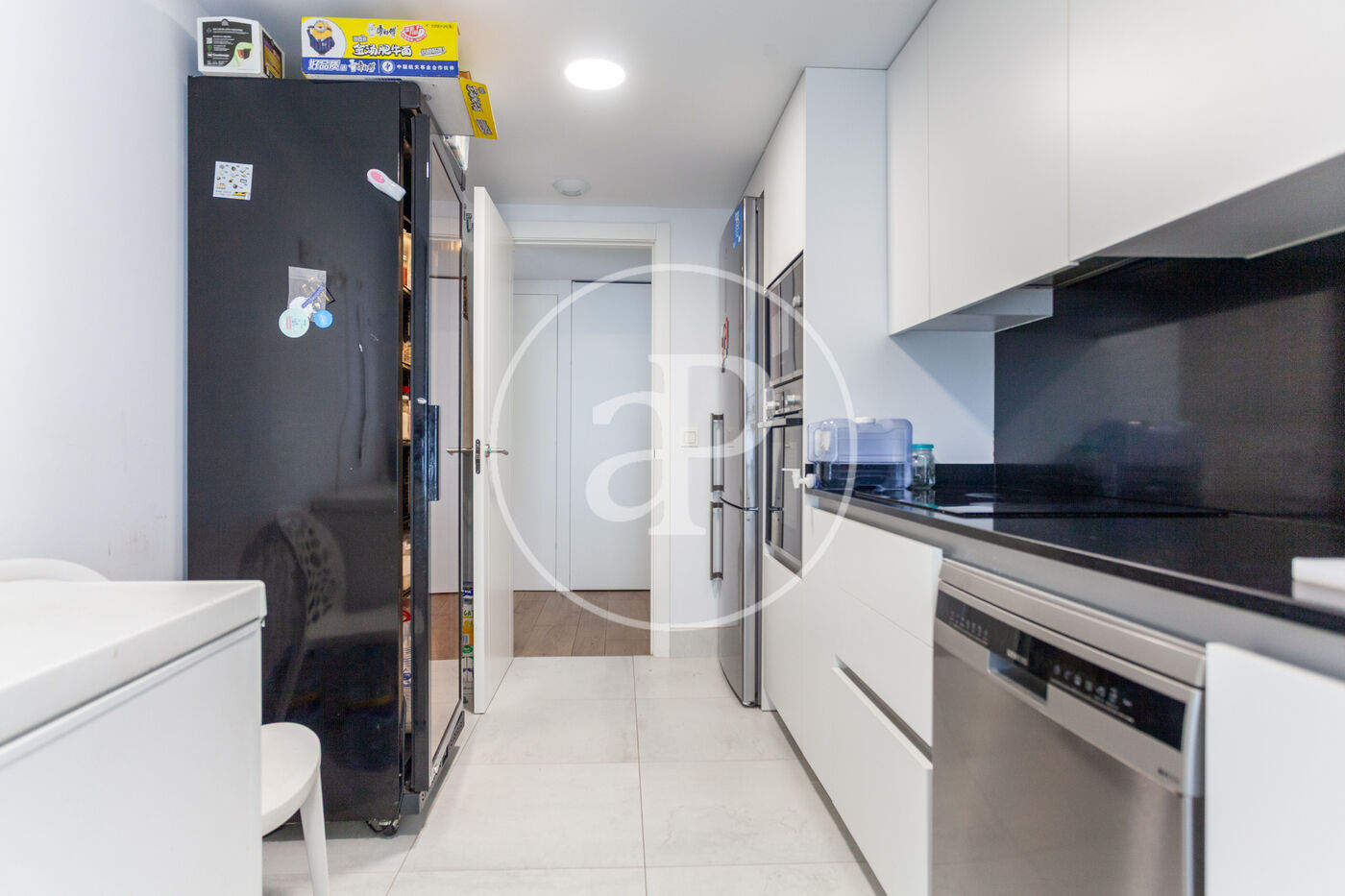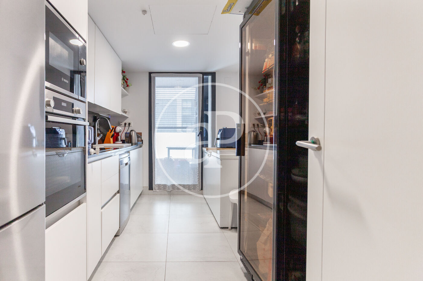 La cuina és independent, amb galeria, pràctica i funcional, pensada per al dia a dia. El sòl de tarima i els acabats de qualitat generen un ambient càlid i contemporani.