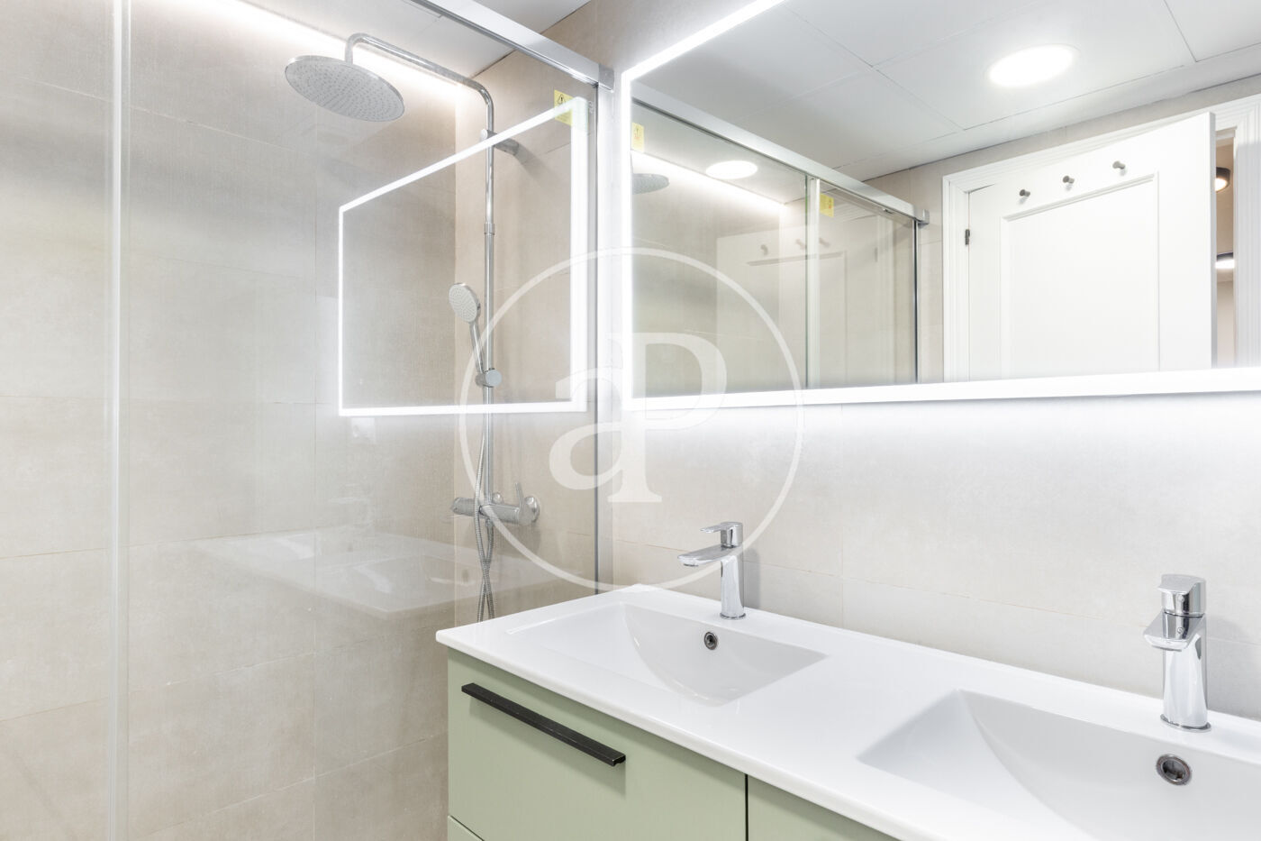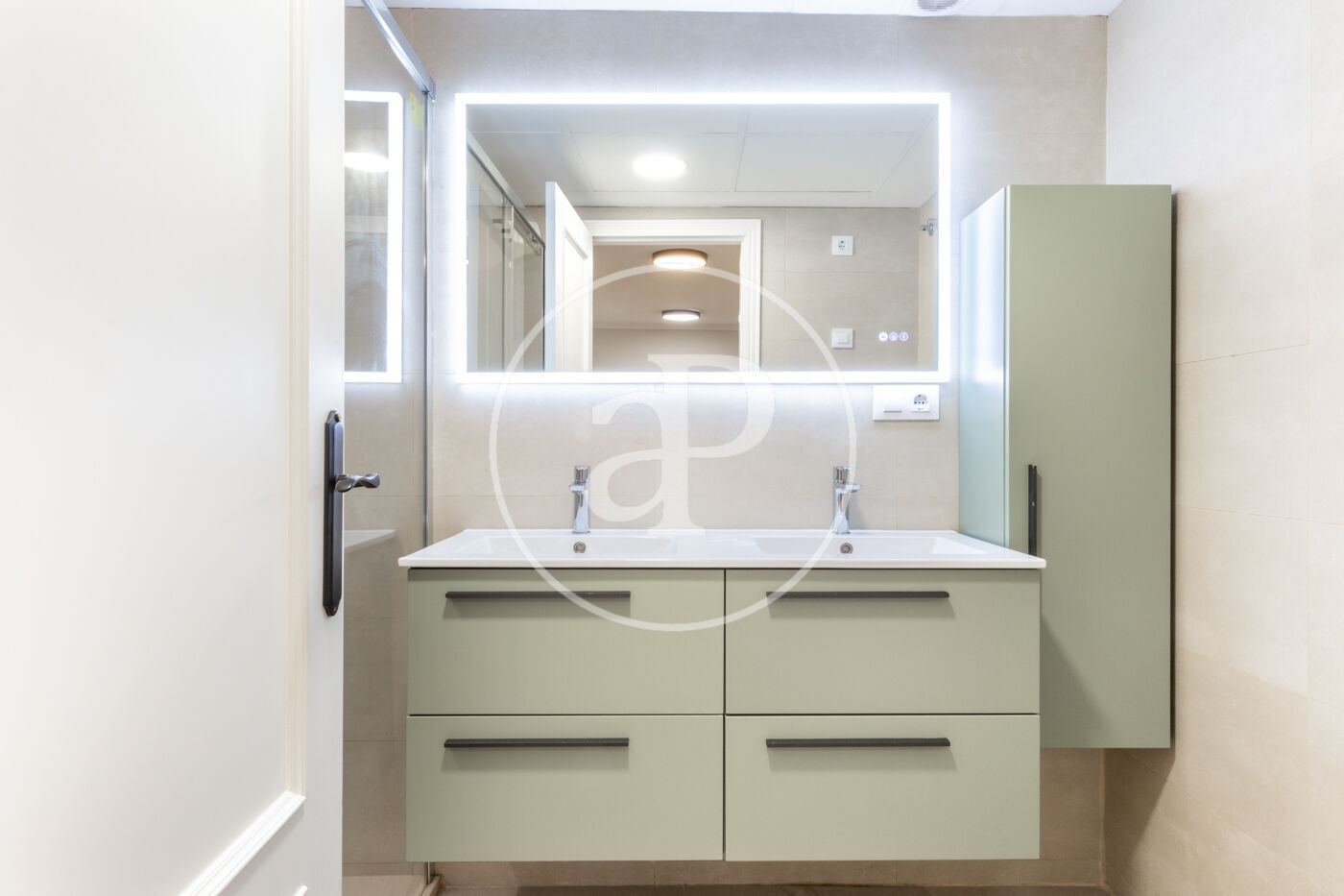 L'habitatge compta amb tres impressionants habitacions i dos banys complets, totes completament moblades, espaioses i plenes de llum natural. Una de les habitacions disposa de bany en suite, la qual cosa proporciona més privacitat i comoditat.