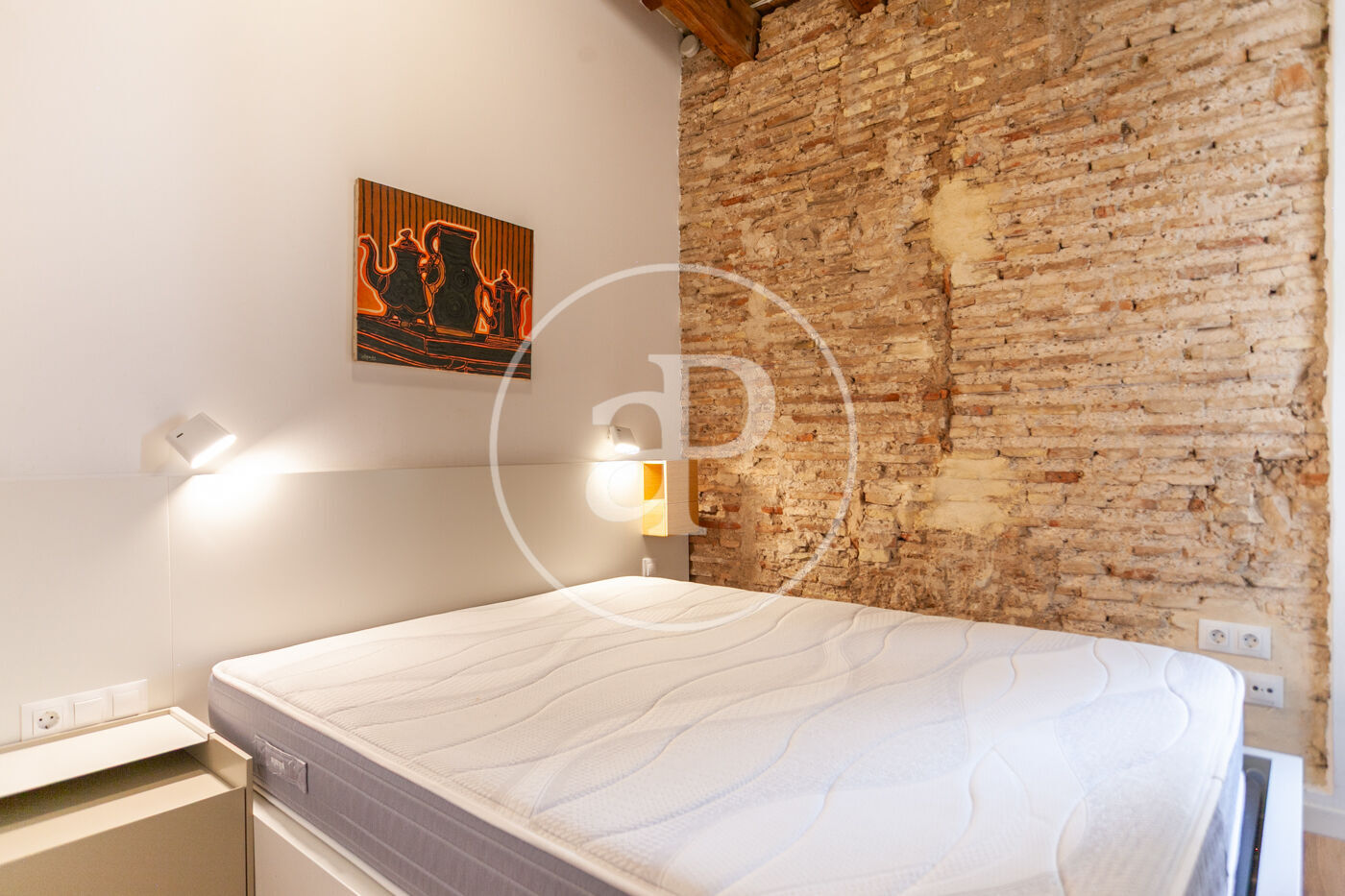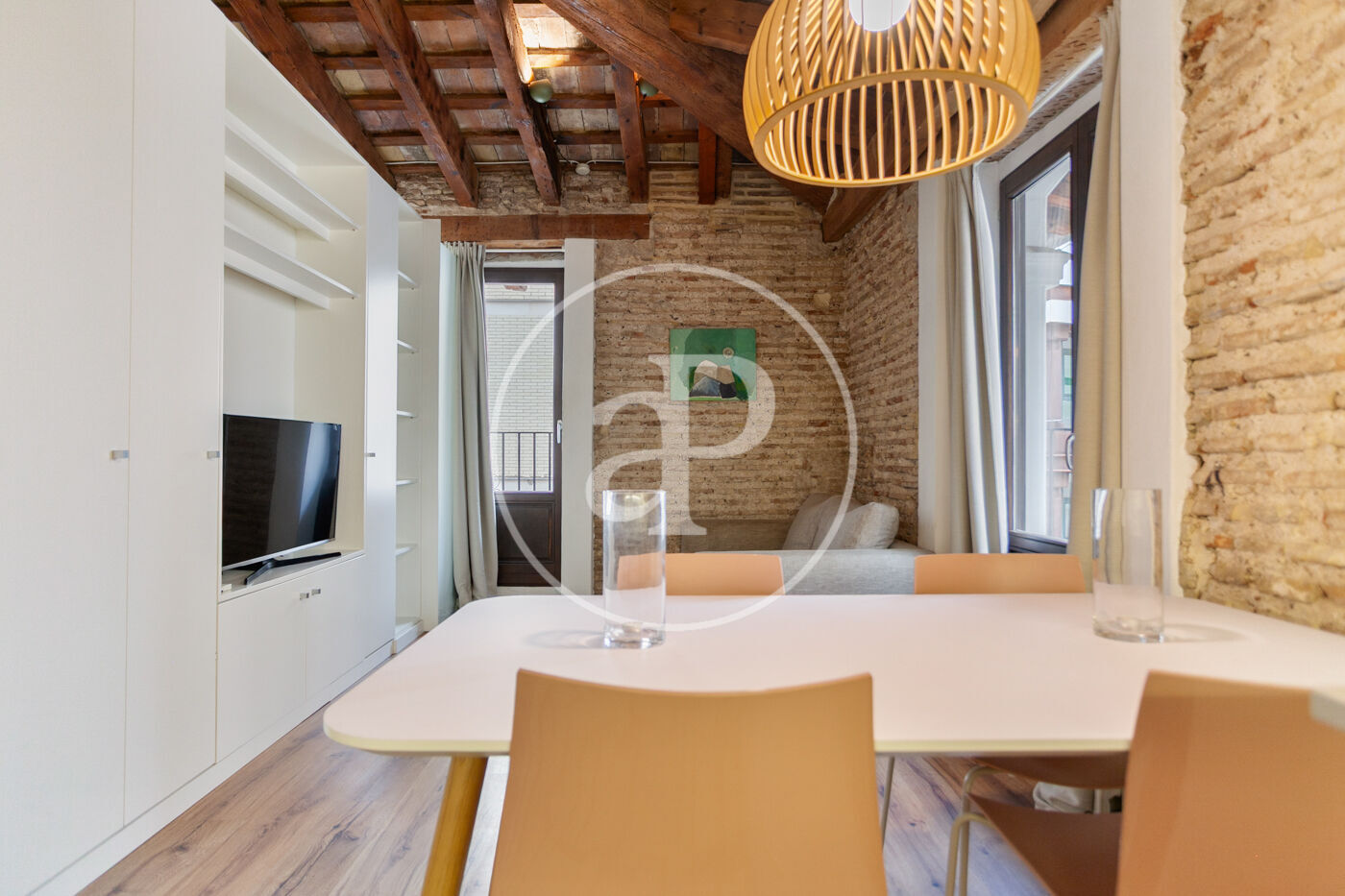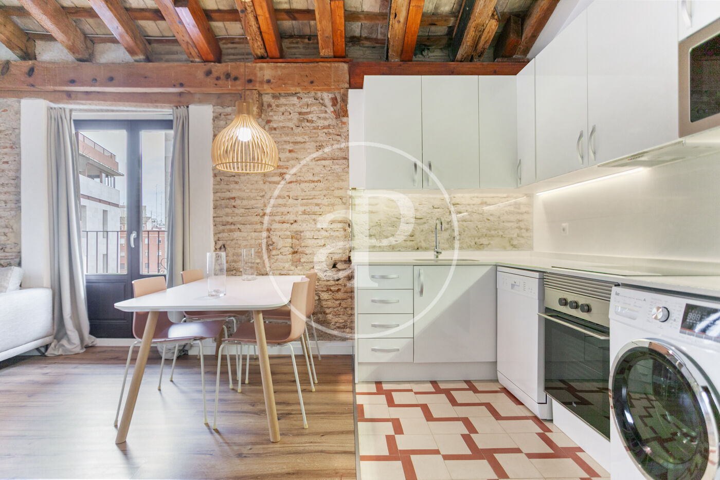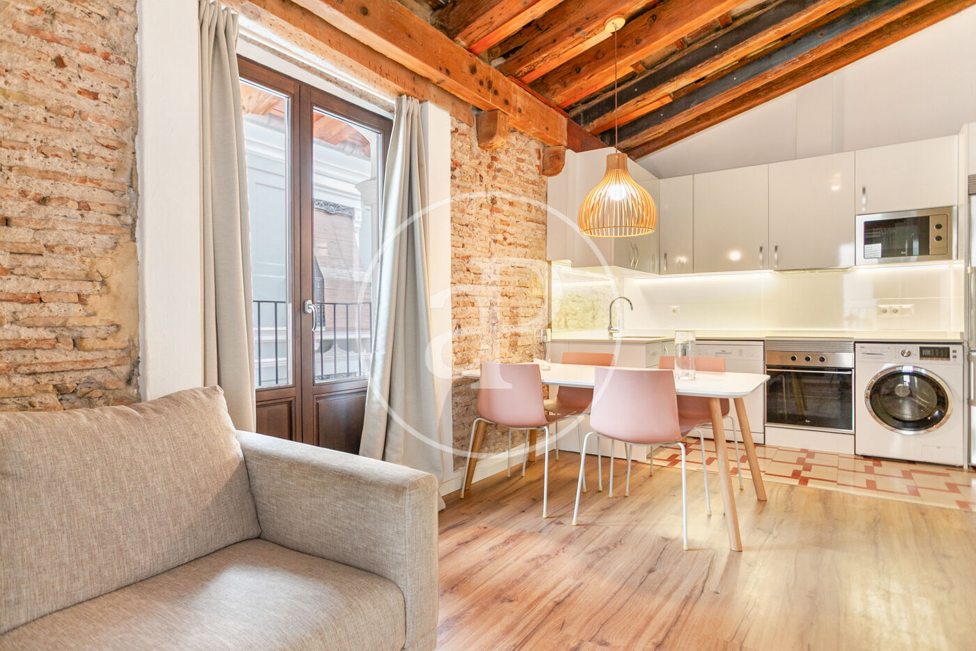 Es tracta d’un habitatge d’una habitació completa amb eixida a un balcó amb vistes al carrer. El saló, obert a la cuina, també té accés al balcó, cosa que li proporciona una gran entrada de llum natural.