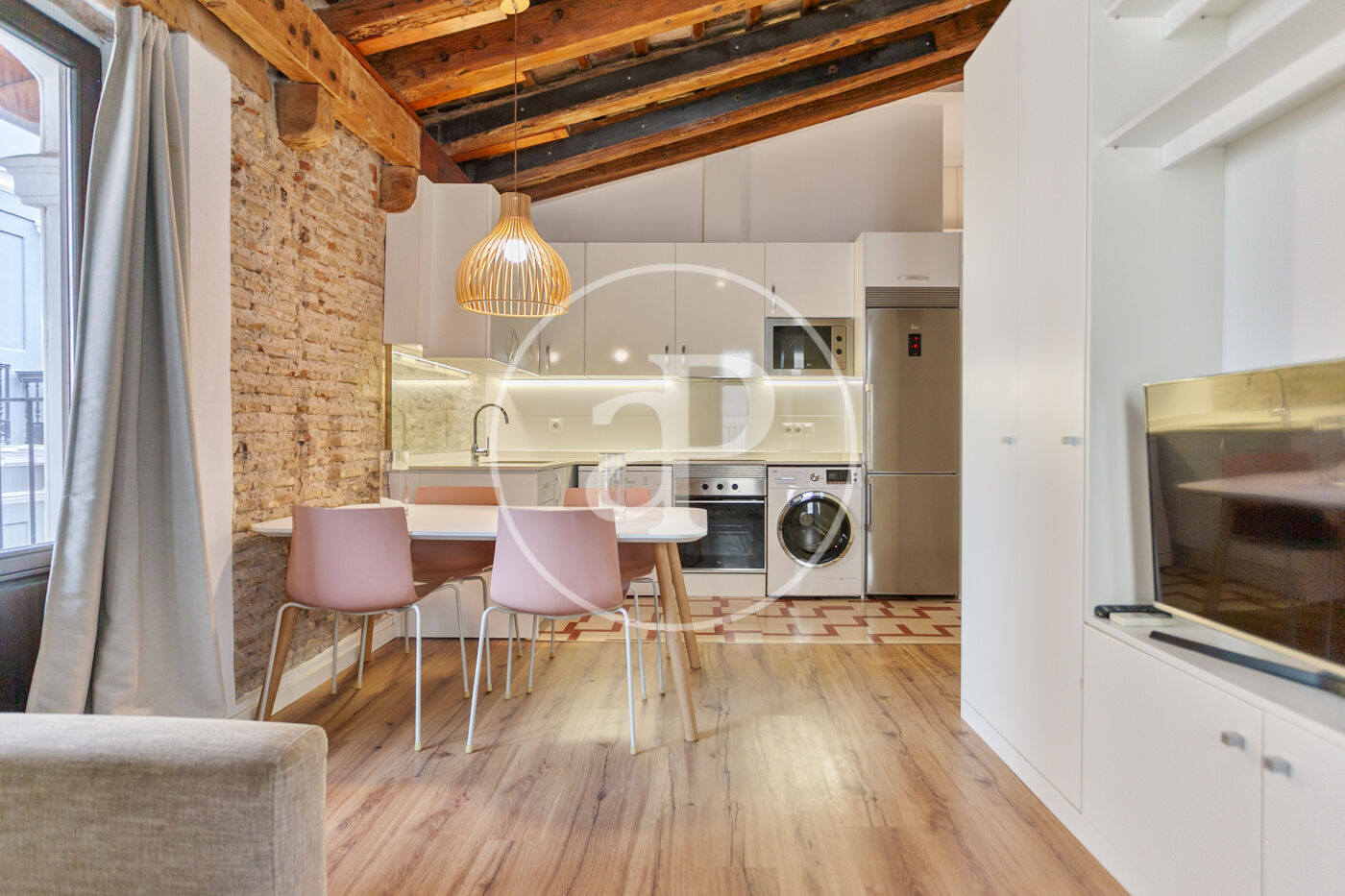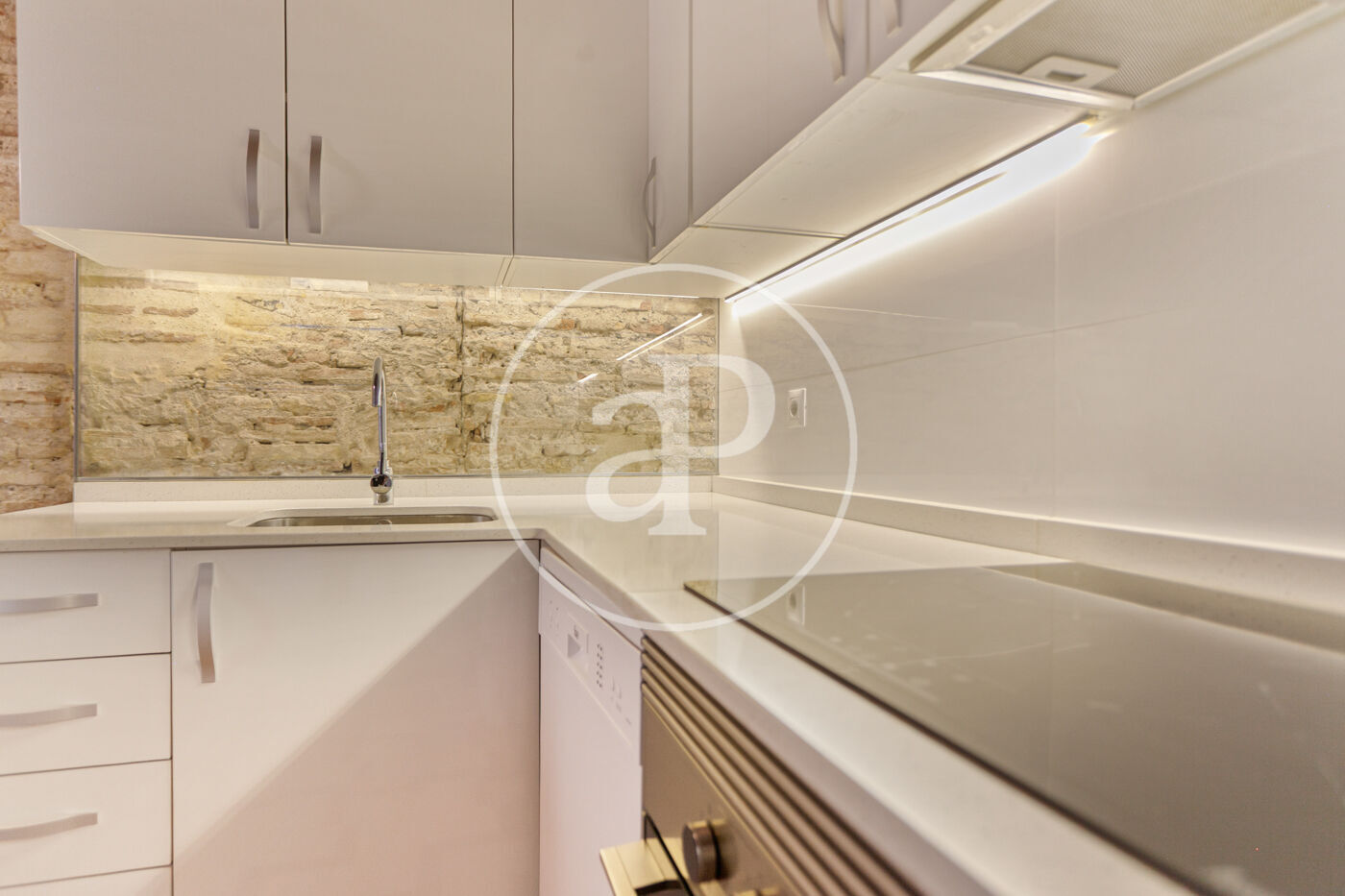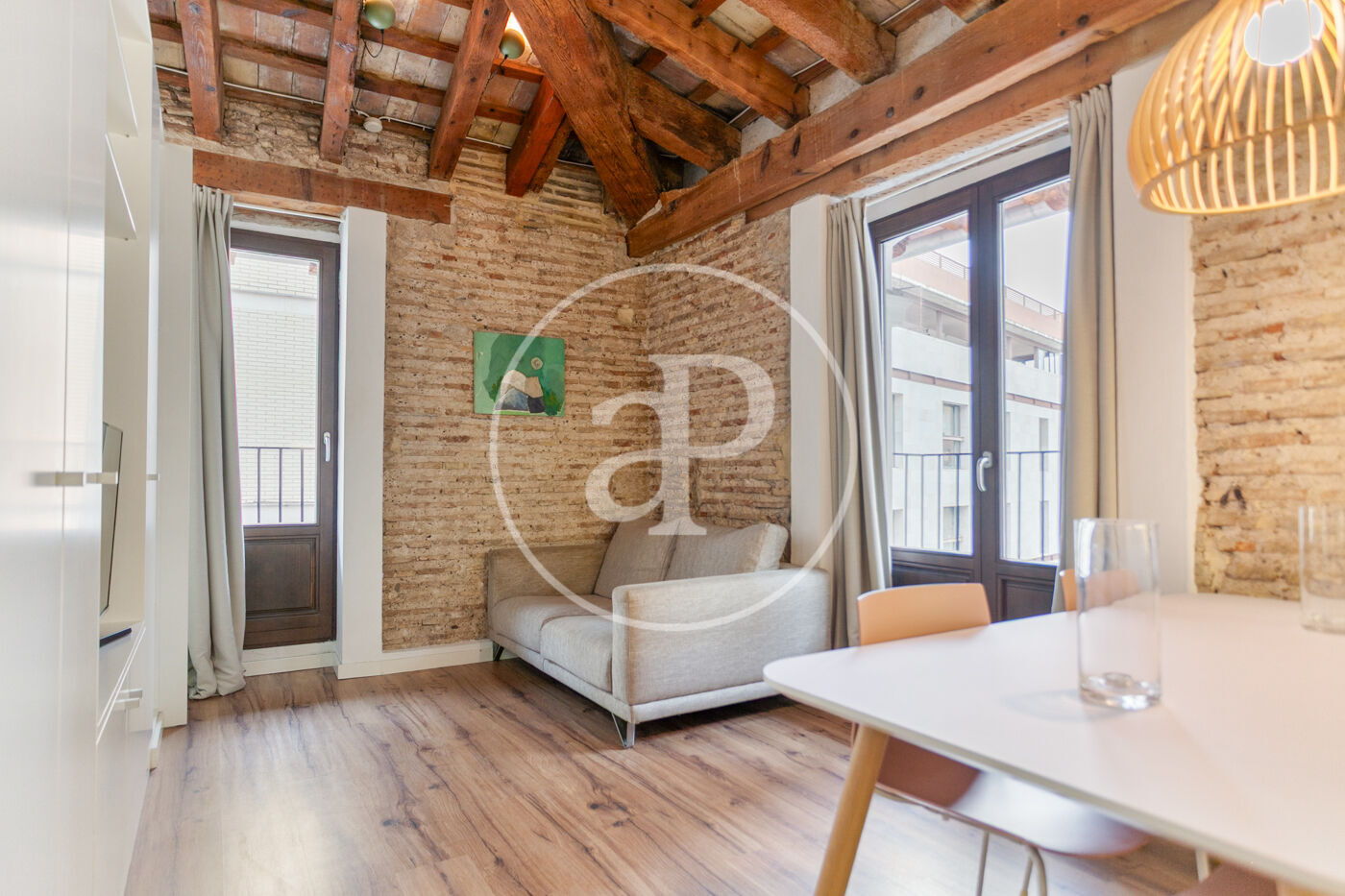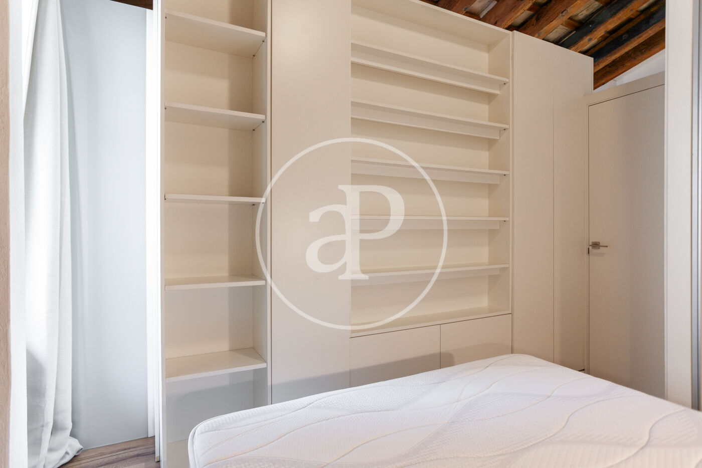 Es tracta d’un habitatge d’una habitació completa amb eixida a un balcó amb vistes al carrer. El saló, obert a la cuina, també té accés al balcó, cosa que li proporciona una gran entrada de llum natural.