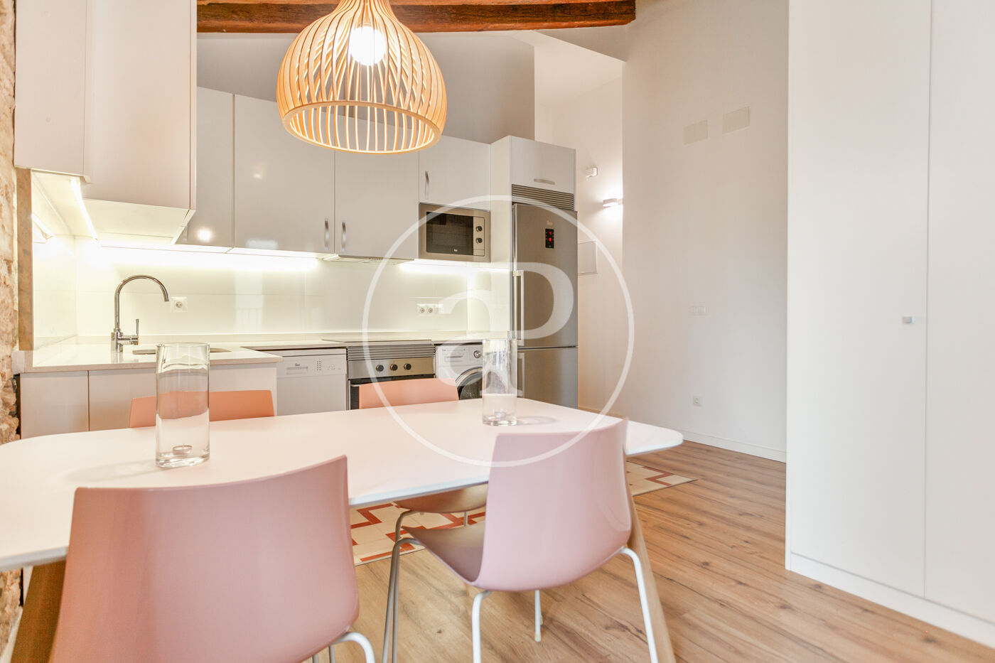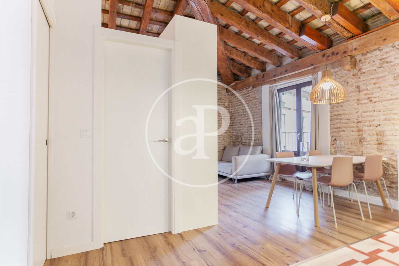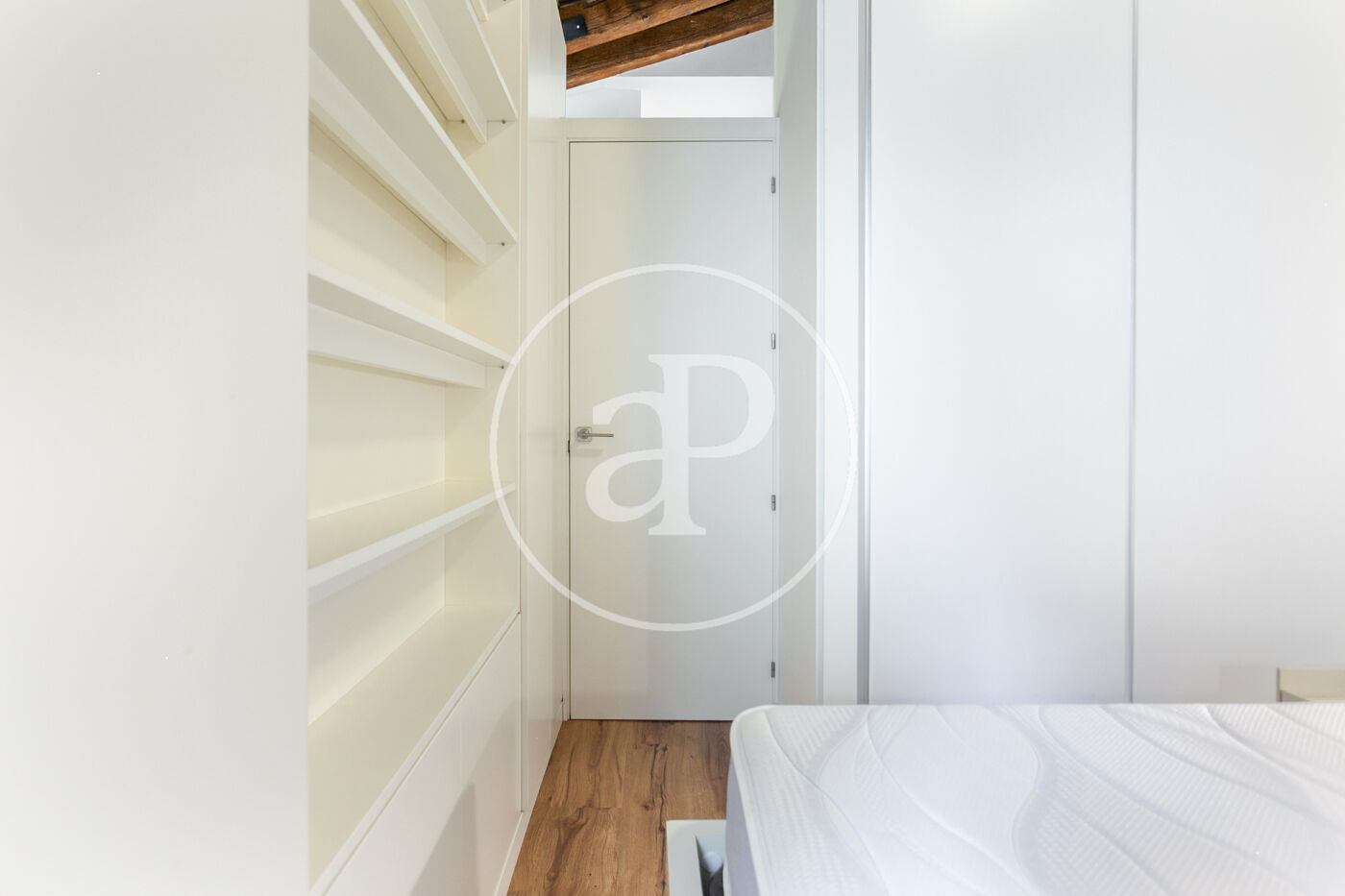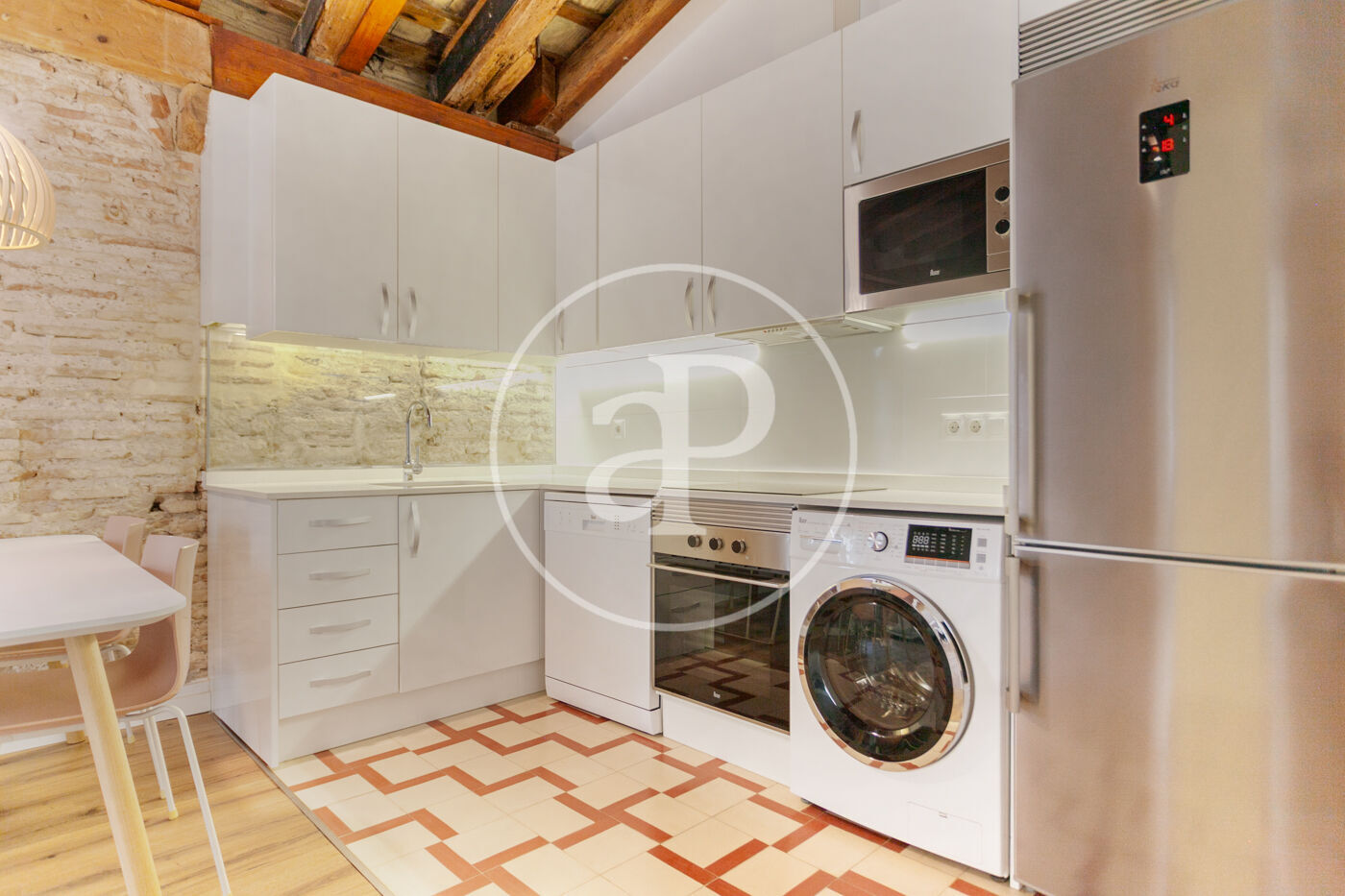 Es tracta d’un habitatge d’una habitació completa amb eixida a un balcó amb vistes al carrer. El saló, obert a la cuina, també té accés al balcó, cosa que li proporciona una gran entrada de llum natural.