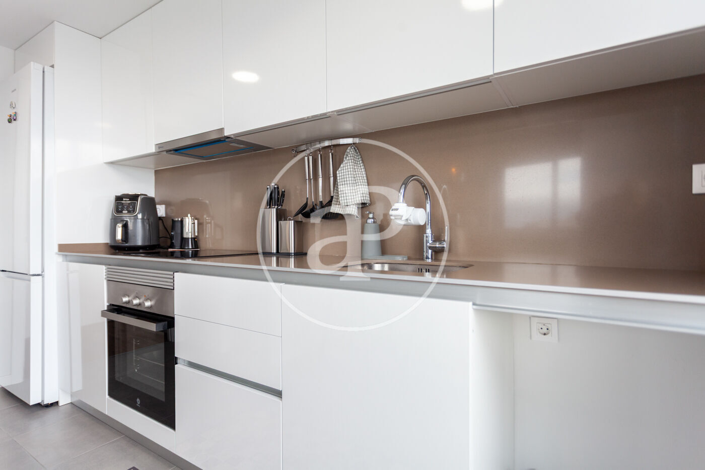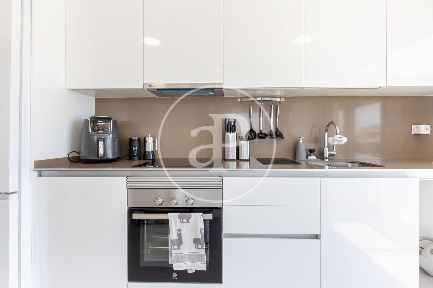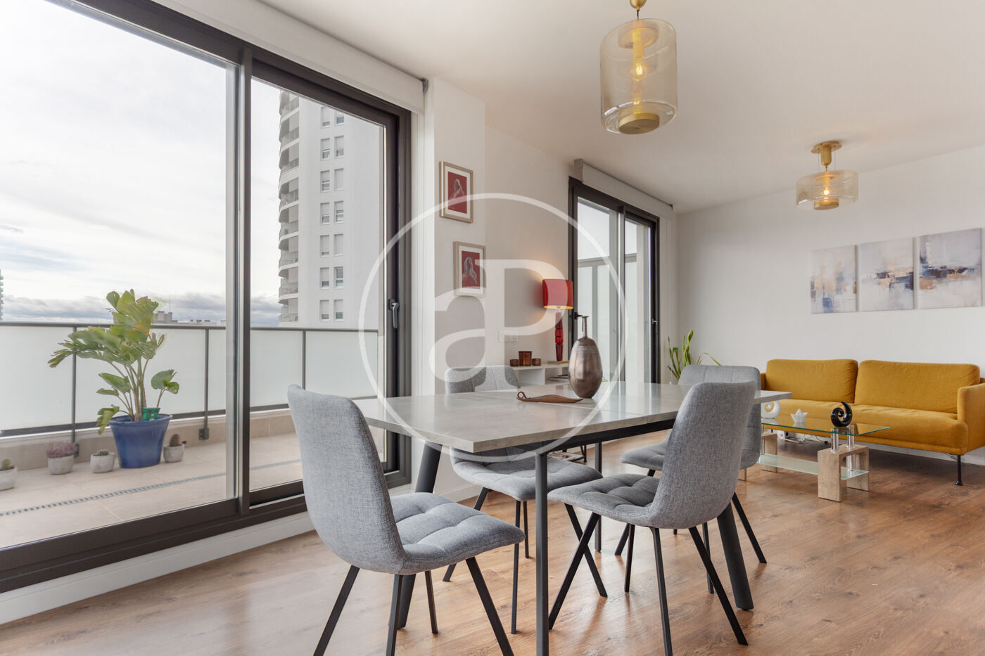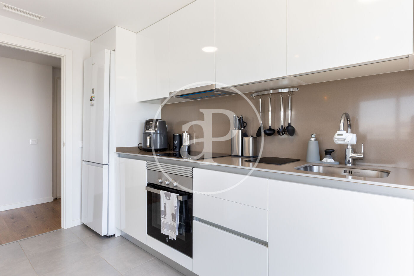Aquest àtic de luxe es distingeix pel seu disseny minimalista i elegant, que combina funcionalitat i estètica en perfecta harmonia. En entrar a la propietat, ens trobem amb una cuina oberta, equipada amb electrodomèstics d’alta gamma, que s’integra amb una magnífica illa central. Aquest espai comunica fluidament amb un ampli saló menjador, tots dos amb accés directe a la terrassa, creant un ambient ideal per al gaudi i la convivència.