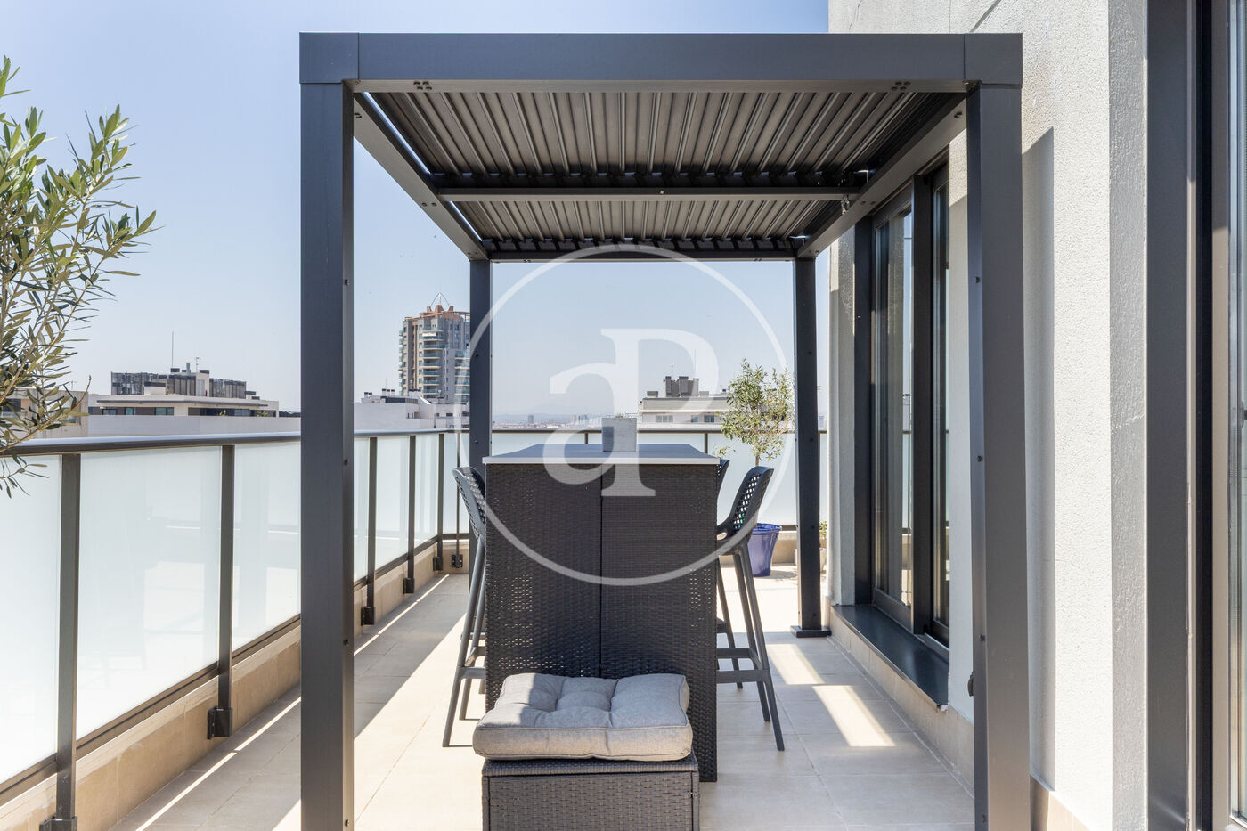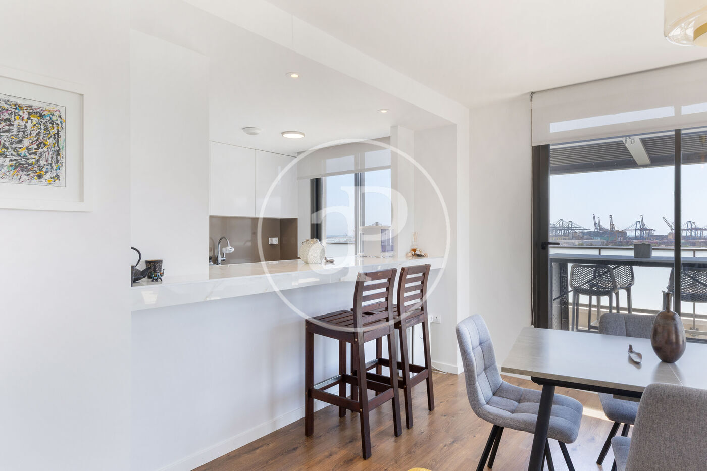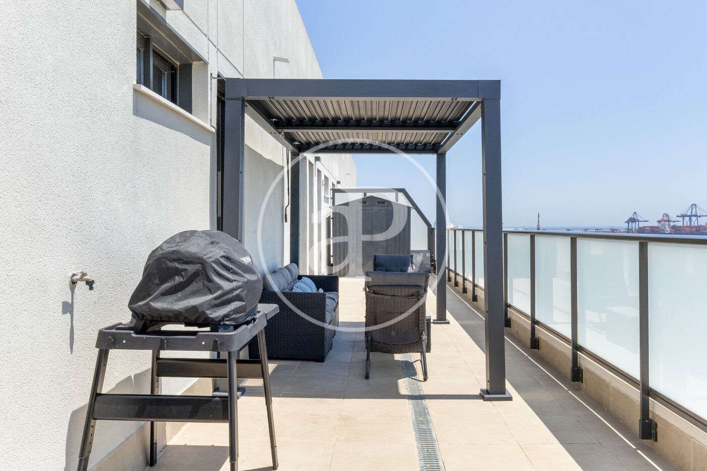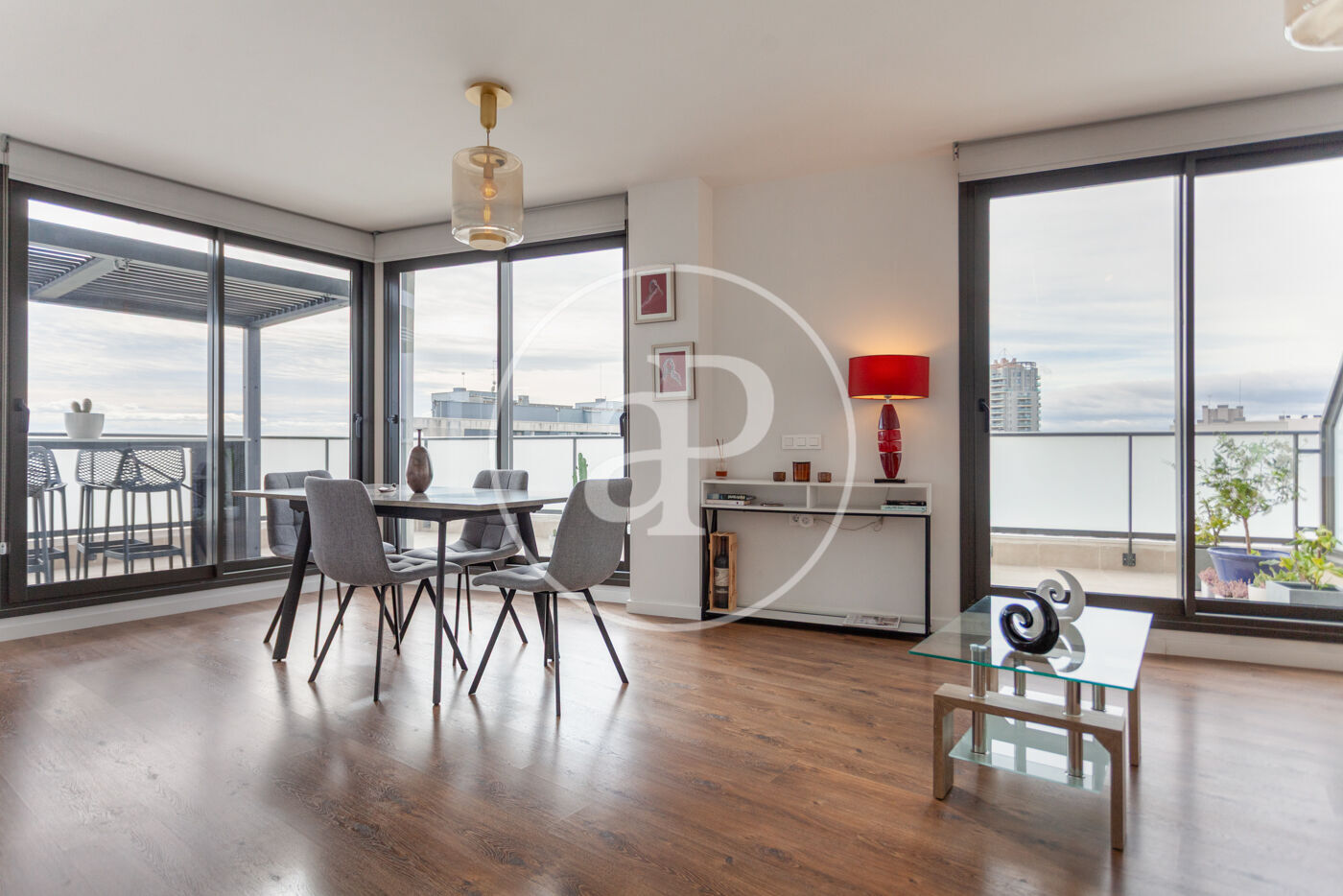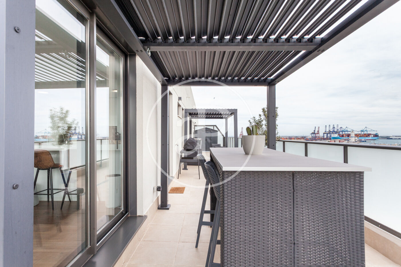 aProperties presenta aquest àtic de somni, situat a l’onzè pis d’un exclusiu residencial a la zona de Les Moreres, que està en ple auge, just al costat del vibrant port de València i a pocs minuts de la platja. Des de la seua posició cantonera, les seues dues terrasses envolvents ofereixen vistes panoràmiques que semblen eixides d’un quadre: el despertar amb els primers raigs de sol sobre el mar, la majestuositat de les muntanyes que s’estenen a l’horitzó i les postes de sol que tenyixen el cel amb tonalitats inigualables.