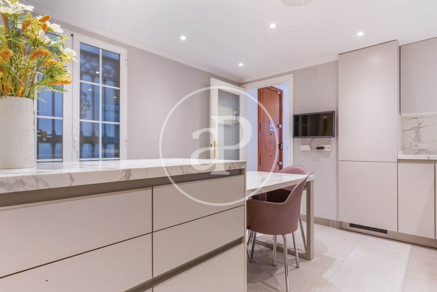 En accedir a la propietat, ens rep un elegant rebedor que condueix a un espaiós saló decorat amb un estil modern. L’ambient compta amb aire condicionat fred/calor per conductes, garantint un confort òptim durant tot l’any. A més, el doble envidrament a les finestres ofereix un excel·lent aïllament acústic i tèrmic, mentre que la porta cuirassada proporciona una seguretat addicional per a la seua tranquil·litat.