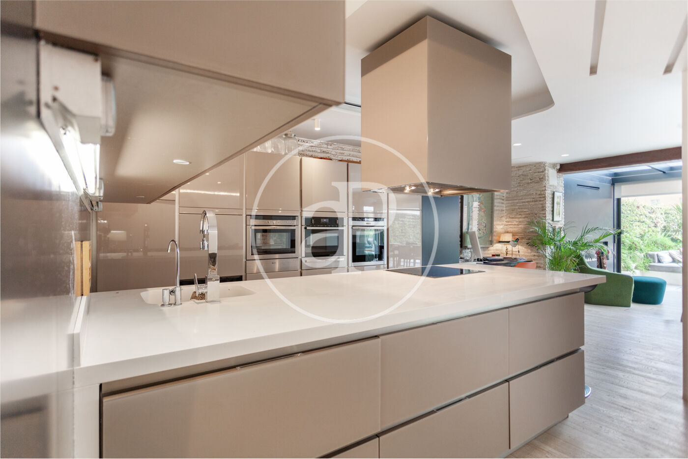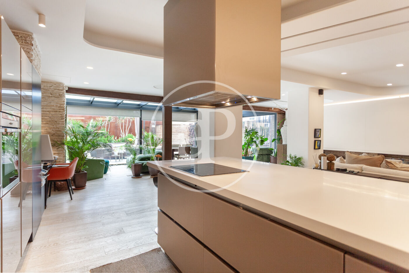 Les qualitats de l'habitatge són excepcionals. Compten amb 264 metres construïts amb zones comunes i està completament reformat. És un pis molt lluminós i ampli, amb saló-menjador i cuina oberta amb una gran illa, que dona accés directe a una espectacular terrassa de 80 metres. L’habitatge compta amb finestres de climalit i dos dormitoris amb armaris encastats, cadascun amb el seu bany incorporat. En ser tan amplis, permeten dividir els espais en cas de necessitar-ne algun més. També disposa d’un bany de cortesia.