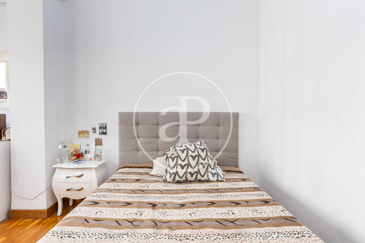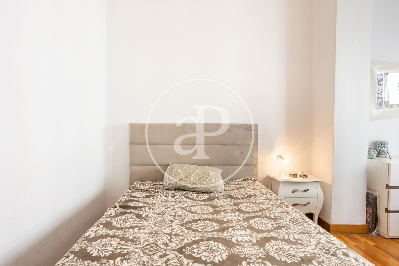 En entrar, et rep un ampli i elegant rebedor; a continuació, trobem un gran passadís que condueix a un lluminós saló-menjador amb vistes al carrer. L’habitatge disposa d’aire condicionat central en totes les seues estances.