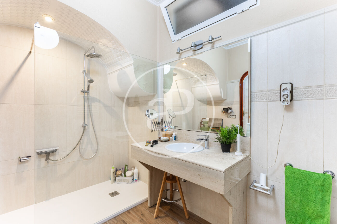 Des de aProperties presentem aquesta casa adossada de 305m2 construïts (inclosos 67 m² de pàrquing). Situada en una de les zones més cobejades de Sant Cugat, l'Eixample, aquesta propietat ofereix la perfecta combinació de tranquil·litat en un entorn residencial i la proximitat a tots els serveis essencials: col·legis, ESADE, mercat i una àmplia varietat de botigues. Característiques principals: - Orientació aquest-oest - Jardí privat i accés a piscina comunitària - Conjunt exclusiu de només 5 cases apariades - Calefacció per sòl radiant, finestres amb doble vidre, persianes elèctriques, aire condicionat, sòls de parquet, dues xemeneies de llenya i armaris de paret de fusta massissa en totes les estades. Distribució: Planta baixa: Rebedor amb armaris de paret, ampli saló menjador de 45m2 amb xemeneia de llenya i accés al jardí privat, cuina-office totalment equipada, lavabo de cortesia i dues terrasses. Primera planta: Tres habitacions dobles amb armaris de paret que comparteixen un bany complet, una d'elles amb terrassa, més una suite amb bany privat. Segona planta: Espaiosa golfa amb sostres inclinats de fusta i bigues, finestrals de paret a paret, amb orientació sud i oest que garanteix llum natural durant tot el dia. Terrasses a banda i banda, xemeneia de llenya i preinstal·lació per a fer un bany. Planta soterrani: garatge amb capacitat per a 2 cotxes, traster i zona de bugaderia. Una oportunitat única de viure en una casa que combina qualitat, confort i una ubicació privilegiada. En aProperties comptem amb experts agents immobiliaris per a oferir-li una atenció professional, personalitzada i eficient. A més, els oferim, sense cap compromís, un estudi de finançament perquè pugui prendre la millor decisió. No dubti a posar-se en contacte amb nosaltres per a més informació o per a concertar una visita!