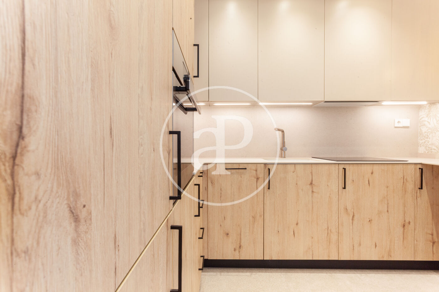 En el seu interior, la qualitat es percep en cada detall: des dels sòls de porcellànic de disseny firmats per Tau Ceràmica, fins a la cuina italiana de línies pures equipada amb mobiliari d'Aran Cucine, tot ha sigut seleccionat per a oferir una estètica sofisticada i atemporal. Els electrodomèstics integrats es fusionen amb el disseny, i l'aigüera de granit afig un toc de funcionalitat i solidesa. La vivenda compta amb un aïllament tèrmic i acústic d'alt nivell, climatització eficient i una cuidada il·luminació que reforça el seu estil contemporani i acollidor.