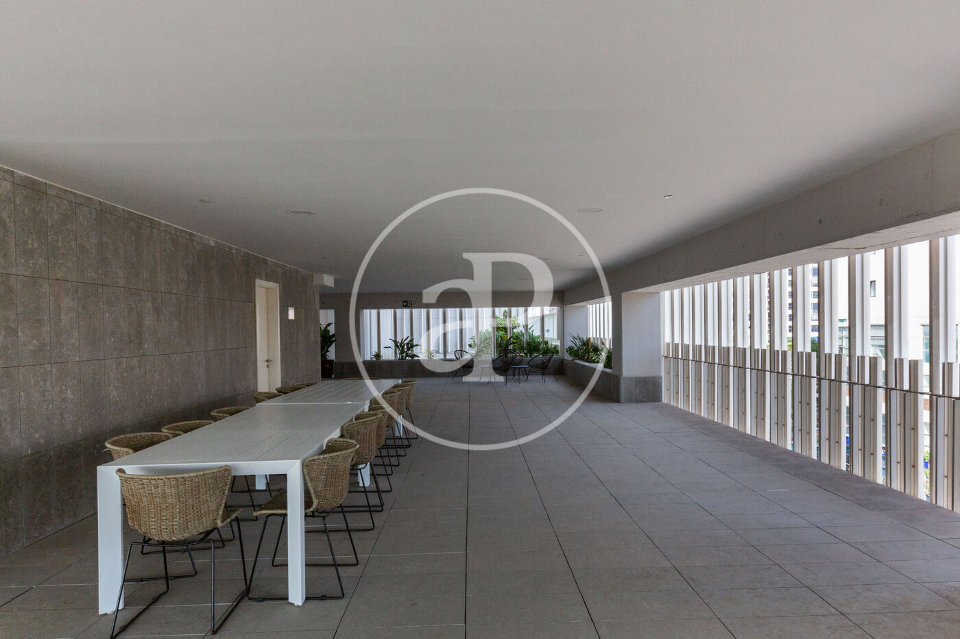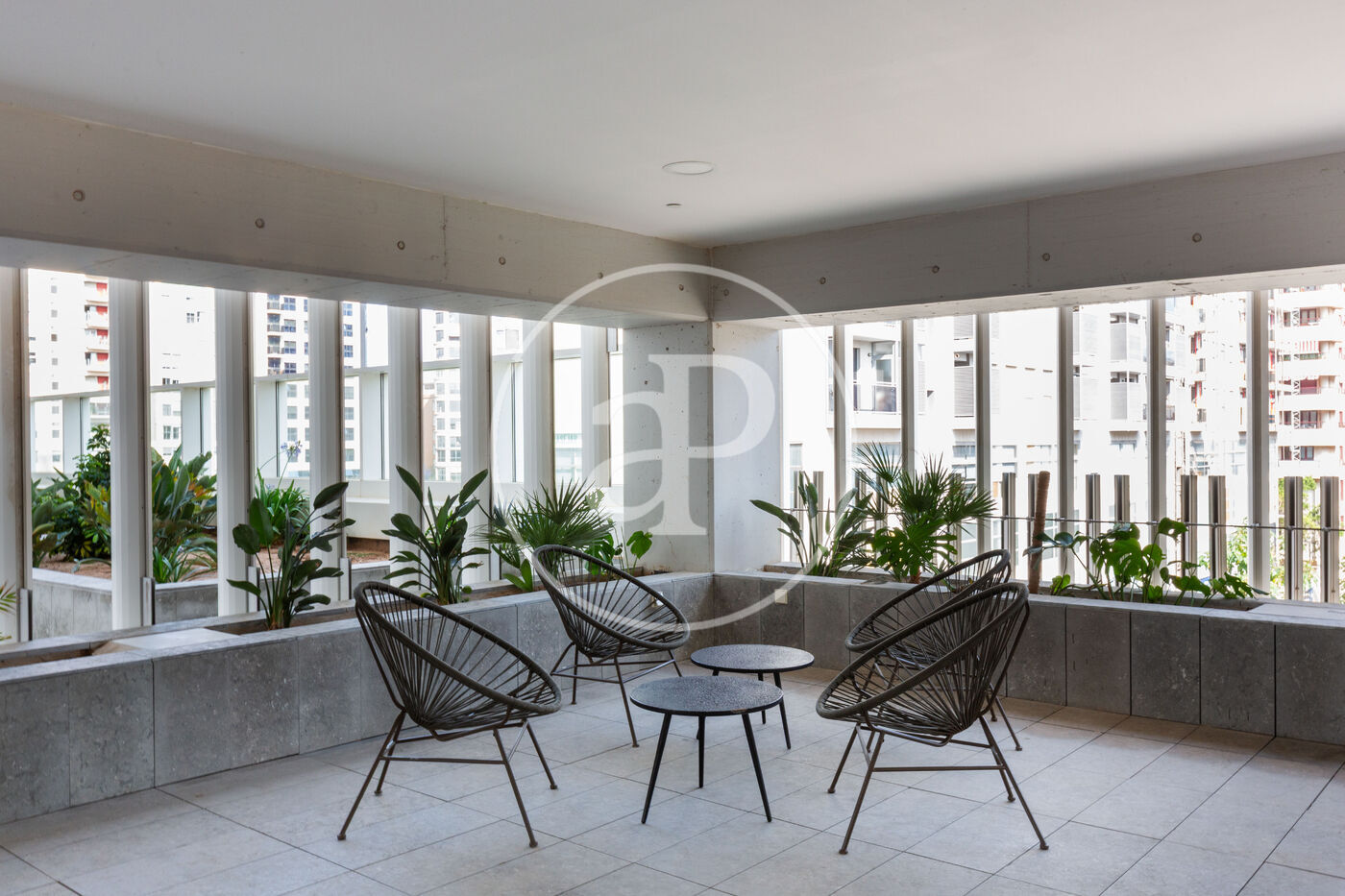 L’edifici ofereix completes zones comunes d’ús exclusiu: espai coworking amb sales de reunions, piscina amb solàrium, gimnàs totalment equipat, jardins i un elegant espai social gourmet ideal per a reunions o celebracions.