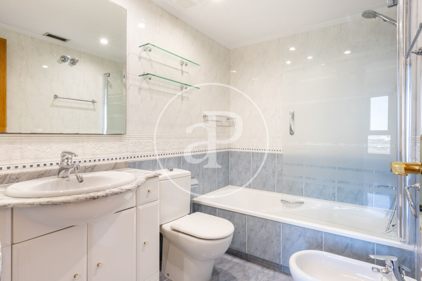 La propietat disposa de 5 dormitoris, 4 banys, piscina, gimnàs, 2 places d'aparcament, aire condicionat, armaris encastats, bugaderia, balcó, pati posterior, calefacció, consergeria i traster.