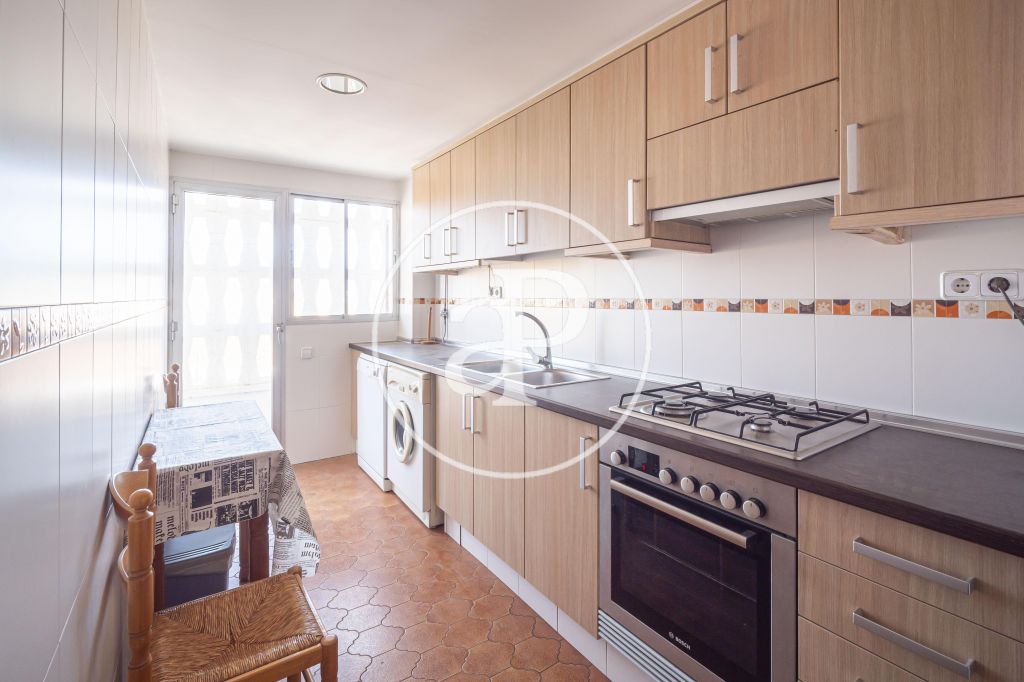 Presentem aquest exclusiu àtic totalment exterior, reformat íntegrament l’any 2019, ubicat en una setena planta real amb ascensor panoràmic de vidre i terrassa d’ús privatiu. Només entrar ens adonem que és un pis amb molta personalitat i molt lluminós. Es distribueix en 2 habitacions dobles (una àmplia i una altra més petita), un bany complet amb dutxa, saló-menjador amb sortida a un balcó orientat al sud-oest, cuina oberta totalment equipada i un balcó interior de 2 m² destinat a zona d’aigües. El terra de parquet natural i els sostres amb volta catalana aporten una calidesa especial a tot el pis. Tots els mobles, tant interiors com els de la terrassa, estan inclosos. A més, disposa d’un traster privat. El clima, tant fred com calor, és per conductes. A més de l’ascensor panoràmic a la finca, l’àtic gaudeix d’un ascensor privat per accedir a la terrassa d’ús privatiu de 44 m² a la planta superior, accessible també per l’escala de l’edifici. Tot el mobiliari de la terrassa és de la marca Arboletum i inclou dues hamaques, taula de menjador, pèrgola amb tendal elèctric, zona de chillout i sistema de reg automàtic. Les vistes des d’aquesta terrassa són espectaculars i, a més, podem gaudir d’una piscina de 2x2 per refrescar-nos durant els mesos més calorosos. El pis disposa d’una plaça d’aparcament petita inclosa en el preu, en una finca propera. Si busques un àtic atractiu, totalment exterior i amb tot el confort, no dubtis a sol·licitar una visita. No esperis més, programarem la visita segons la teva disponibilitat.