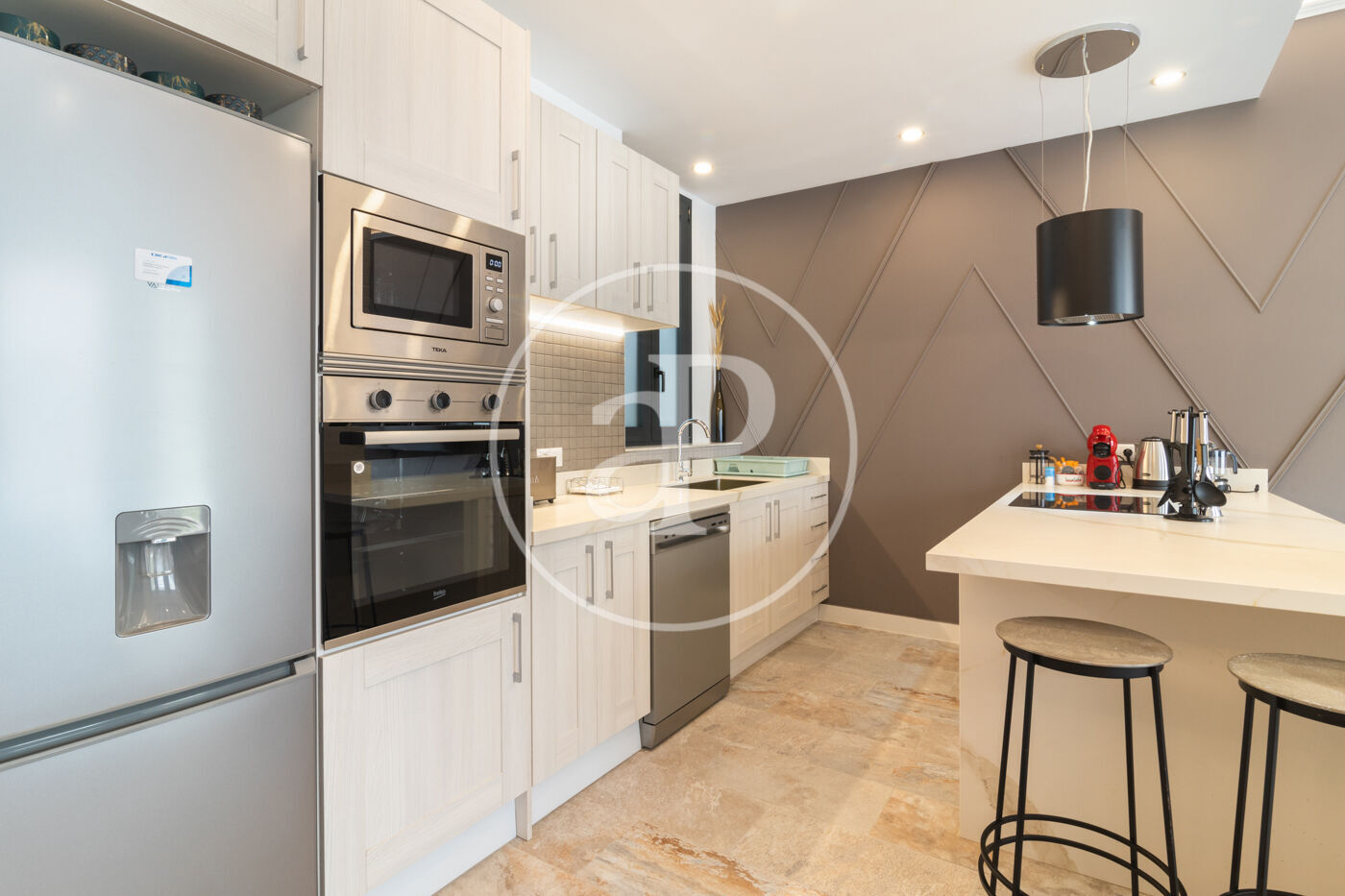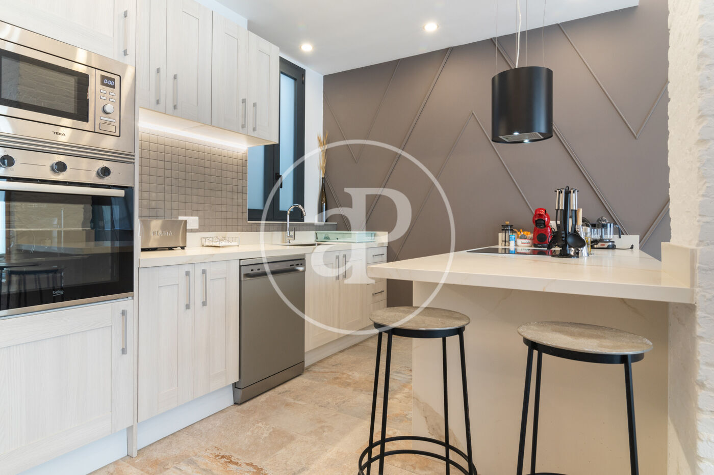 La conjugació de locación, qualitat de reforma i gust exquisit, converteixen a aquest pis en una peça única en el mercat de Sant Cugat. En una de les zones més exclusives de Sant Cugat, vistes directes al Golf i a tan sols 3 minuts caminant de l'estació de Sant Cugat. Tenim el plaer de presentar-los en exclusiva aquest magnífic pis de 4 habitacions que els deixarà gratament sorpresos. Comencem la nostra visita pel rebedor que ens condueix a un espai diàfan, però virtualment separat en cuina, menjador i saló. Tots els espais connecten visualment amb el Golf, que passa a formar part del pis, interactuant constantment amb la seva implacable presència. Tot el pis està reformat íntegrament, la cuina totalment equipada, minimalista, amb tots els artefactes apanalados, per a no irrompre en la impol·luta imatge del disseny nòrdic que caracteritza a aquesta reforma. El menjador i el saló estan separats per una petita paret i una xemeneia envidrada que serveix a tots dos ambients. El saló té sortida a una terrassa, també encarada al Golf. La terrassa té espai per a sofàs i una gran taula de menjador. Tornant a l'interior, trobem quatre habitacions, la màster suite, composta per vestidor i bany complet i tres habitacions més, una d'elles amb sortida directa a la terrassa que també connecta amb el saló. Una segona terrassa més, amb espai per a menjar o prendre sol. Si les vistes del pis són increïbles, les vistes 360è de la terrassa acabaran per extasiar-los. Finalment, el pis es completa amb dues petites habitacions, una que actua com a safareig i una altra de rebost. ACABATS DE QUALITAT: sòls de parquet, finestrals amb doble cristall i pont tèrmic color gris plom, calefacció amb radiadors, aire condicionat en algunes instàncies, ventiladors de sostre en totes les habitacions, amb armaris de paret en totes les habitacions i recepció. UBICACIÓ: Situada en una zona privilegiada i exclusiva del Golf, compta amb excel·lents comunicacions amb les principals carreteres amb accés immillorables a Barcelona i voltants. La zona de l’Eixample destaca per les seves zones residencials tranquil·les i caracteritzades per la seva proximitat a infinitud de serveis, comerços i serveis mèdics a escassos minuts. No dubti a contactar amb l'equip expert de aProperties Real Estigues per a la cerca de la seva nova llar, sempre eficaces, pròxims i professionals.