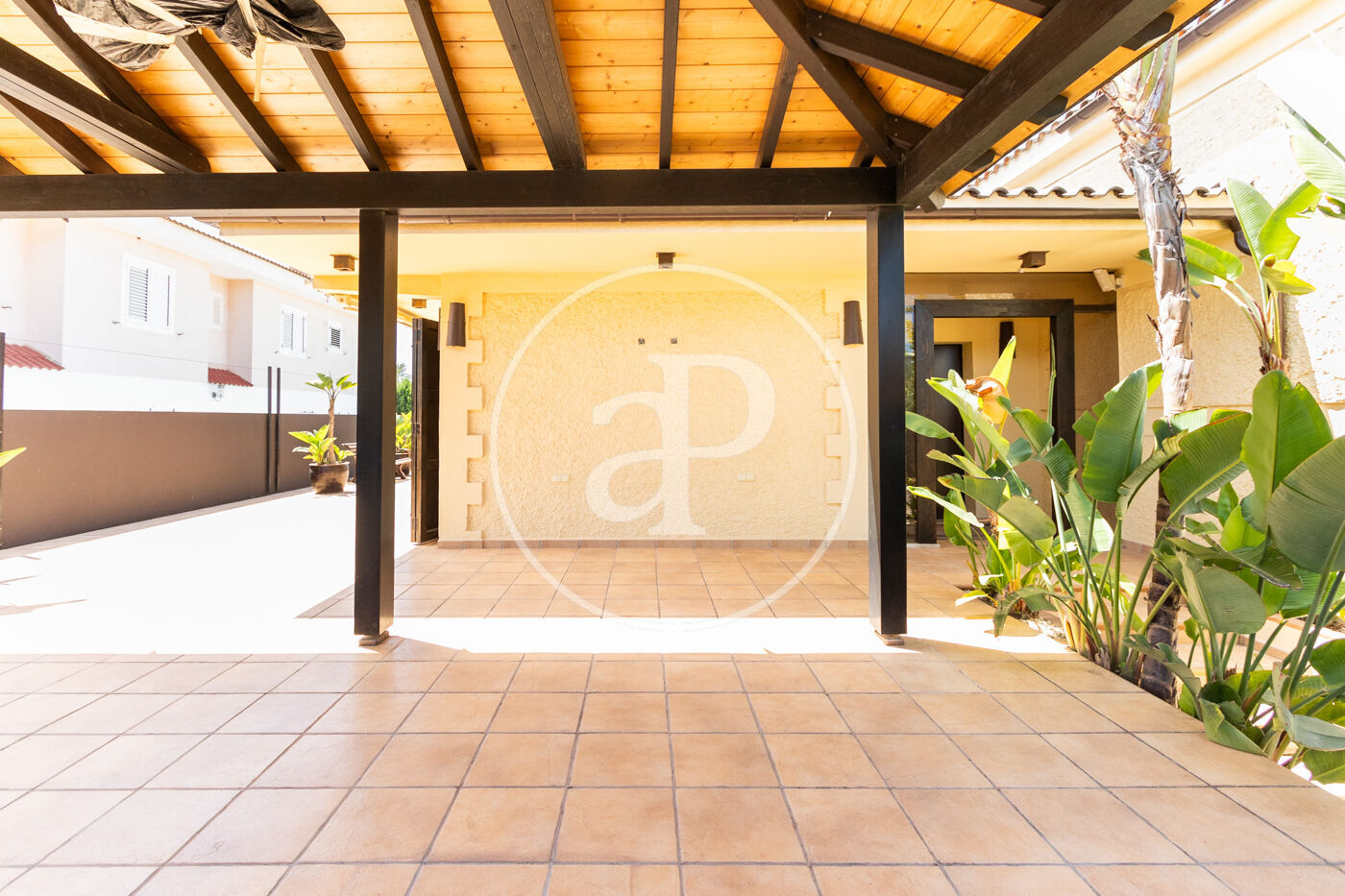 Descobreix aquesta encantadora residència amb un toc d'història i modernitat a cada racó. Construïda el 1984 i renovada meticulosament el 2022, aquesta propietat ofereix una combinació perfecta d'elegància clàssica i comoditats contemporànies. Amb una parcel·la de 655 m², la casa principal compta amb amplis espais interiors amb llar de foc, cuina totalment equipada amb pati, barbacoa i un espectacular forn de llenya, que connecta amb l'espai de la planta baixa i la impressionant piscina renovada. A més, compta amb un apartament adjunt complet amb la seva pròpia sala d'estar, dormitori, cuina i bany, ideal per a hostes o com a espai de lloguer independent. Gaudeix de vistes panoràmiques a la badia de Palma i al majestuós Castell de Bellver des de la terrassa privada. La planta de dalt ofereix un espai destinat a oficina i dos dormitoris amplis amb armaris de paret i terrassa amb vistes panoràmiques. El lavabo compta amb dues cambres de bany, un extens safareig a part, i està equipat amb altaveus a cada racó. Equipada amb sistemes de seguretat d'última generació, calefacció central de gas, aire condicionat, i un sistema de so integrat a tota la propietat, aquesta residència ofereix l'equilibri perfecte entre luxe i confort. Amb garatge per a dos vehicles i una ubicació privilegiada a Palma de Mallorca, aquesta és una oportunitat única per viure l'estil de vida mediterrani a la seva màxima expressió.
