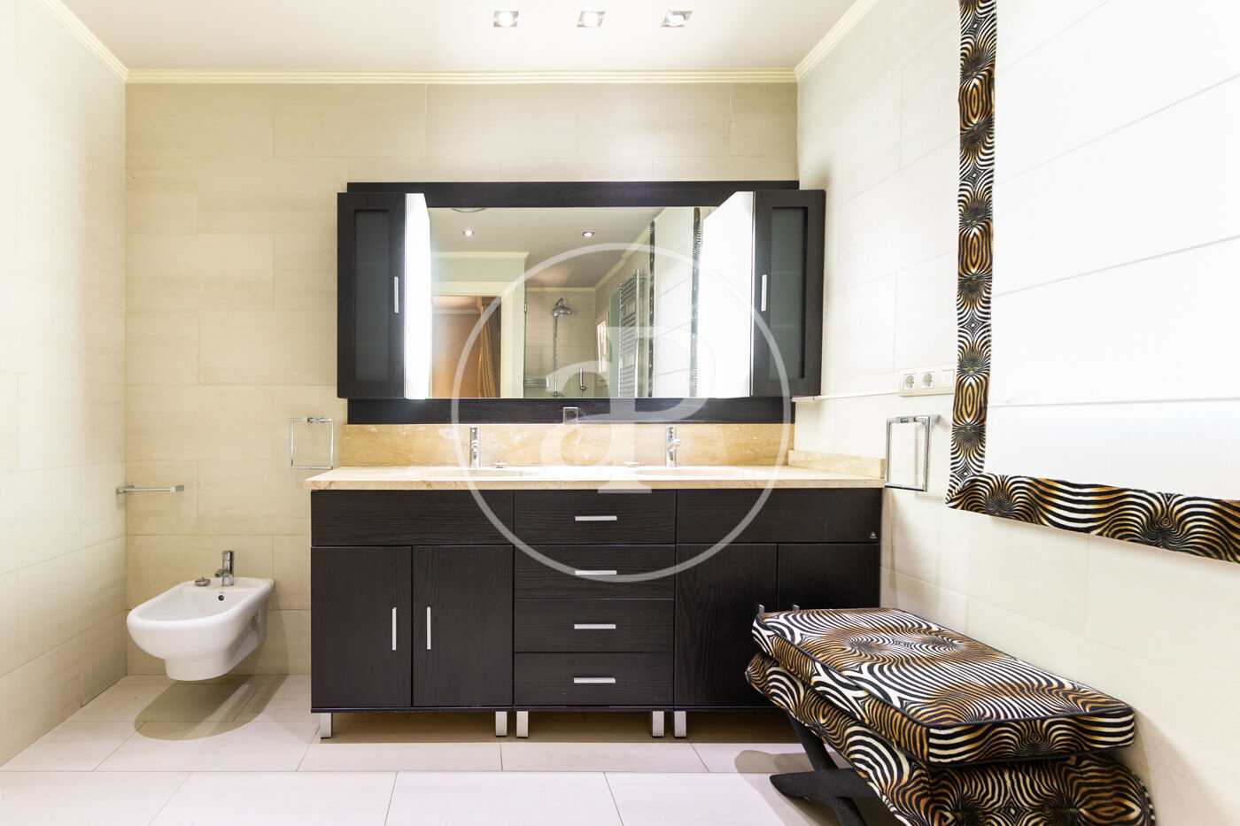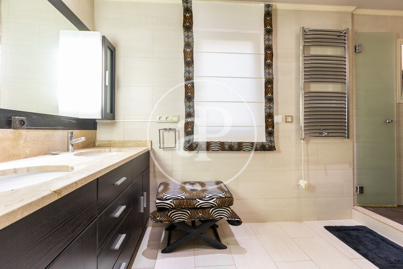 Situada en la prestigiosa zona alta del barri de Sarrià, aquesta casa unifamiliar representa l'equilibri perfecte entre l'elegància urbana i la tranquil·litat natural. Des de la seva ubicació privilegiada, es gaudeixen de vistes espectaculars que abasten tota la ciutat de Barcelona i els seus voltants, brindant un escenari impressionant en totes les estacions de l'any.   Aquesta residència de luxe, distribuïda en diverses plantes, ofereix un disseny còmode i espais acuradament planificats. En la planta soterrani, un aparcament privat amb capacitat per a sis cotxes i motos proporciona comoditat i seguretat per als seus residents. A més, trobem una habitació doble de servei amb el seu bany, una zona d'aigües i una generosa sala de magatzematge que faciliten l'organització de la vida quotidiana.   La planta principal alberga un ampli i lluminós saló-menjador, on les grans finestres i portes de cristall s'obren al bell jardí. La cuina office, equipada amb les últimes comoditats, també es connecta amb el jardí, creant un espai perfecte per a gaudir de menjars a l'aire lliure. Un elegant despatx i un lavabo de cortesia completen aquesta planta, oferint funcionalitat i estil en cada racó.   En la primera planta, una impressionant suite principal es converteix en un santuari privat, amb un ampli vestidor i un bany complet. A més, dues habitacions dobles en suite brinden comoditat addicional, i una espaiosa sala polivalent permet adaptar aquest espai segons les necessitats de cada resident.   L'última planta sorprèn amb una àmplia sala d'estar i un bany complet, però el més destacat són les terrasses panoràmiques que ofereixen vistes enlluernadores de la ciutat, un lloc perfecte per a relaxar-se i contemplar l'horitzó.   Aquesta casa unifamiliar és un oasi de tranquil·litat i bellesa en la bulliciosa Barcelona, on l'elegància i la naturalesa s'uneixen per a crear una llar incomparable.