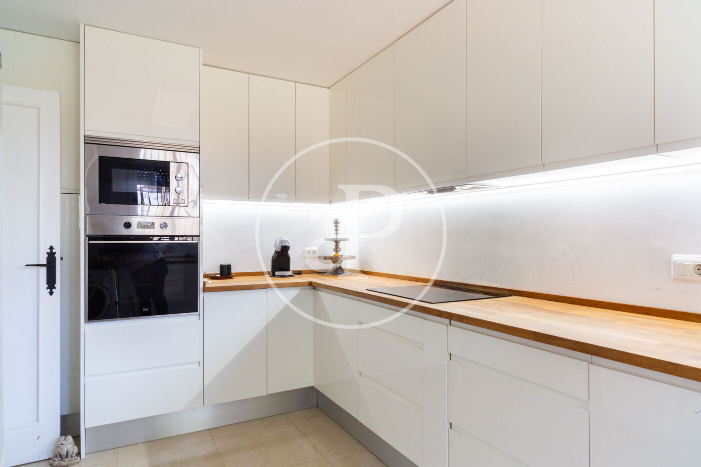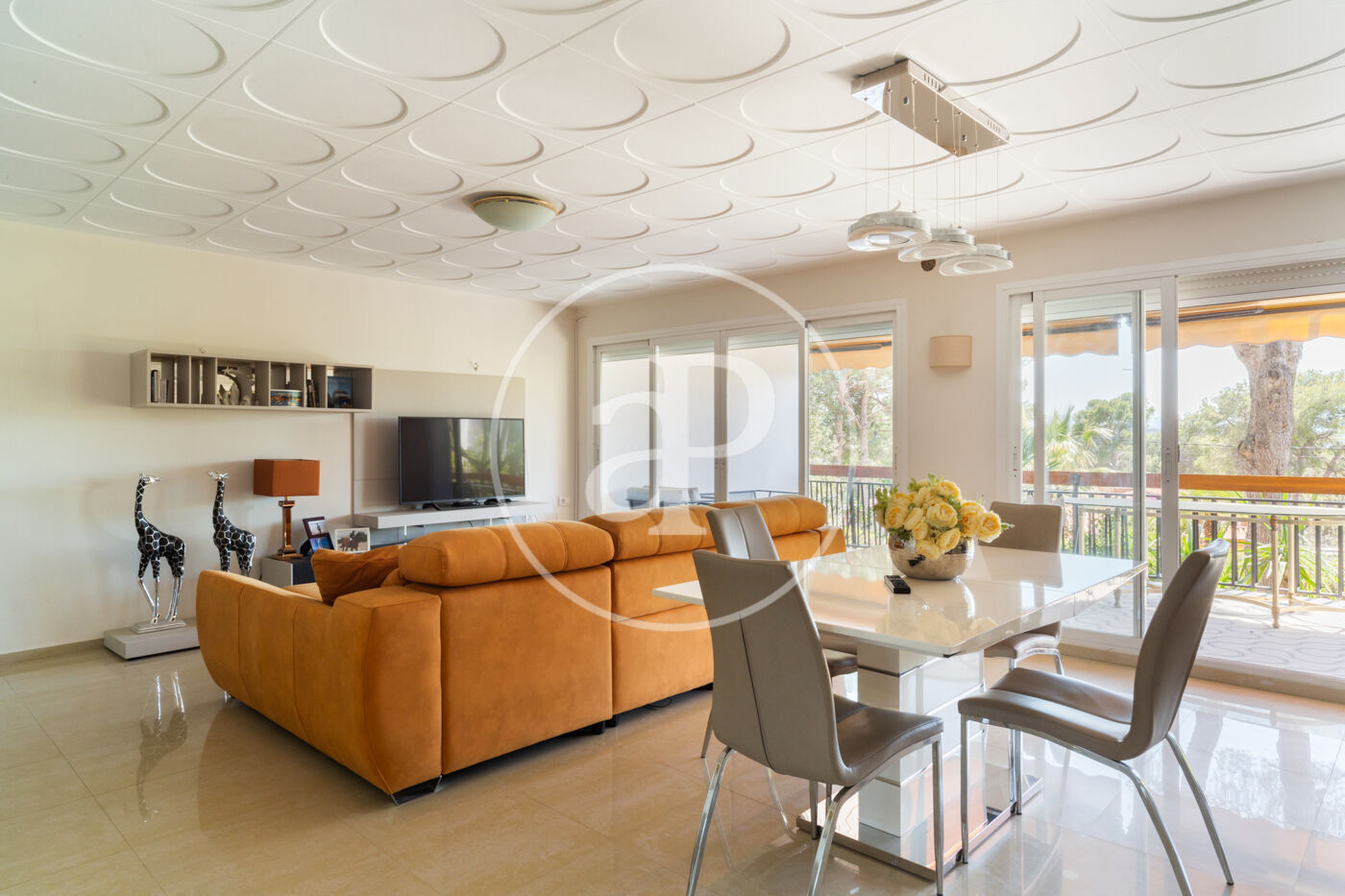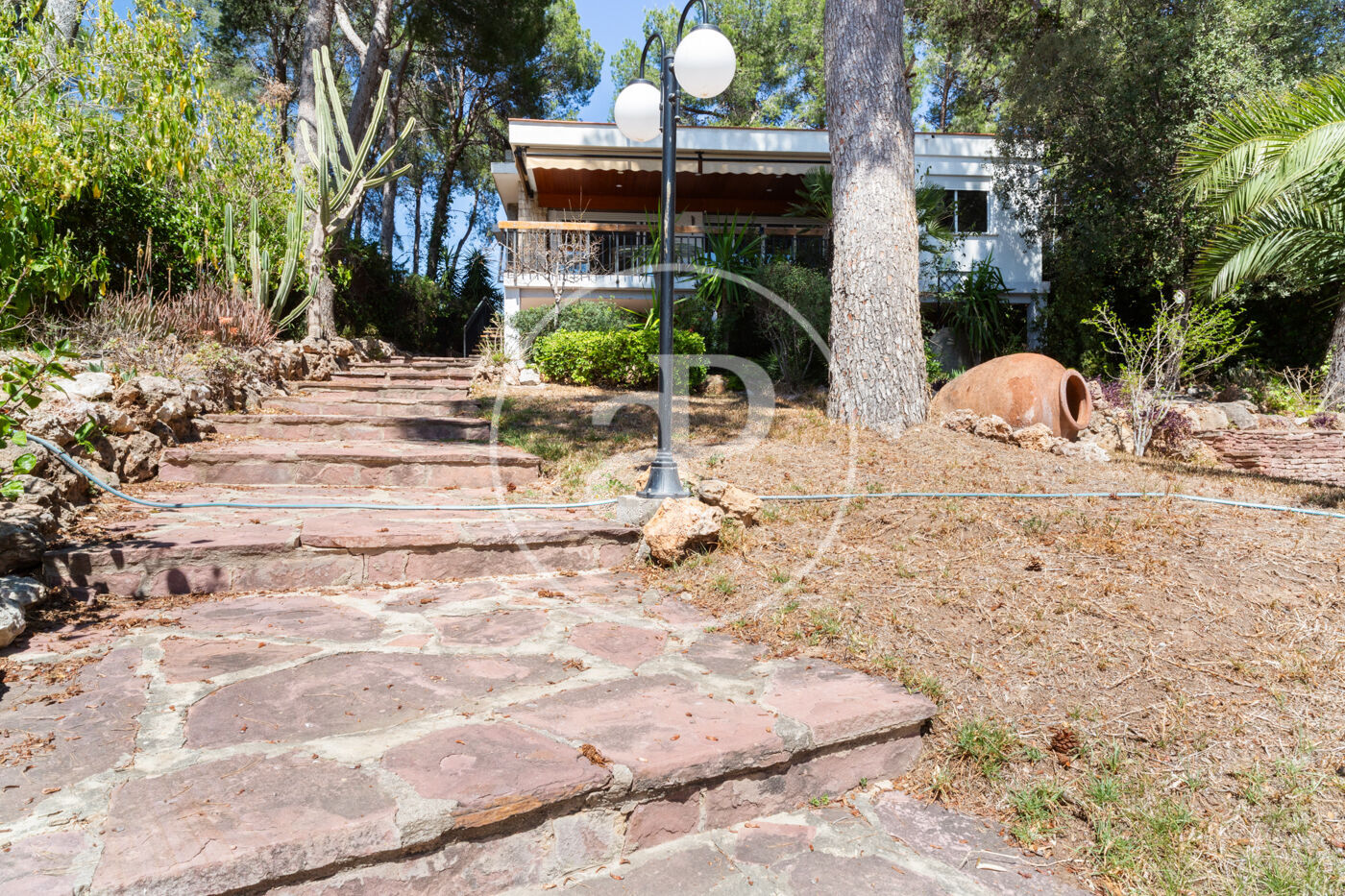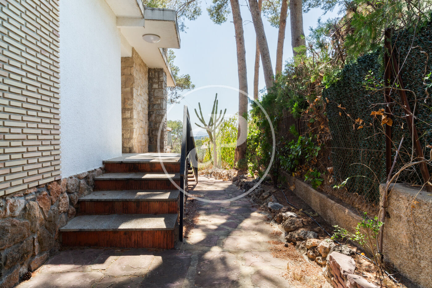 Esta vivienda de inmejorable ubicación está construida sobre una maravillosa parcela de orientación perfecta. La vivienda está muy cuidada y en muy buen estado. Al entrar nos encontramos con un salón diáfano con grandes ventanales de suelo a techo que dan salida directa a una gran terraza cubierta, con techo de madera, toldos y espectaculares vistas, dispone de una chimenea muy especial construida sobre una pared forrada en piedra natural que aporta carácter y personalidad a este espacio realmente acogedor, zona de relax y comedor conviven, cabe destacar la generosa luz que tiene este espacio.