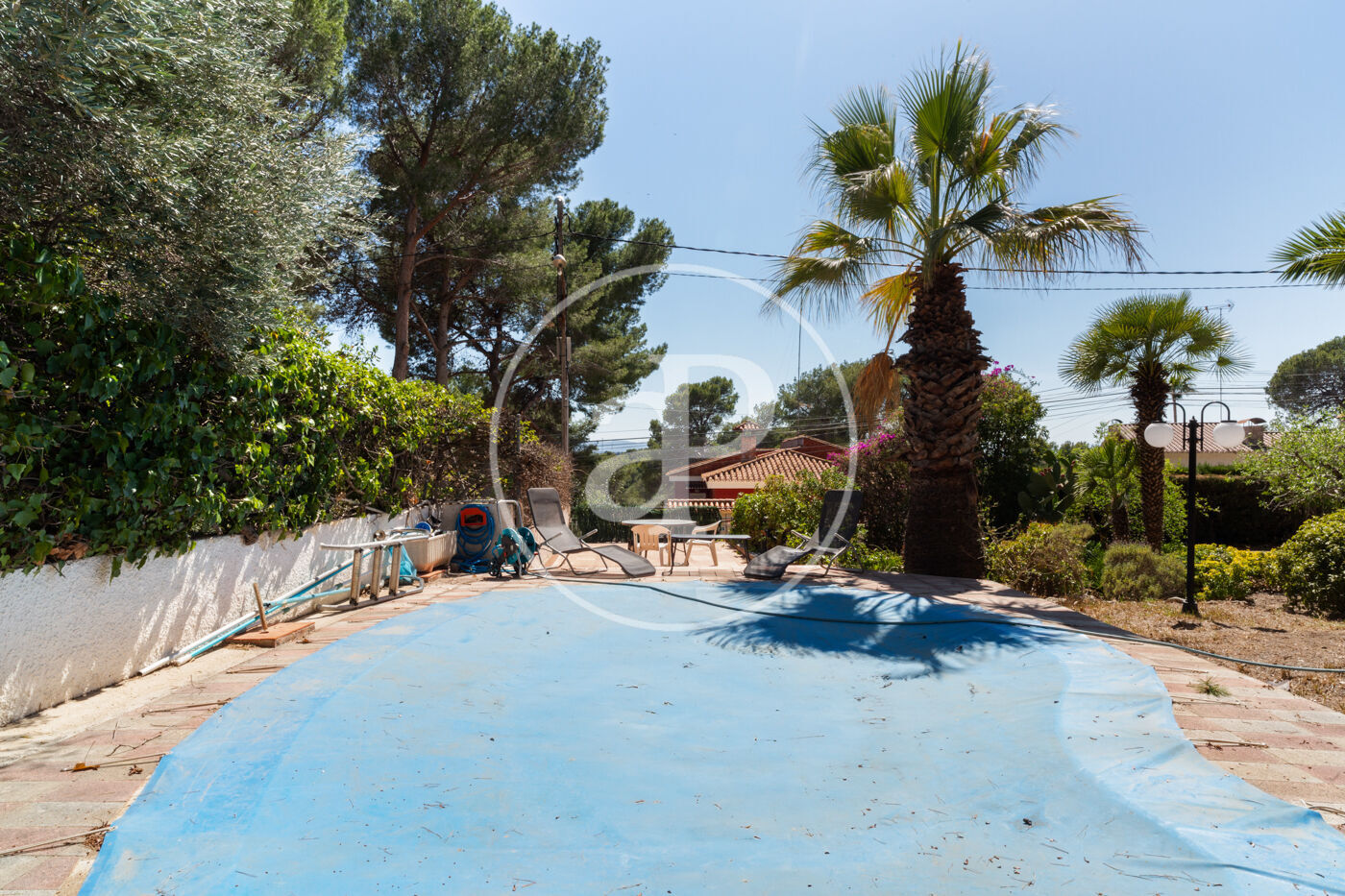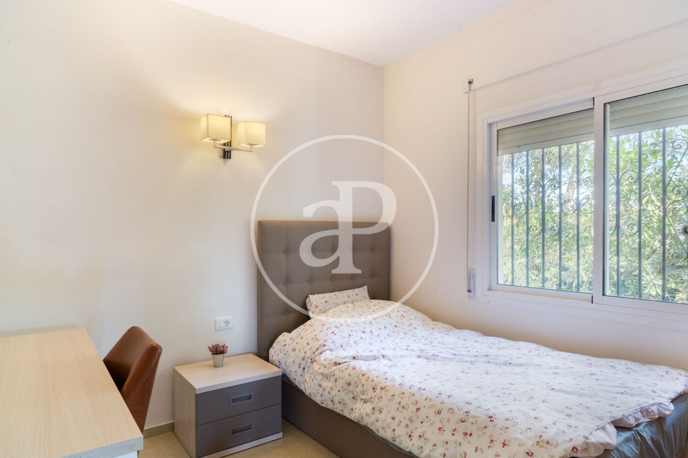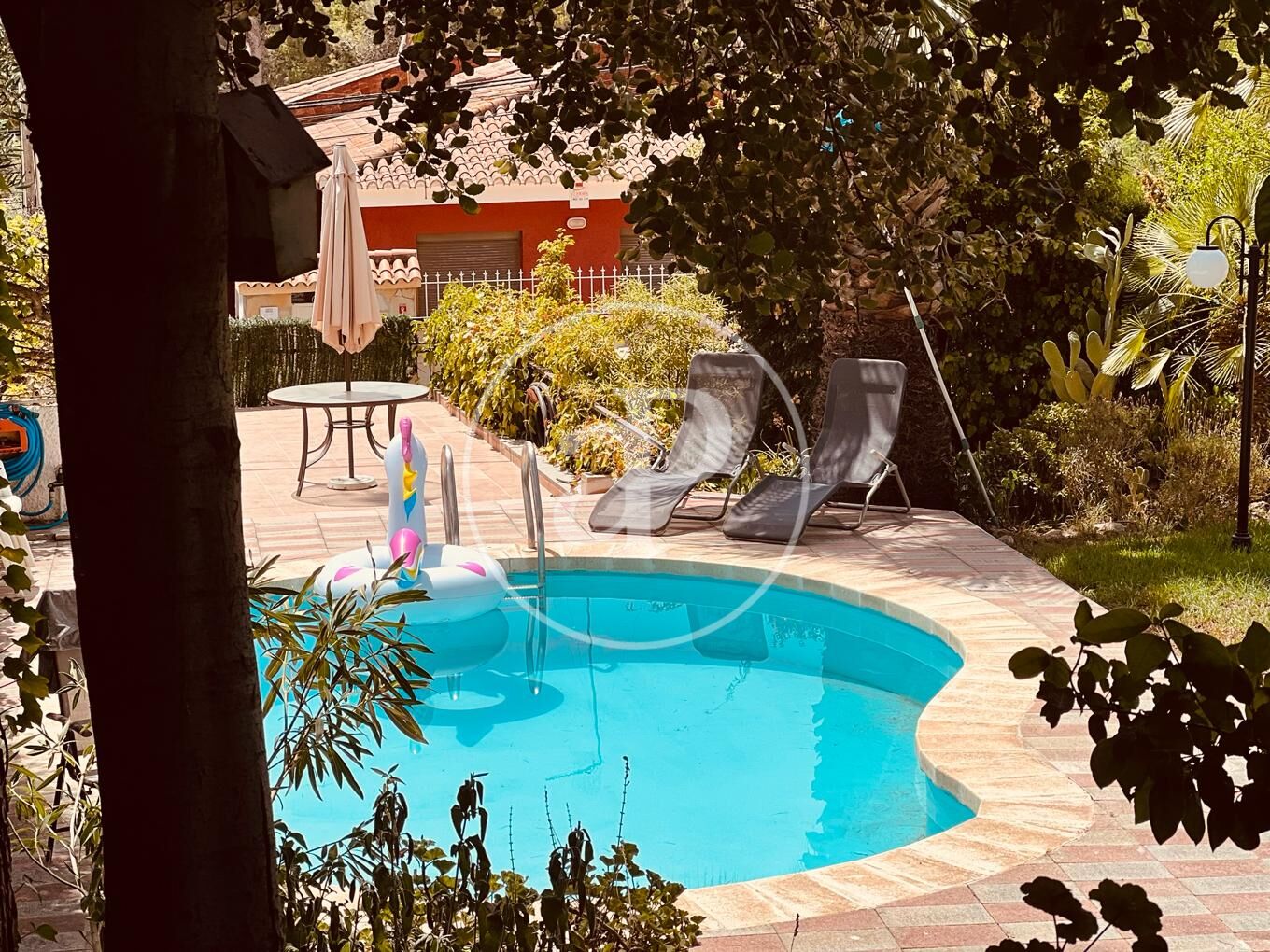 En una de las mejores y más demandadas zonas residenciales de Valencia, a sólo 10 minutos en coche de la ciudad y del aeropuerto, con toda clase de servicios y muy bien comunicada por autopista y bypass, encontramos este magnífico chalet independiente. Sobre una parcela de casi 1200 m2 encontramos este sensacional chalet unifamiliar con una superficie construida de 608 m2, en dos plantas, y un espacioso sótano/garaje. En la planta baja se ubica toda la zona de día con un espectacular y amplio salón iluminado por un gran ventanal  con vistas al  jardín y a la piscina y acceso  directo a una gran terraza cubierta. En esta planta se encuentra también una cocina office perfectamente integrada la cual da acceso directo al jardín y a una terraza. En esta plata existe un baño completo y lavandería, así como un dormitorio, una sala de estar y un segundo espacioso salón con grandes ventanales y vistas al jardín,que actualmente cumple las funciones de sala de proyección de cine. El jardín está perfectamente consolidado con árboles y plantas en el que se ubica una estupenda piscina con cascada y una espectacular iluminación de noche. Además, el agua de la piscina se puede climatizar en invierno. También barbacoa-paellero cubierto y aseo de cortesía para uso en el jardín.  La primera planta tiene, 3 dormitorios dobles con armarios empotrados. El dormitorio principal cuenta con  vestidor propio y un baño en suite. Un segundo baño completo con ducha da servicio a las otras habitaciones La vivienda cuenta con aire acondicionado, gas natural y una doble red de agua para riego y consumo. La propiedad fue construida en el año 2006  con materiales de primerísima calidad y no requiere ninguna actualización. Campolivar goza de la proximidad a Valencia así como a una reconocida zona de ocio para familias y jóvenes, con cines, restaurantes, gimnasio, supermercado de calidad, etc. En definitiva, todo lo imprescindible para una vida acomodada.