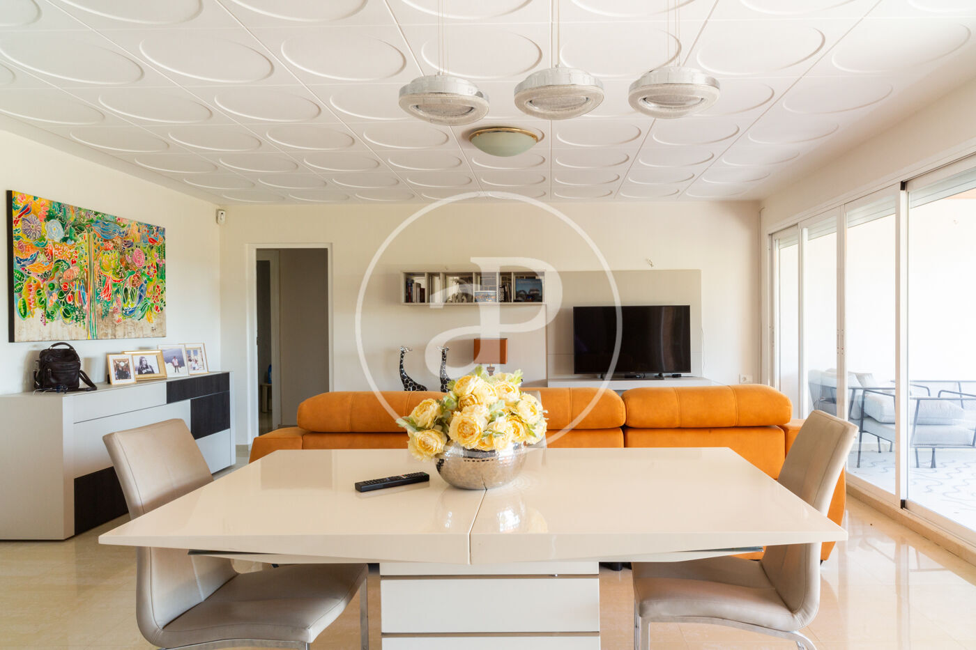 Impecable chalet pareado de líneas rectas con parcela de 350m2 y piscina comunitaria. La vivienda consta de 240m2 y una distribución excelente dividida en tres plantas. La planta principal ubica un amplio salón comedor con salida a gran terraza con jardín y disfruta de muchísima luz gracias a sus extensos ventanales. Cuenta con una moderna cocina con isla y zona office con espacio suficiente para ubicar una mesa de uso diario y salida, igualmente, a la zona exterior de jardín y terraza. La cocina se encuentra separada del salón por un vidrio que deja pasar la luz y contribuye a que no se pierda la continuidad visual de este espacio. Un aseo de cortesía ofrece servicio a esta zona de día. En la primera planta encontramos tres espaciosas habitaciones, dos de ellas con terrazas y con un cuarto de baño completo. La habitación principal dispone de su propio cuarto de baño en suite y destaca por su amplitud y luminosidad. Todas las estancias disfrutan de armarios empotrados vestidos. En una planta superior encontramos, además, dos grandes terrazas solárium con múltiples posibilidades. La planta semi-sótano dispone de luz y perfecta ventilación gracias a sus ventanas y en ella se ubica una gran estancia destinada actualmente a sala multi-juegos, además de otra habitación con cuarto de baño en suite perfecta para invitados o servicio interno. La propiedad cuenta también con una habitación-trastero en este nivel y de garaje para dos vehículos. Destaca la amplitud de su zona exterior con gran terraza y césped artificial, sus carpinterías metálicas oscilobatientes de suelo a techo en PVC, el suelo de parquet o el aire acondicionado por conductos. La propiedad se encuentra en un estado impecable y se caracteriza por su luminosidad y por sus acabados de gran calidad llevados a cabo con mucho gusto. Estamos ante una opción perfecta para quienes busquen una vivienda muy próxima a Valencia, moderna, amplia, confortable y lista para entrar a vivir. Este residencial, compuesto por 10 viviendas, dispone también de una excelente piscina comunitaria a la que se accede directamente desde el jardín y se encuentra  ubicado a tan sólo 10 minutos de Valencia. Además, la Urbanización Campolivar dispone de todo tipo de servicios como centro comercial y de ocio, transporte público (parada de tranvía y autobús), farmacia y una amplia oferta escolar con colegios privados,  internacionales, concertados y públicos que hacen de esta zona un lugar ideal para residir. Si desea que le ampliemos cualquier información acerca de esta propiedad o desea realizar una visita, no dude en llamarnos, estaremos encantados de entenderle.