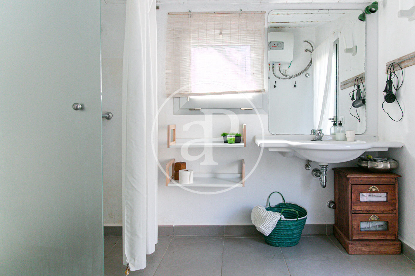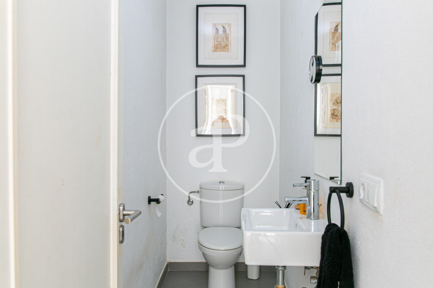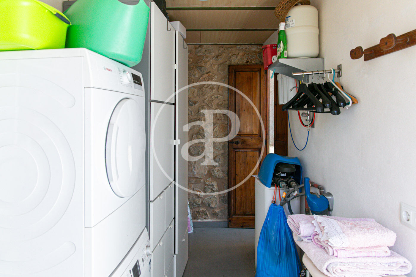 aProperties tiene el placer de presentarles esta espaciosa y luminosa casa a cuatro vientos en la privilegiada y exclusiva zona de Can Pallàs, orientada a sur, con un gran porche, extenso jardín, barbacoa y piscina con vistas despejadas al bosque, muy bien comunicada y a 5 minutos en coche de la estación de tren (FGC-Sant Quirze del Vallès). La casa, en muy buen estado, goza de una práctica distribución y todas sus estancias son exteriores y luminosas. En la planta baja encontramos la zona de día con un amplio recibidor y hall distribuidor interior de doble altura con techo acristalado, gran sala de estar, comedor, amplia cocina nueva de hace 2 años, baño, lavandería (anteriormente también habitación de servicio), garaje para 2 coches y estancia anexa ideal para trastero, taller o uso deseado. A destacar el delicioso porche de gran tamaño a modo de extensión de la a su vez gran y luminosa sala de estar y comedor. En la planta superior la zona de noche con su gran y completa suite, con bañera de hidromasaje y terraza propia, 4 habitaciones dobles (una de ellas actualmente despacho), baño, vestidor y sala de estar adicional, más íntima y recogida, como zona de descanso, lectura o de trabajo. En la planta inferior encontramos una gran zona de almacenaje y sala polivalente, ideal para gimnasio, y sauna. La casa dispone de aerotermia y placas solares fotovoltaicas instaladas en 2021. UBICACIÓN: Sant Quirze del Vallés, es una preciosa población tranquila con alto nivel de vida que se encuentra en el centro del Vallès Occidental y a tan sólo 25 Km de Barcelona. Cuenta con excelentes comunicaciones con las principales autopistas y carreteras y accesos inmejorables a Barcelona, Sant Cugat, Sabadell, Terrassa y alrededores. Su situación estratégica, permite gozar de sus parques y jardines y hacer largos paseos por la Serra de Galliners, disfrutando al máximo de la tranquilidad y naturaleza, disponiendo a la vez de comercios y servicios básicos, incluyendo parvulario, escuelas, centro médico, etc. a 10 minutos en coche de parques empresariales, hospitales, clubs de golf, universidades públicas y privadas de máximo prestigio internacional y grandes centros comerciales y excelente comunicación mediante autopista, Túneles de Vallvidrera o carretera con la capital catalana. ¿Se imagina vivir aquí? ¡No dude en ponerse en contacto con nosotros para agendar visita y recibir información más detallada sobre este inmueble!