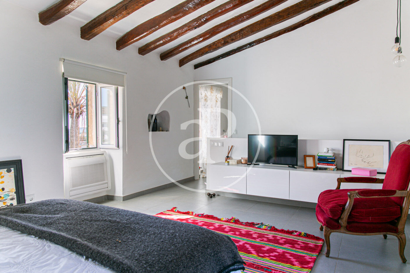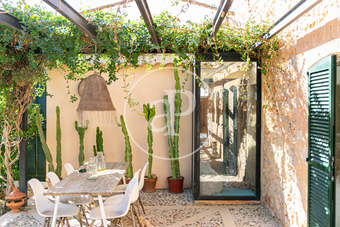 Situada en el pintoresco pueblo de Calvià, a sólo 25 minutos de Palma, esta propiedad ofrece un entorno de vida ideal para aquellos que buscan el encanto tradicional mallorquín. La casa principal tiene 1 dormitorio con baño en suite, con elementos rústicos como vigas vistas.