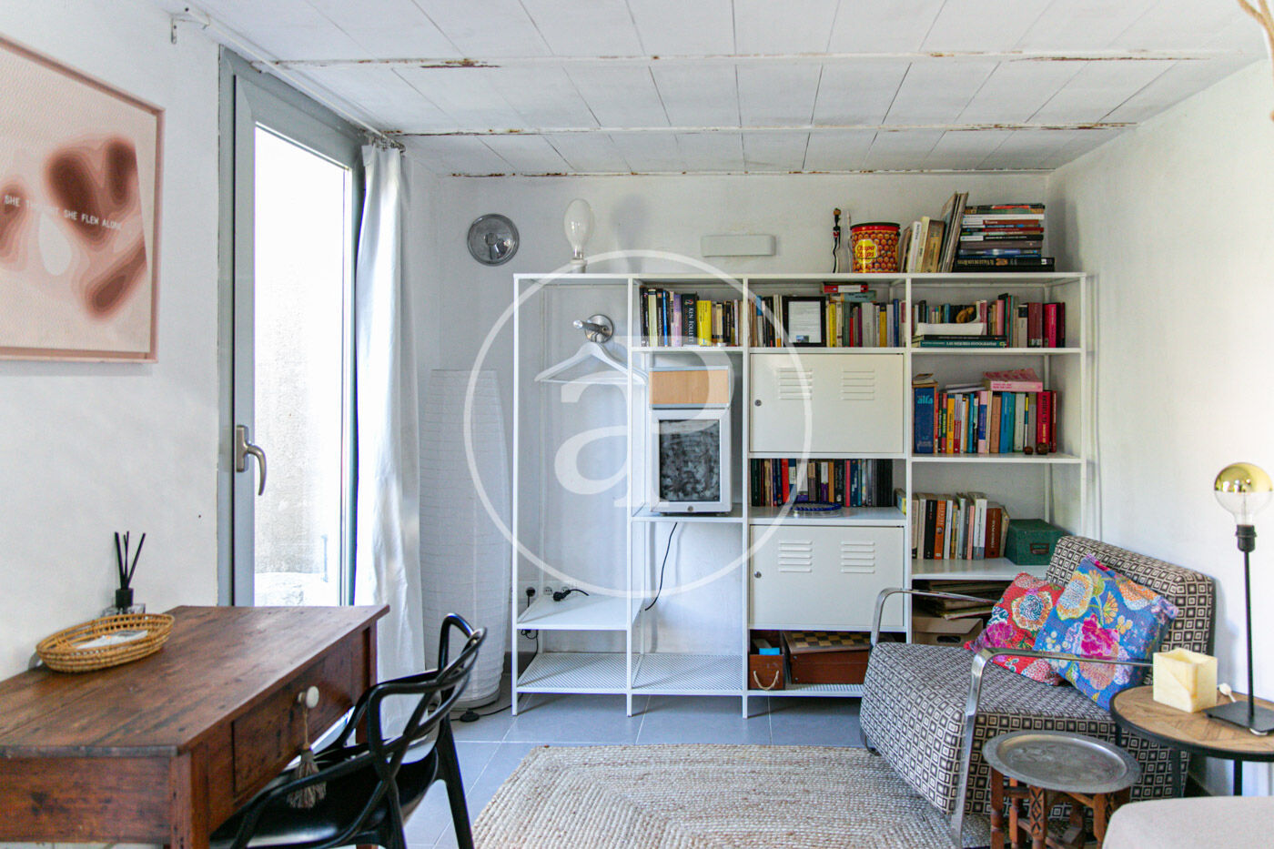 Una dependencia independiente con un dormitorio y un baño ofrece flexibilidad de uso, ideal para invitados o como espacio de trabajo privado.