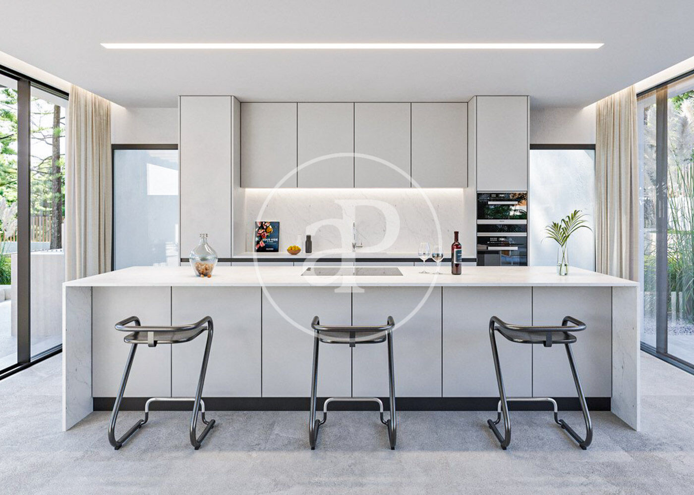 La villa cuenta con 5 dormitorios, cada uno con su propio baño en suite, un amplio salón con una cocina abierta de diseño moderno y un garaje subterráneo que puede albergar varios coches. El sótano es un espacio versátil que puede ser personalizado según tus necesidades, ya sea como una sala de fitness, bodega, sala polivalente, aseo de invitados, lavadero o trastero.