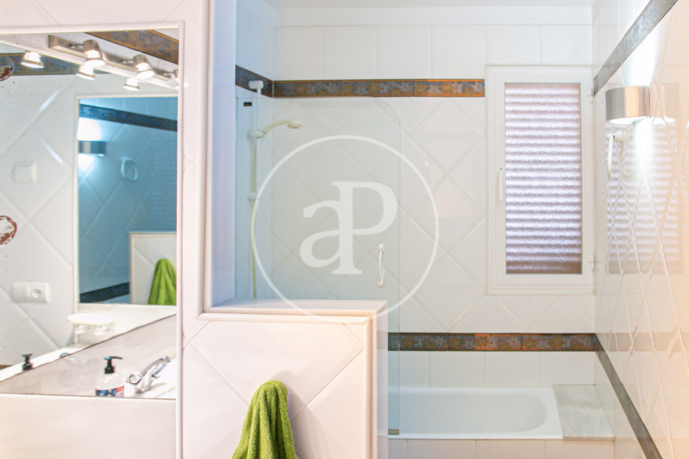 Esta lujosa propiedad a cuatro vientos está ubicada en un terreno de 840m2 en Vallvidrera parque natural y consta de una superficie útil de 672m2 con jardín. Solo a 20 minutos de la ciudad. Destaca por su diseño exclusivo, moderno y minimalista. Dispone de gran luminosidad y todas las habitaciones son exteriores. Podrá disfrutar de amplitud de espacios y esplendidas vistas y privacidad. Se distribuye en 3 plantas: PLANTA -1 – 183m2 – se ubican tres apartamentos independientes con habitación doble con bañera, ducha y cocina. Perfecta para ubicar servicio de seguridad, servicio o invitados. Con conexión interior al resto de la vivienda y entrada desde el exterior de la casa independiente. Sala de cine. PLANTA BAJA – 126m2 – encontramos el salón comedor de 80m2 con chimenea a gas, grandes ventanales, home cinema y vistas panorámicas donde disfrutar de las puestas de sol. La magnífica cocina abierta dispone de isla central, zona office, lavadero, barbacoa interior de leña y zona de servicio con acceso independiente y un aseo de cortesía. El jardín dispone de barbacoa exterior, piscina salina y terraza con comedor de verano. PLANTA 1 – 90m2 – cuenta con tres habitaciones dobles, con vestidor. Estas habitaciones comparten un gran baño con tres lavamanos, bañera, dos wc y ducha con iluminación a través de claraboya. Zona de gimnasio y solarium. PLANTA 2 – 80m2 – Se ubica la habitación principal con vestidor y baño con jacuzzi y salida a la terraza chill-out con vistas a la ciudad. También encontramos una segunda habitación perfecta para utilizar como despacho. Dispone de parking para 4 plazas. Trastero de 60m2, sala multiusos con pantalla de cine, discoteca y sala de juegos, con baño de cortesía. La Villa está equipada con calefacción a gas y suelos radiantes, aire acondicionado en todas las estancias, ascensor, suelos de parquet, internet por cable y wifi. Personal de servicio (jardinero/servicio), alarma y wifi no incluido en el coste de alquiler. Disponible LARGA ESTANCIA.* En cumplimiento de la Ley 12/2023 y la Llei 18/2007 informamos que:Este inmueble no tiene índice R.P.LL. Respecto a la presente propiedad no existe certificado informativo estatal de referencia de precios de alquilerRenta último contrato de arrendamiento: 20.000,00 €La presente propiedad tiene la consideración de suntuaria por razón de superficie y/o renta, y por ello de conformidad a la LAU no es de aplicación el índice estatal de referencia de precios de alquiler.