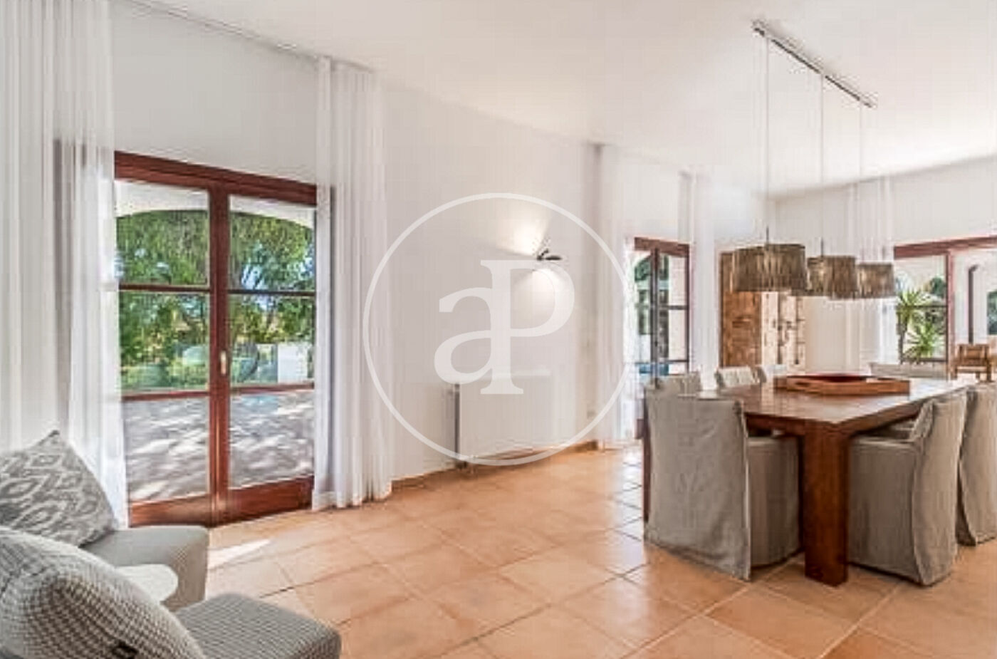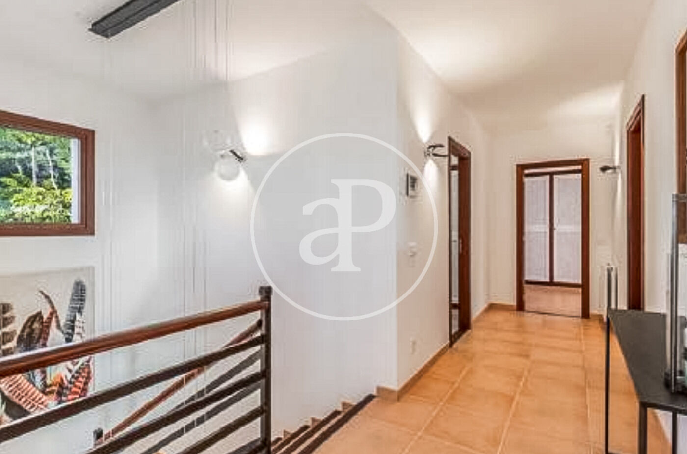Esta propiedad, recientemente renovada y con muebles nuevos, tiene una superficie útil de 475m². Se distribuye en una planta baja, una primera planta y cava garaje subterráneo.