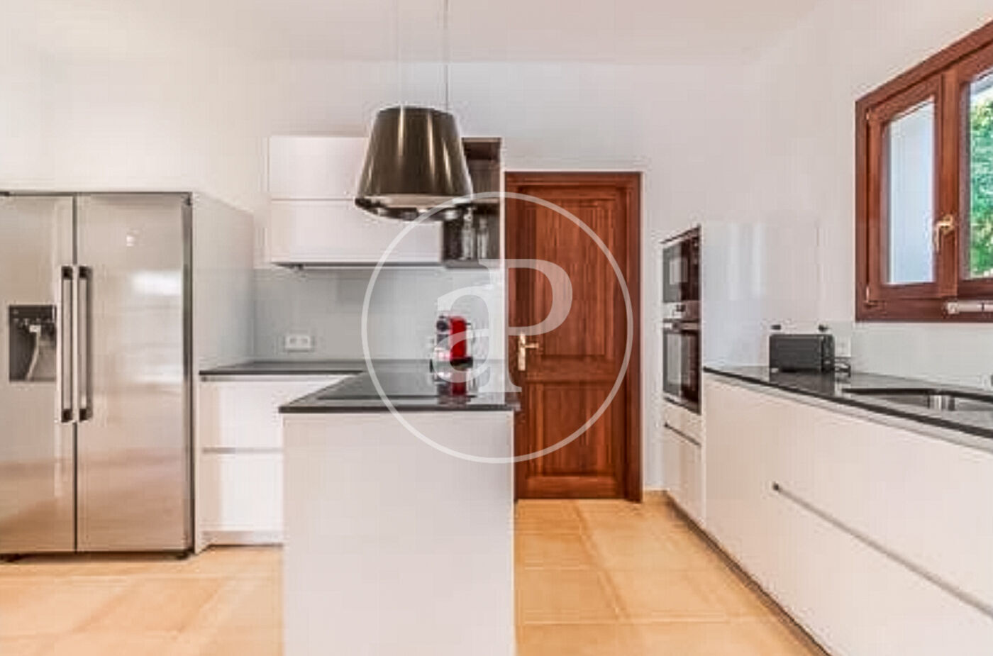 En la planta baja encontramos un salón con grandes ventanales y chimenea integrado al comedor, una cocina equipada con electrodomésticos de alta gama y trastero. Además, cuenta con vistas al jardín desde una terraza cubiertas, piscina y zona de barbacoa.