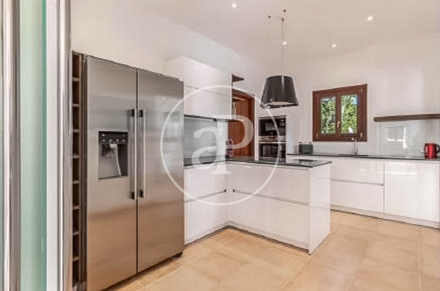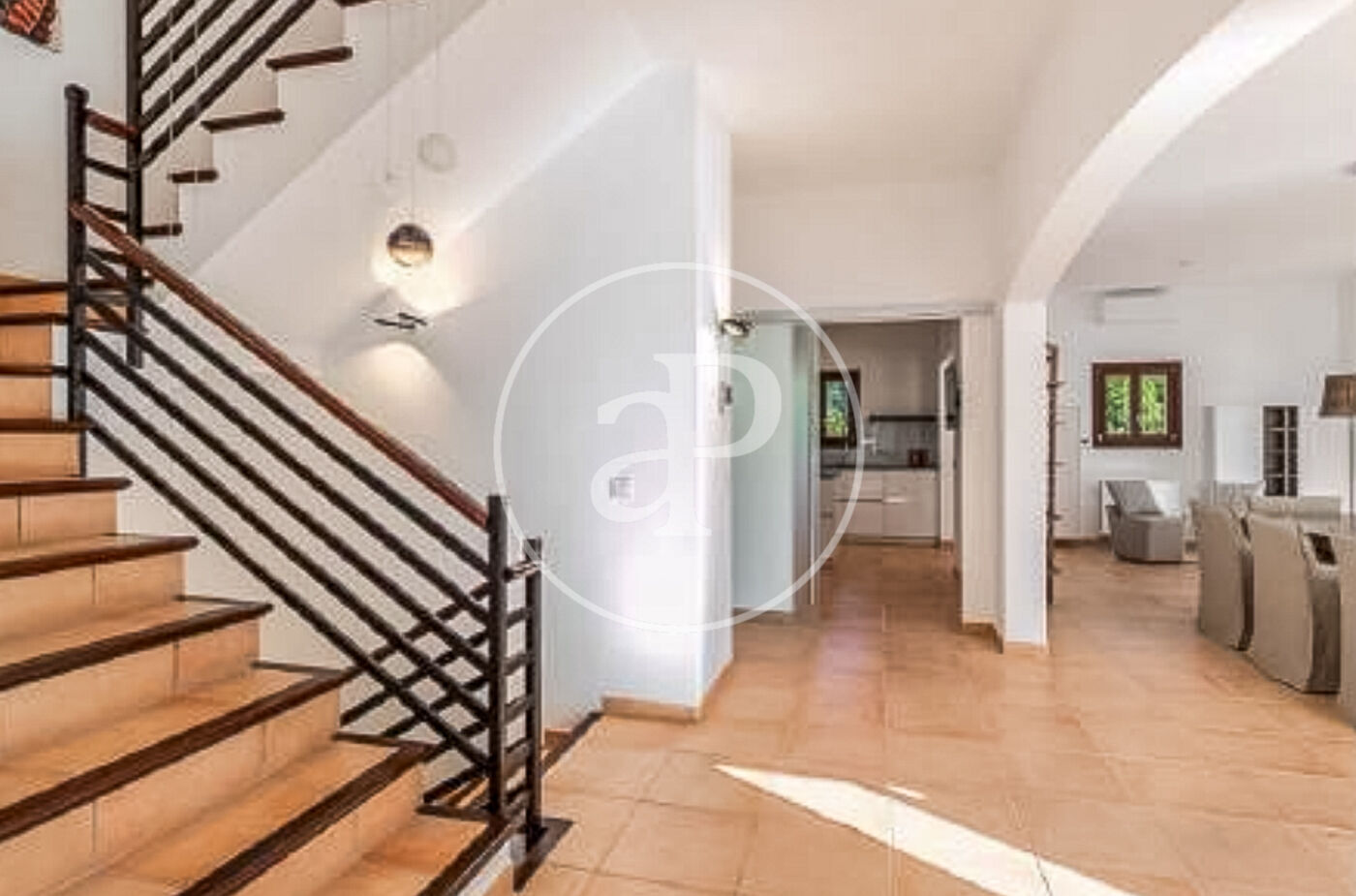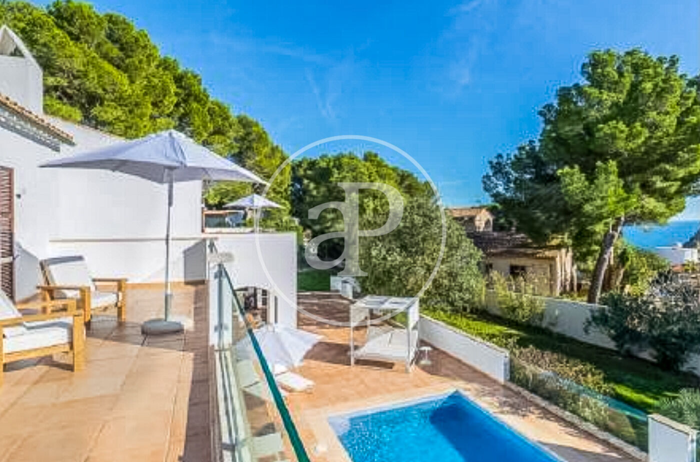 Estupenda villa modernista con vistas panorámicas y licencia vacacional en la exclusiva zona de Cala Provencals. Se encuentra muy cerca de la playa con vistas inmejorables al mar y a las montañas.