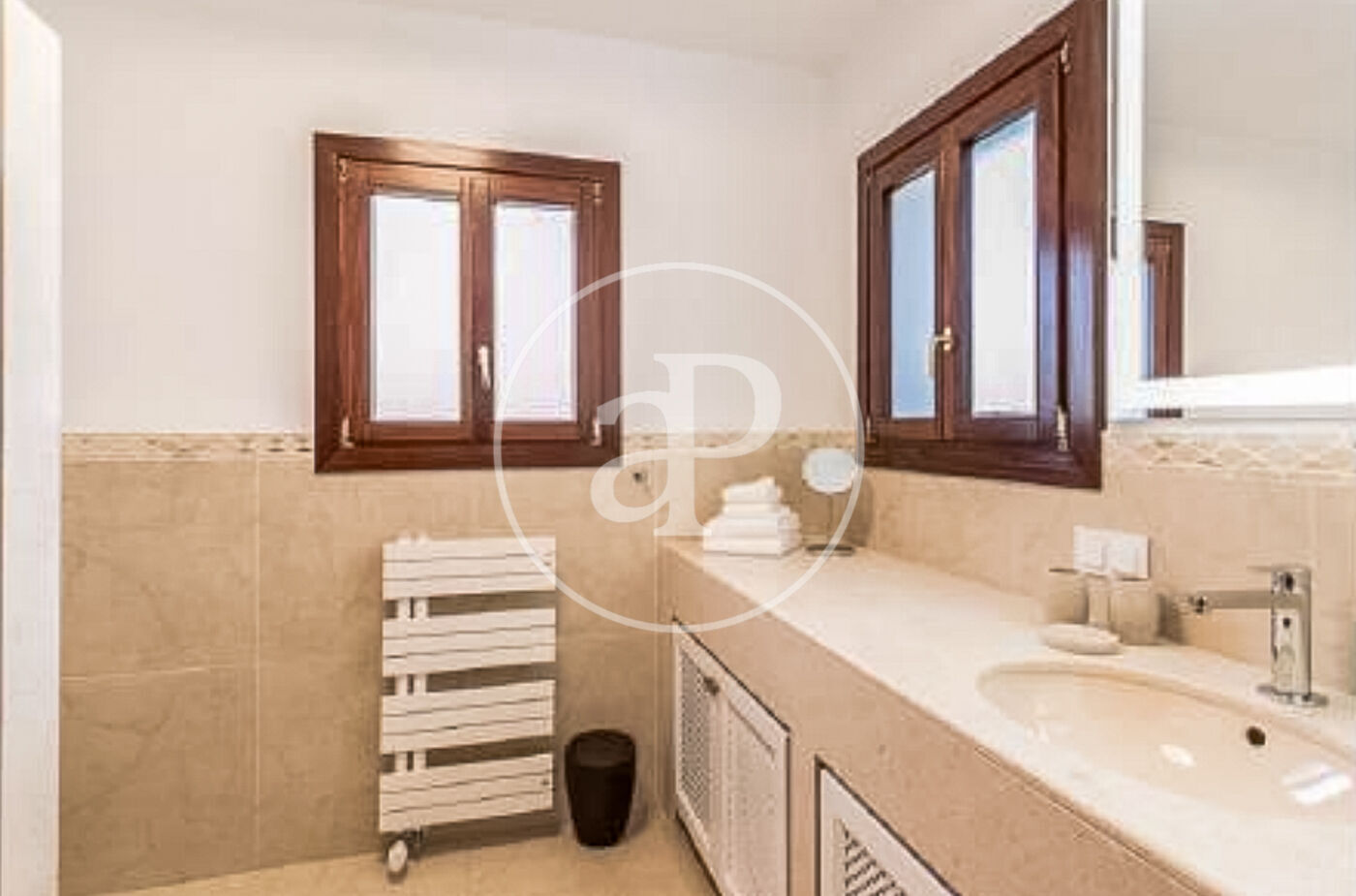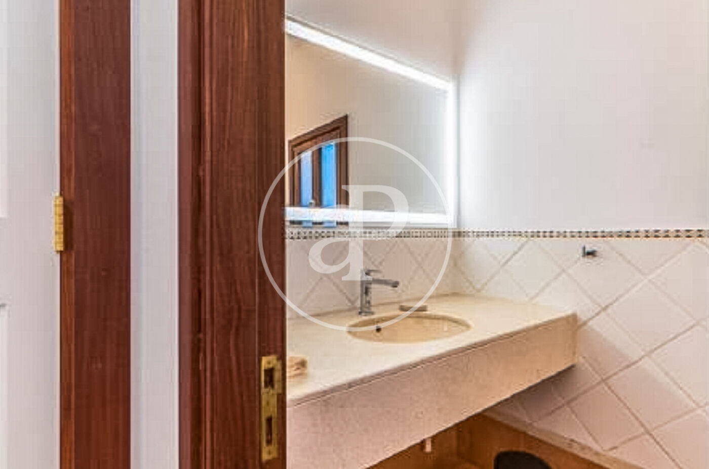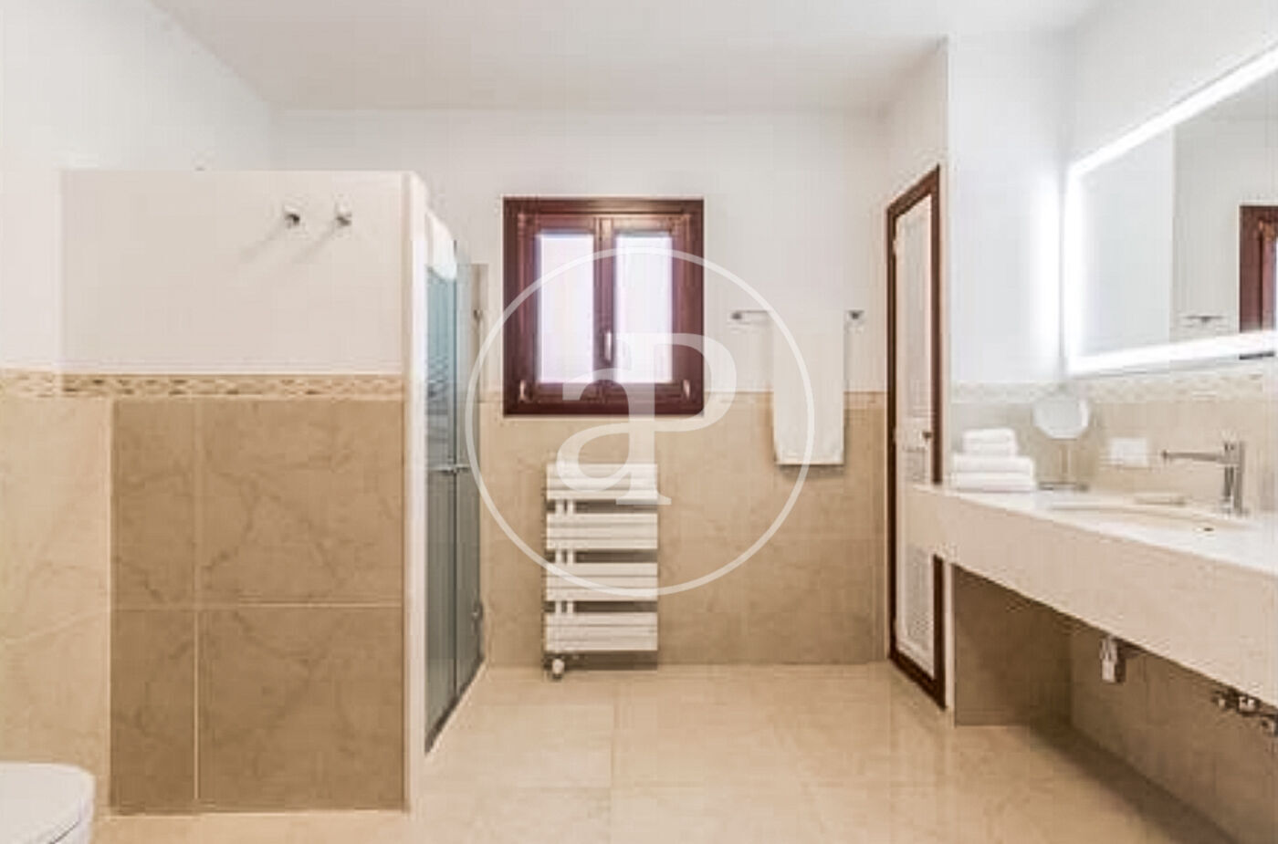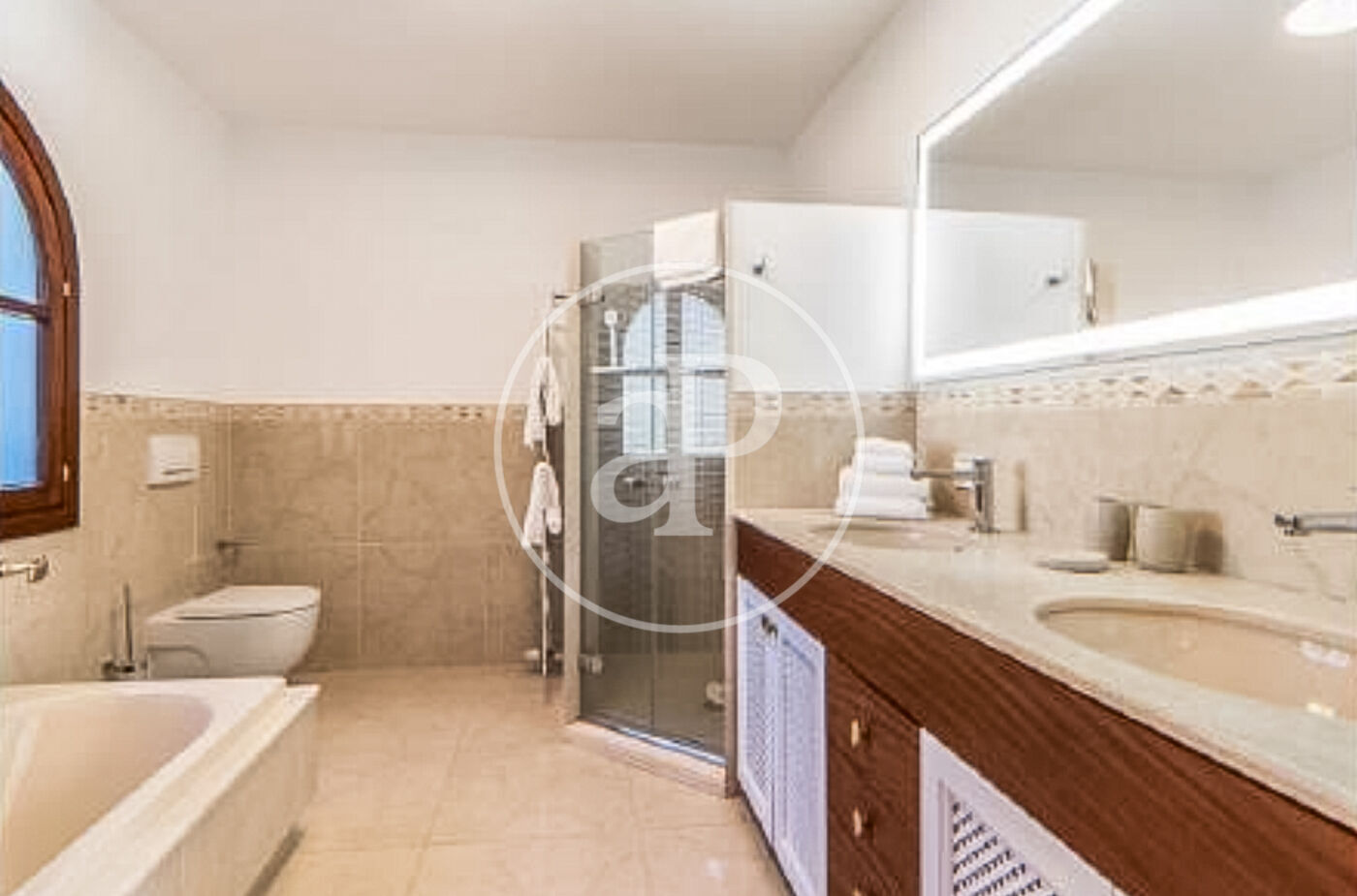 La vivienda cuenta con un garaje de grandes dimensiones para varios coches y con sistema de recarga eléctrica de última generación. También, tiene calefacción central por gas natural, suelo radiante en los baños, aire acondicionado, sistema de seguridad muy sofisticado con cámaras, puertas automáticas, SAT-TV y WLAN.