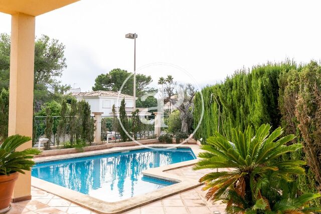 Exclusiva villa independiente con gran parcela de 3751m2 con vistas y 790m2 construidos distribuidos en dos plantas más la planta sótano. La construcción se reformó íntegramente en el año 2022 y se organiza alrededor de una preciosa terraza techada que aporta gran luminosidad. En la planta principal nos da la bienvenida un generoso recibidor con grandes ventanales que nos conducen a un gran salón comedor distribuido en tres ambientes, rodeado de ventanales y con chimenea. En esta misma planta encontramos un comedor independiente con salida a terraza techada y comunicado con la cocina por un práctico hueco pasaplatos. La cocina es muy espaciosa, luminosa y muy práctica, al contar con un espacio para mesa de uso diario, gran almacenaje y diferentes áreas de trabajo. En este mismo nivel se sitúa una habitación y un cuarto de baño completo con ducha, además de distintos huecos de armariada. En la planta superior se ubican cuatro dormitorios dobles, muy amplios, con armarios empotrados todos ellos y varios con salida a terraza, el principal con baño en suite y otro cuarto de baño con ducha y bañera. Todos los cuartos de baño han sido recientemente reformados con un estilo moderno (sanitarios suspendidos, cisterna y grifos empotrados) y materiales de gran diseño y calidad. La vivienda fue íntegramente reformada en el año 2022 (a excepción del garaje y una de las habitaciones), incluyendo todas las instalaciones de agua y calefacción (caldera nueva), cuartos de baños paredes y suelo. En la parte inferior se ubica el garaje y un gran espacio adicional, ambos, actualmente utilizados como almacén pudiendo recuperarse, parte como garaje y el resto destinarse a la construcción de otra vivienda. La parcela tiene una gran privacidad y un precioso jarín consolidado. La espectacular piscina cuenta con un sistema para nadar a contracorriente. La propiedad dispone de suelo de madera natural, placas solares de gran potencia, calefacción por gas natural,aire acondicionado, descalcificador y alarma. La vivienda se vende completamente amueblada (no incluidos cuadros y elementos decorativos) La exclusiva urbanización de El Bosque se encuentra a tan solo 20Km de Valencia y se enmarca en uno de los más reconocidos campos de golf de España. Cuenta con garita de acceso a la urbanización con control de acceso por reconocimiento de matrícula, conserjería y seguridad privada 24h, además de club de tenis, centro social, piscina olímpica y varias opciones de restauración. La Urbanización está catalogada como de interés paisajístico. Se trata de un entorno privilegiado y tranquilo, ideal para vivir todo el año, por su proximidad a la ciudad de Valencia Junto a la urbanización podemos encontrar supermercado, farmacia y un prestigioso colegio internacional. Una apuesta infalible para quienes buscan una vivienda exclusiva en un entorno natural y seguro a poca distancia de la ciudad.  Si desea que le ampliemos cualquier información acerca de esta propiedad o desea realizar una visita, no dude en llamarnos, estaremos encantados de atenderle.