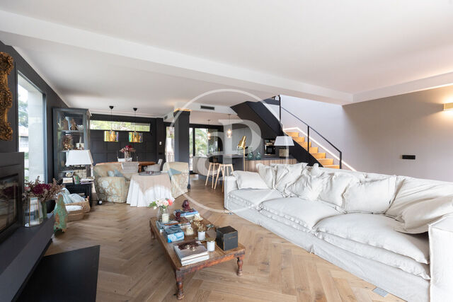 aProperties presenta en exclusiva preciosa unifamiliar a  cuatro vientos con jardín y piscina privada. Ubicada en la zona más exclusiva y tranquila de Sant Cugat, concretamente, en El Golf-Can Trabal. Una zona residencial que goza de la máxima tranquilidad, muy cercano al Parque Natural de Collserola con infinitud de caminos de montana para caminantes y ciclistas. Además, la vivienda se sitúa cerca de paradas de autobús, estación de FFCC, clubs deportivos, colegios, hípicas y del centro de la ciudad. Proximidad a infinitud de servicios, comercios y servicios médicos a escasos minutos. La vivienda se distribuye en tres plantas, comunicadas entre sí por ascensor. Dispone de muchísima luz gracias a su orientación sur y enormes ventanales que caracterizan a toda la casa. En la planta principal, encontramos un amplio hall de entrada que organiza armónicamente los distintos ambientes. Por el centro empieza con el salón-comedor con  chimenea de diseño y  acceso mediante grandes puertas acristaladas a la zona de porche, jardín y piscina. Este salón conecta por un lado con un despacho-estudio, muy comodo y agradable para el trabajo en casa. Y por el otro, se integra a una cocina semi abierta muy espaciosa que tambíen tiene salida  directa al comedor de verano, jardín y  piscina. En esta area, cuenta también con un aseo de cortesía. En la primera planta,  encontramos dos habitaciones amplias que comparten baño completo, una habitación suite y una máster suite con vestidor integrado. Todas las habitaciones conectan  a una gran terraza con preciosas y despejadas vistas. En la planta semisótano, encontramos dos habitaciones con un baño completo (una de ellas ambientada como living),  sala ginmasio,  cuarto de lavado y plancha y un amplio garaje para cinco vehículos, bicis o  motocicletas. La vivienda tiene excelentes calidades de construcción, instalaciones y acabados. Todos los espacios aportan comodidad con mobiliario cuidadosamente diseñado e integrado para proveer de muchas capacidad de almacenaje.  Carpintería de madera con doble acristalamiento, calefacción por suelo radiante, aire acondicionado por conductos bomba frío/calor, ascensor, persianas eléctricas, y vigilancia privada en la zona.  Se alquila totalmente amueblada y equipada. Su decoración cálida y amable invita a disfrutar del hogar en familia.  No dude en contactar con el equipo experto de aProperties Real Estate.* En cumplimiento de la Ley 12/2023 y la Llei 18/2007 informamos que:Índice de R.P.LL: 19,00 € / m2 Respecto a la presente propiedad no existe certificado informativo estatal de referencia de precios de alquilerLa presente propiedad tiene la consideración de suntuaria por razón de superficie y/o renta, y por ello de conformidad a la LAU no es de aplicación el índice estatal de referencia de precios de alquiler.