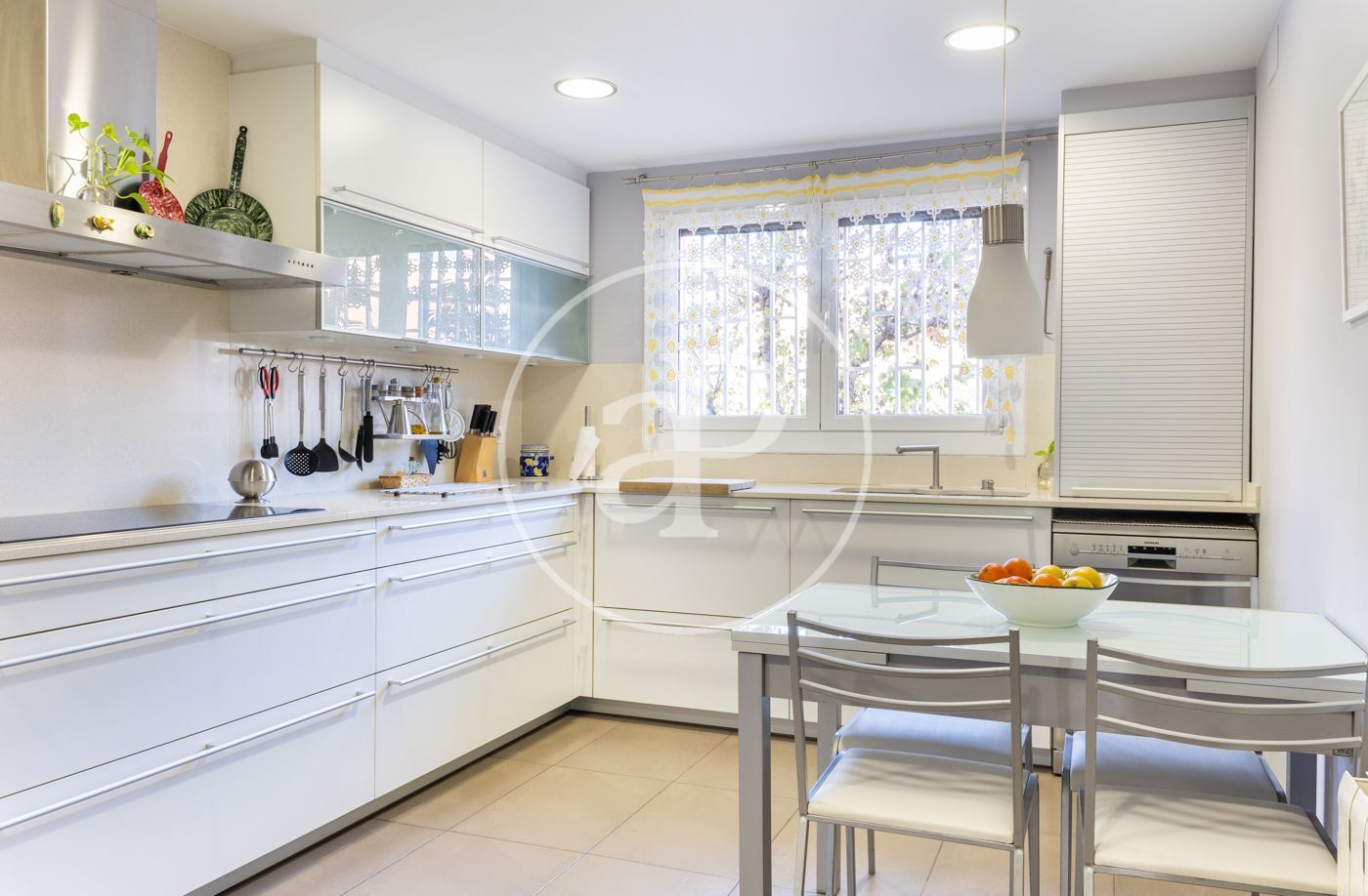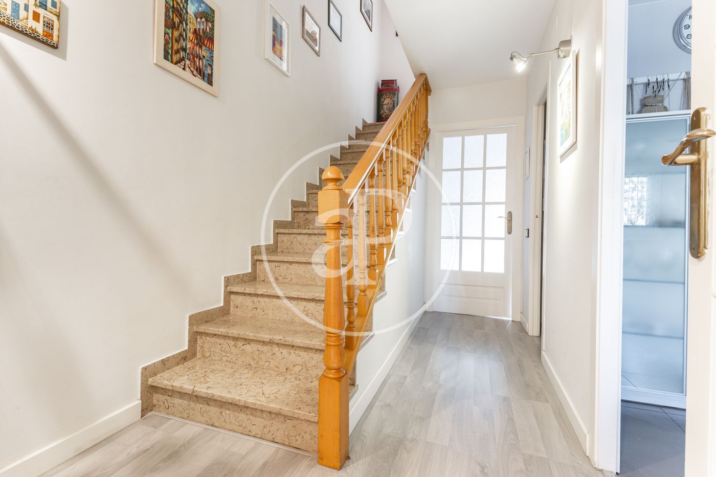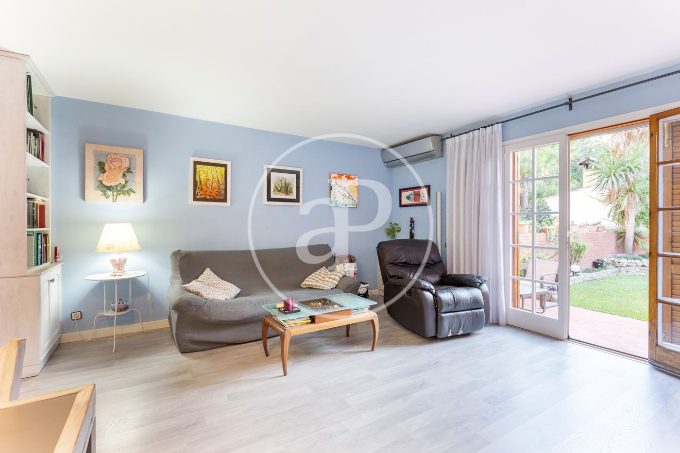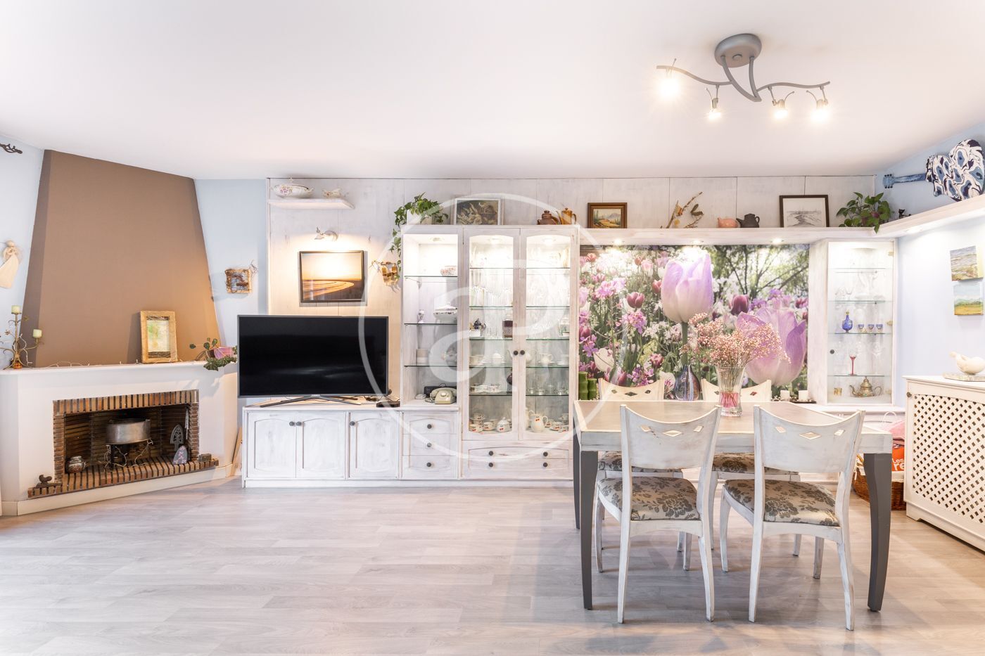 Distribuida en tres plantas, en la planta principal encontramos un amplio salón comedor de 32m2 dispone de chimenea y salida directa a su preciso jardín de 60m2 con ORIENTACIÓN SUR. Amplia cocina office totalmente equipada con zona de lavandería independiente y un aseo de cortesía.