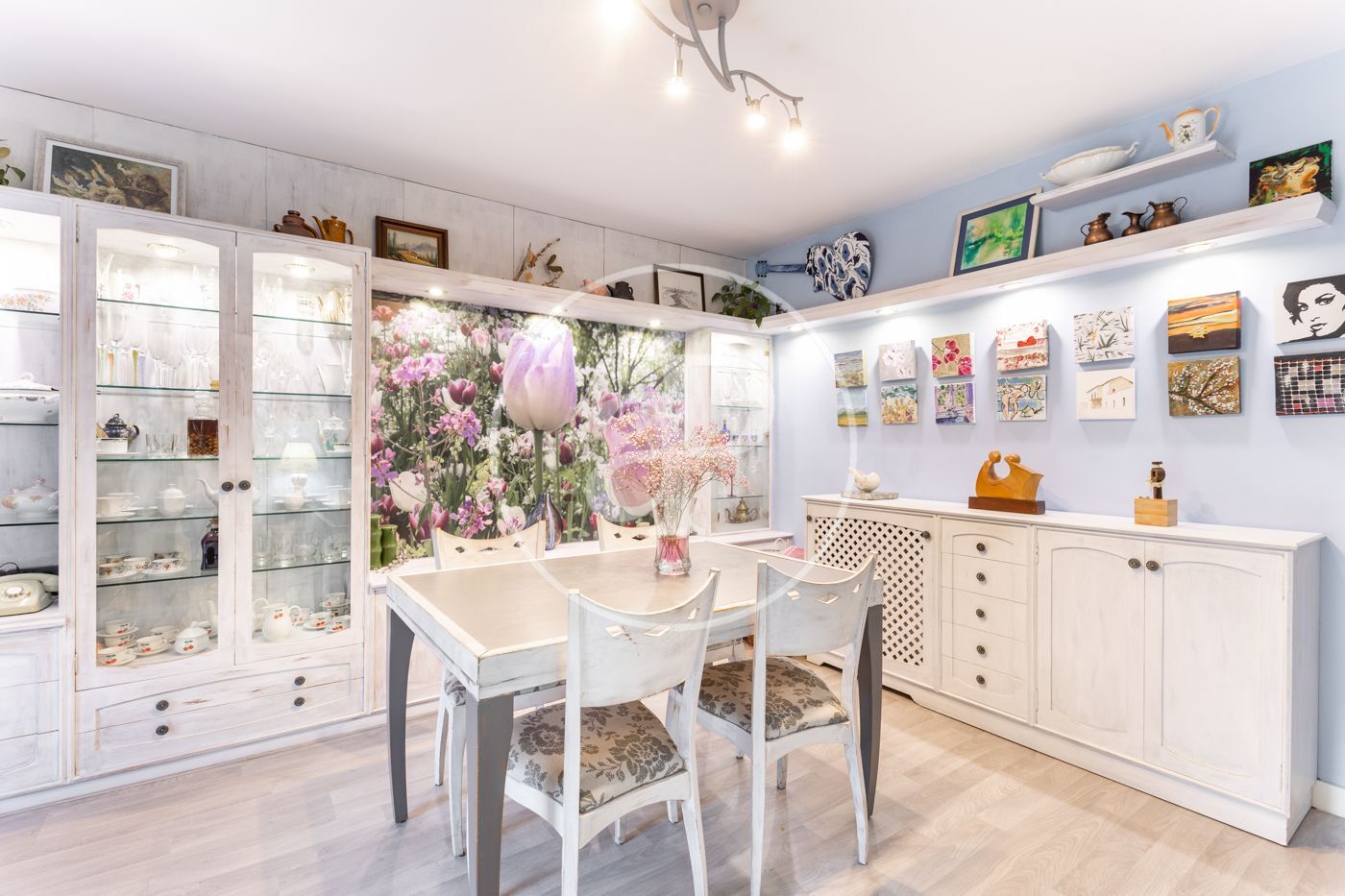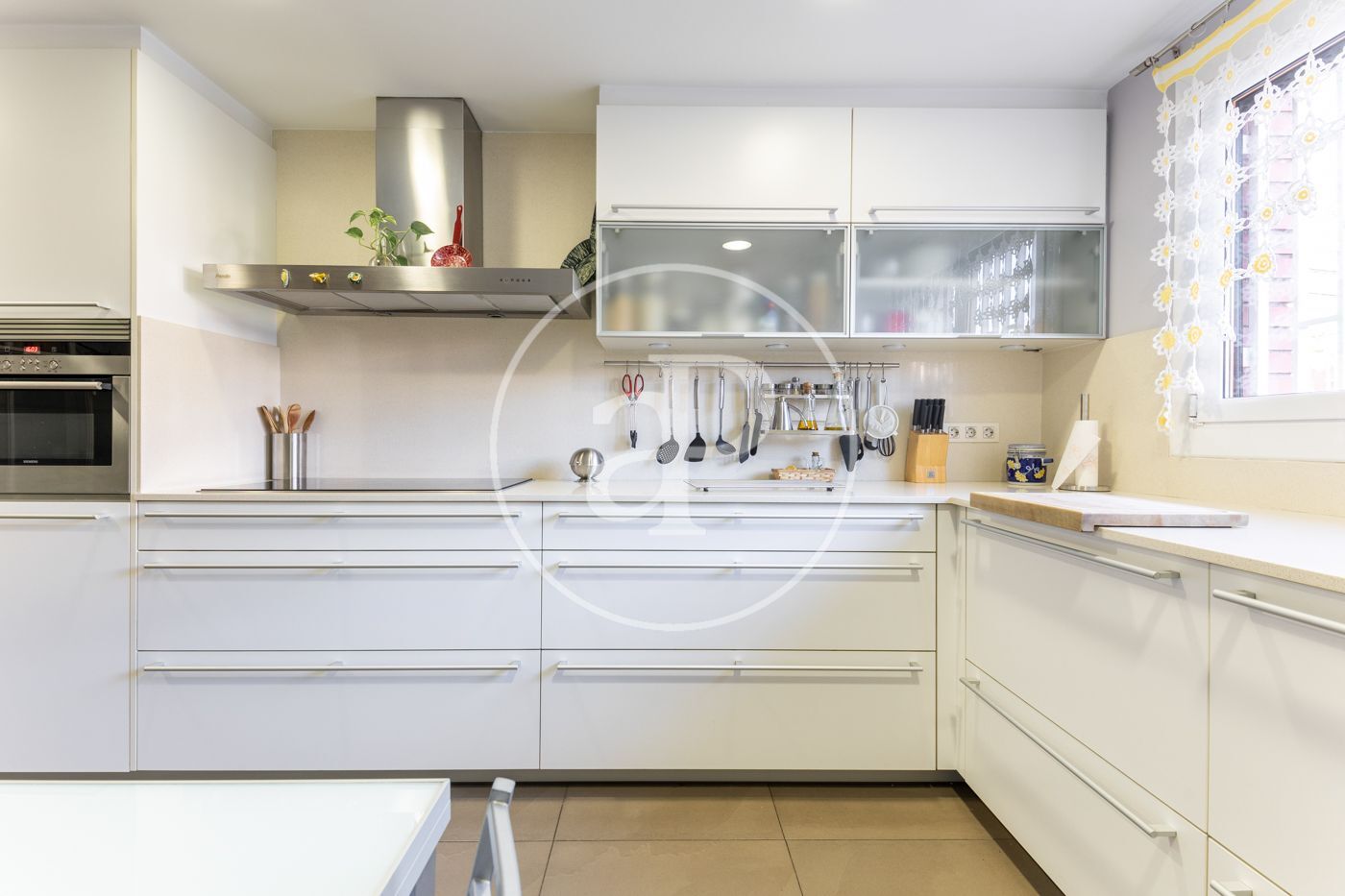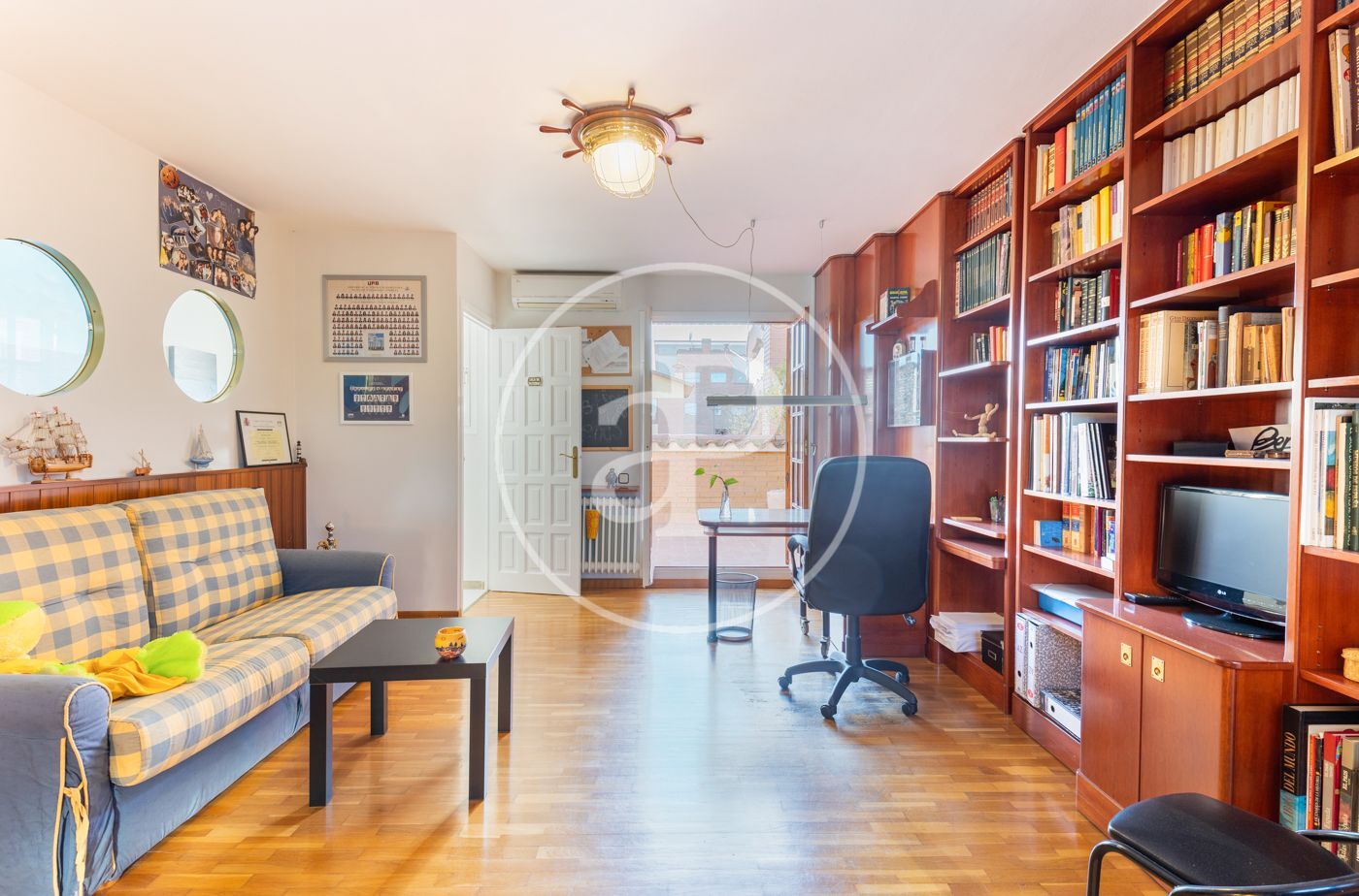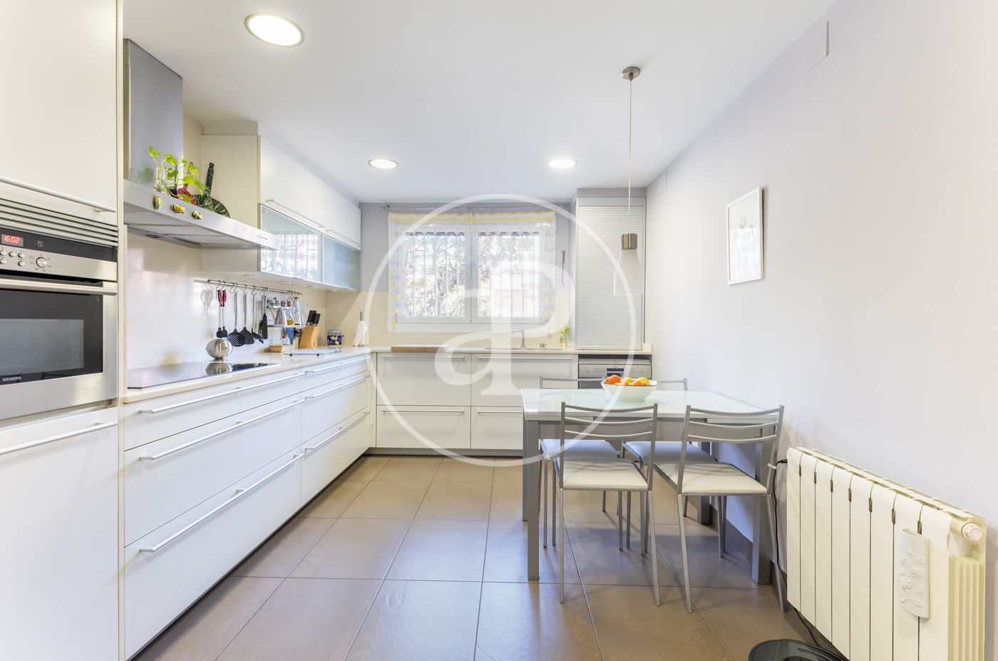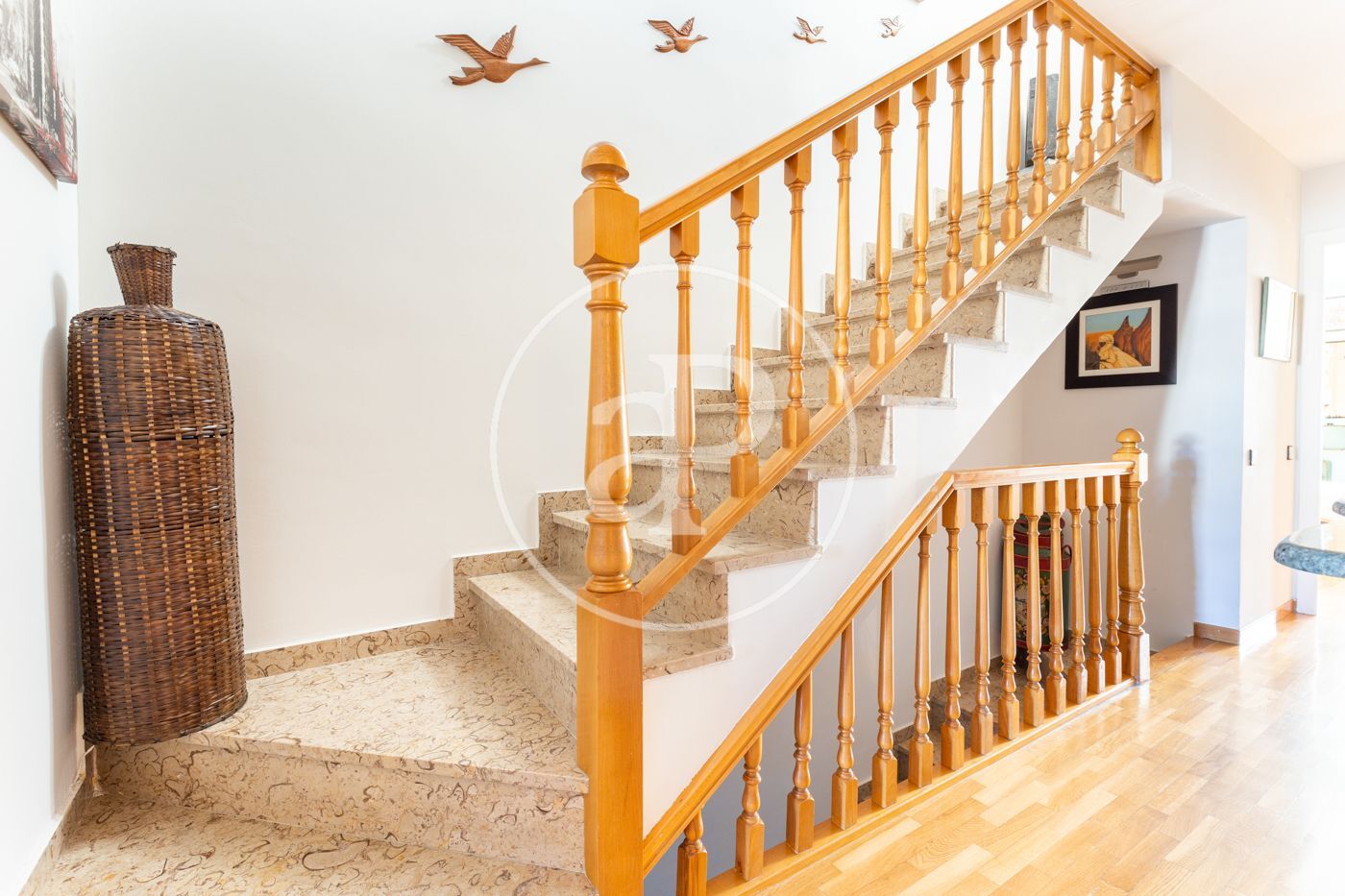 Distribuida en tres plantas, en la planta principal encontramos un amplio salón comedor de 32m2 dispone de chimenea y salida directa a su preciso jardín de 60m2 con ORIENTACIÓN SUR. Amplia cocina office totalmente equipada con zona de lavandería independiente y un aseo de cortesía.