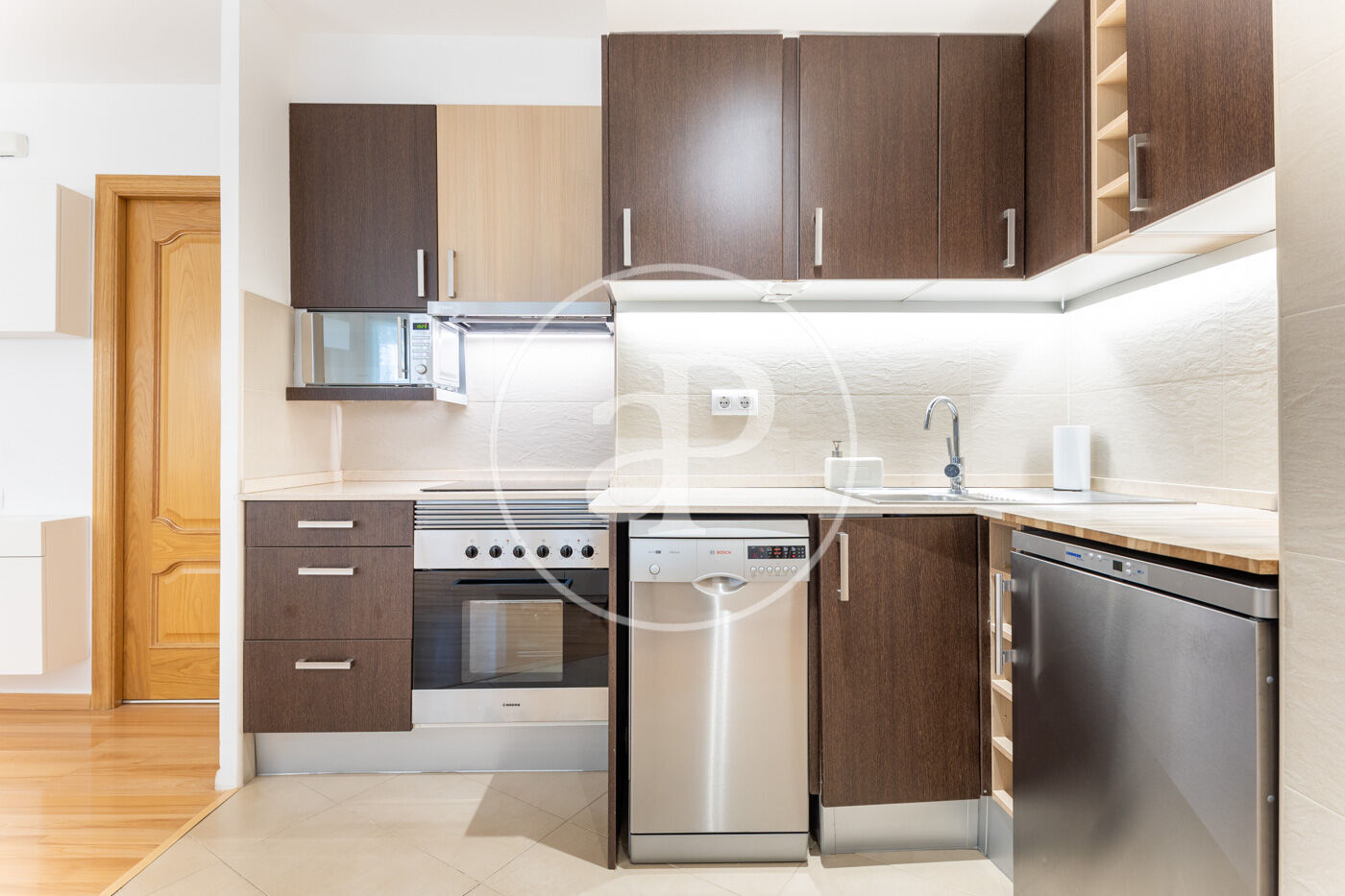 La zona de día consta de salón comedor con cocina abierta, baño completo y el lavadero. En la zona de noche hay tres habitaciones, una doble en suite y dos habitaciones individuales.