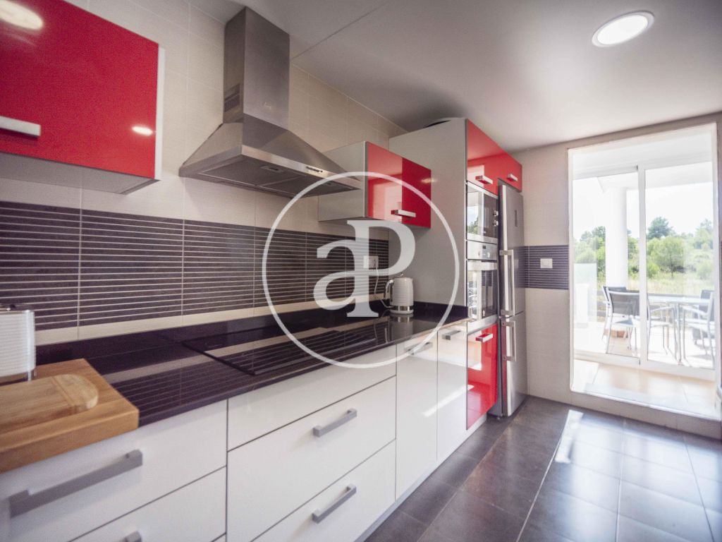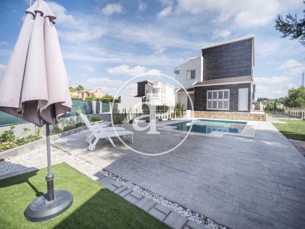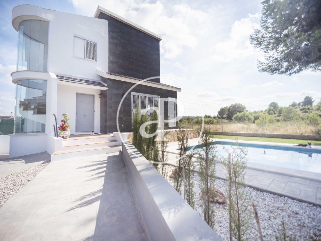 Se trata de una vivienda de arquitectura moderna y funcional que cuenta con aire acondicionado por conductos con máquina, la entrada consta de puerta de garaje manual con posibilidad de reconvertir en automática, amplios jardines de concepto moderno y una amplia piscina de reciente construcción, estancia abierta y cubierta a modo de paellero o barbacoa. Su orientación nordeste dan a esta propiedad mucha luminosidad y tranquilidad, bien comunicada y a pocos km del aeropuerto, el complejo consta de todos los servicios, restaurantes y su impresionante Campo de Golf y Seguridad con vigilancia 24 Horas