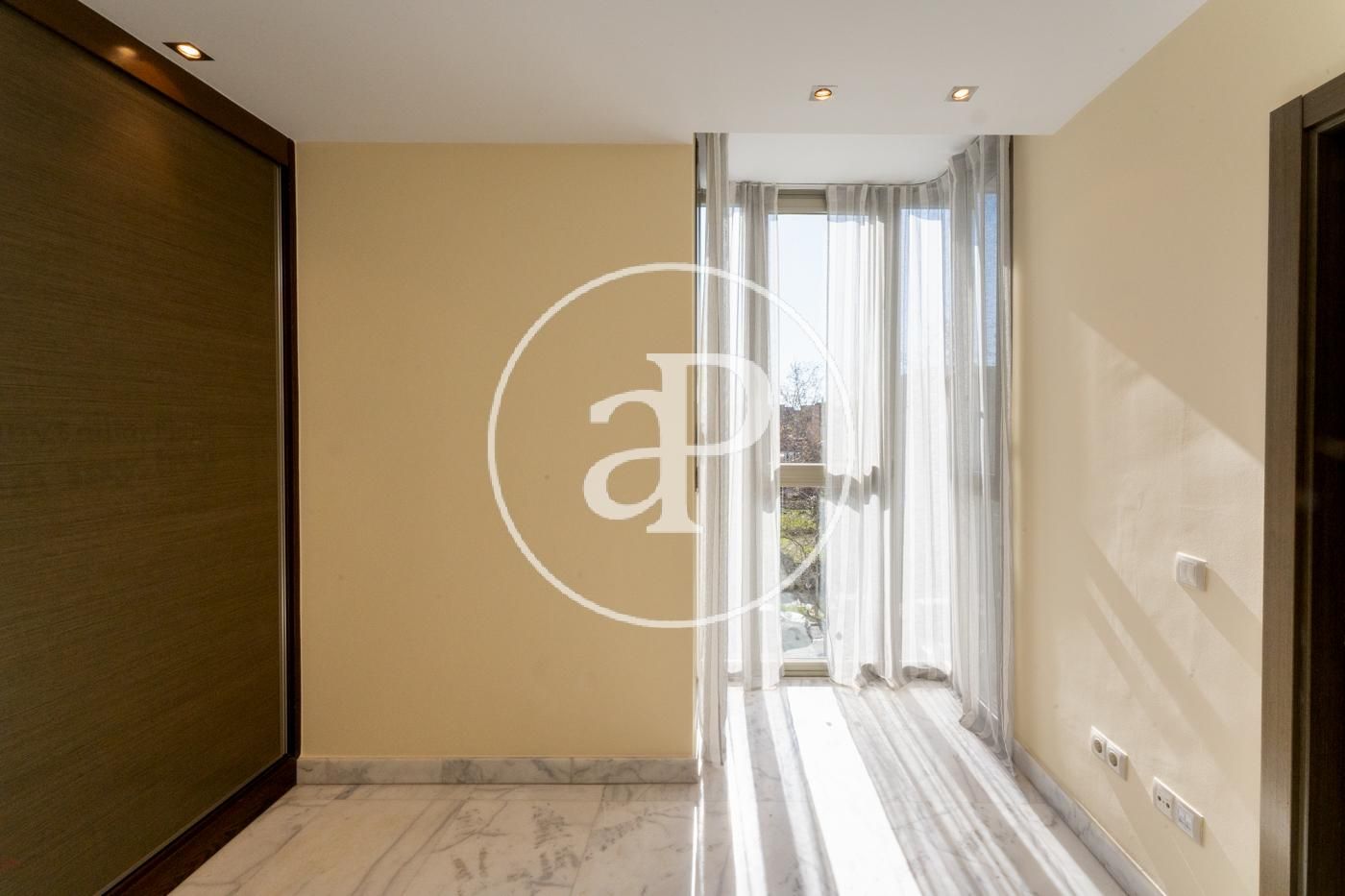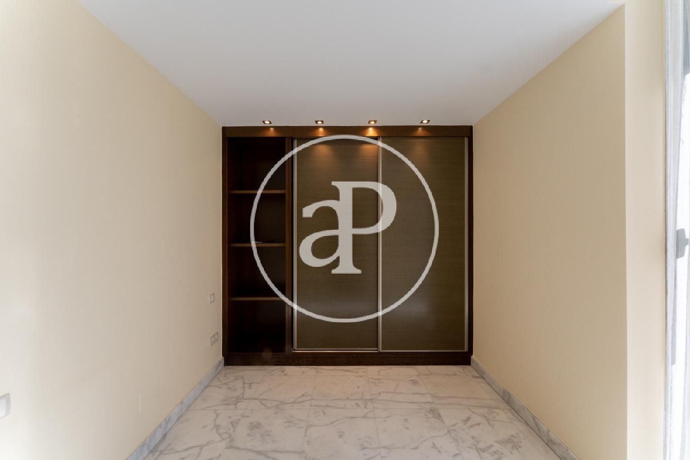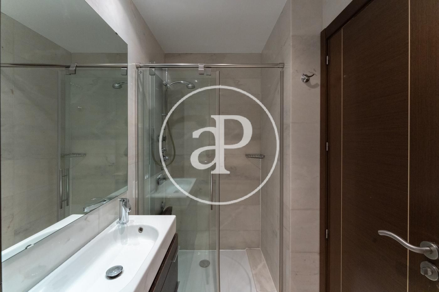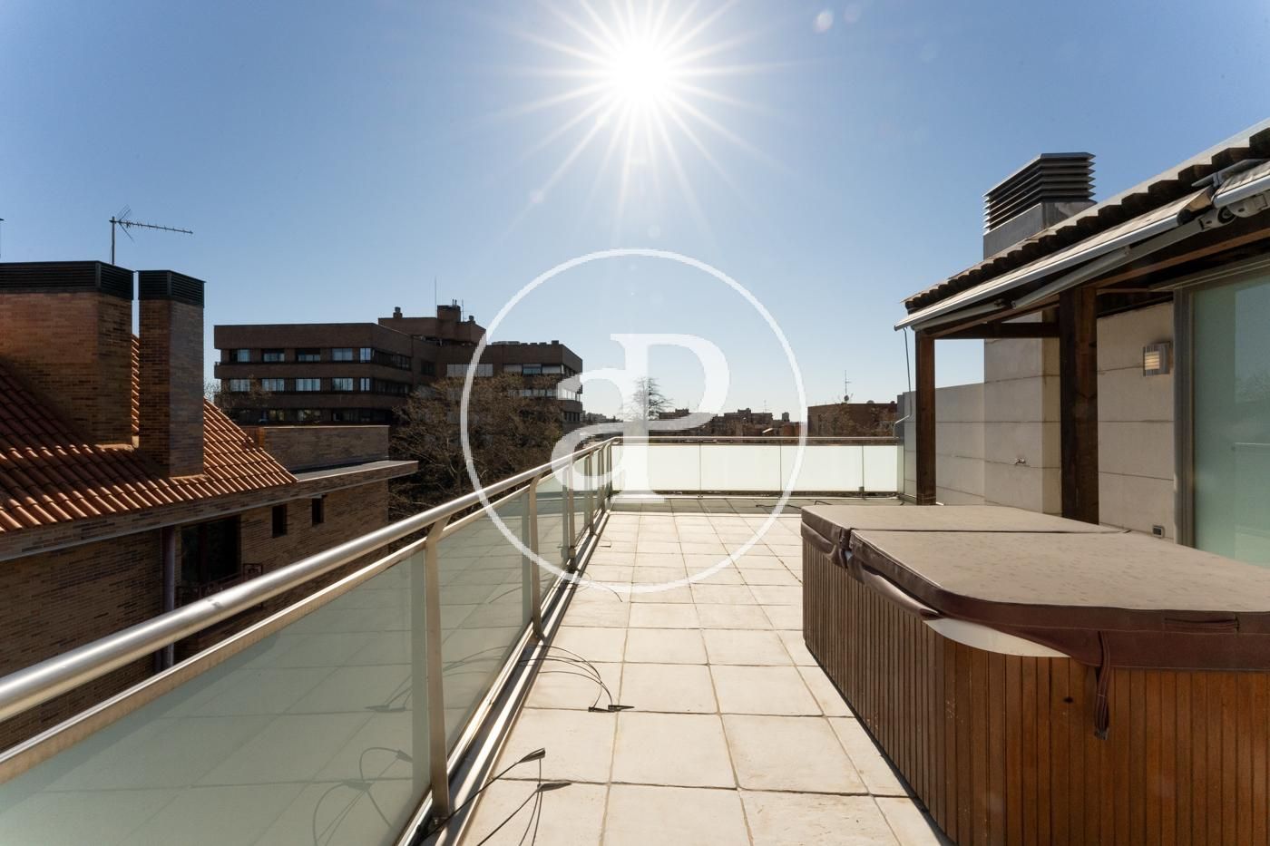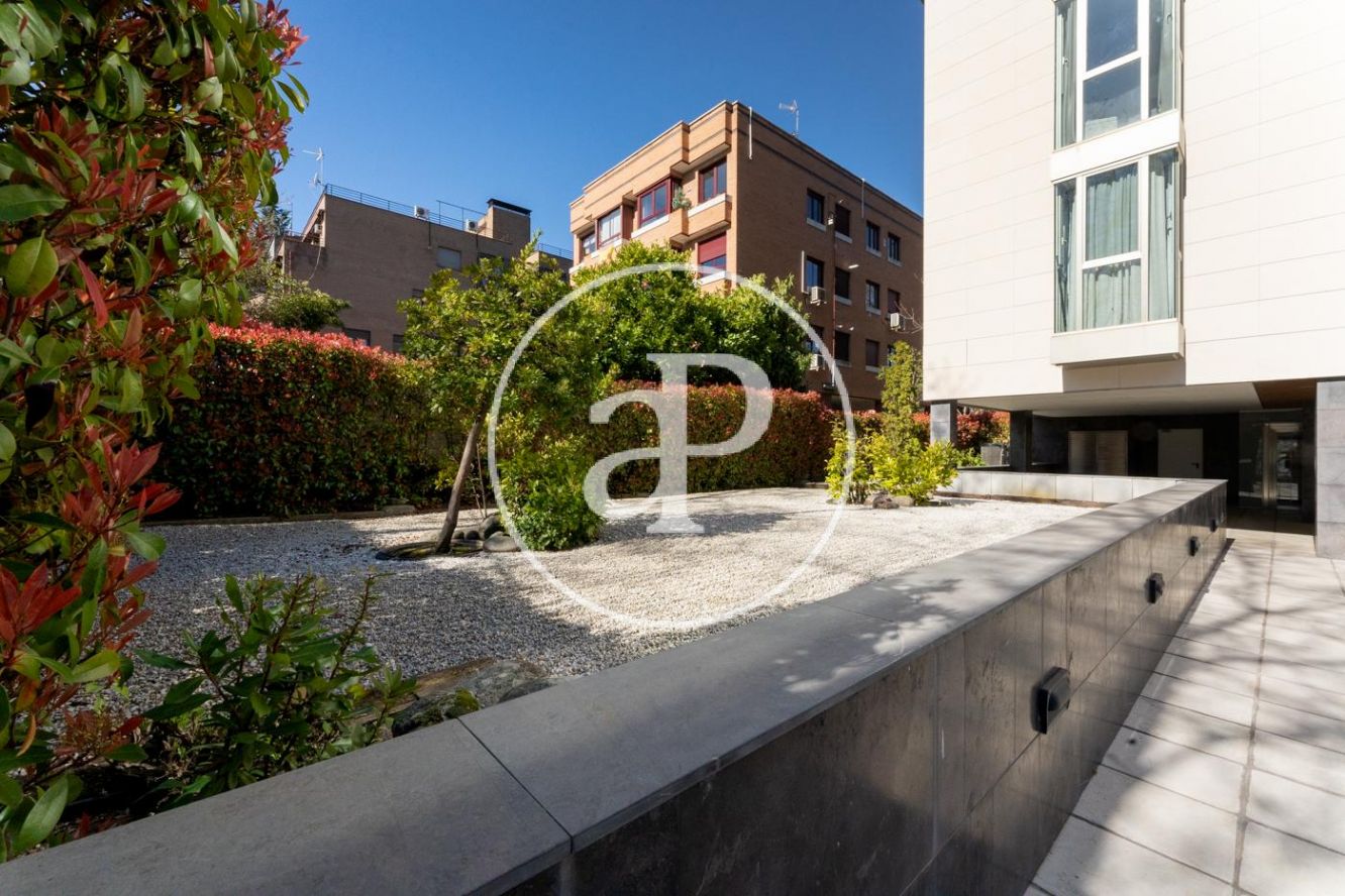 Ático reformado y soleado, totalmente exterior. Todos los metros de la vivienda son aprovechables. Consta de cocina moderna con electrodomésticos marca NEFF y encimera de Silestone, integrada en salón-comedor, zona de lavadora-tendedero, dormitorio principal con cuarto de baño en suite alicatado en mármol y ducha con hidromasaje y un dormitorio secundario para cama individual o despacho. Además consta de otro baño completo con ducha. En la parte superior dispone de una espectacular terraza privada de 40 metros con jacuzzi y solarium a la que se accede por el interior de la vivienda. Máximas calidades: Suelo de mármol en toda la vivienda, ventanas de aluminio anodizado, con rotura puente térmico y oscilo batientes con cristal climalit, calefacción individual por suelo radiante y Puerta principal acorazada. Incluye trastero y una plaza de garage